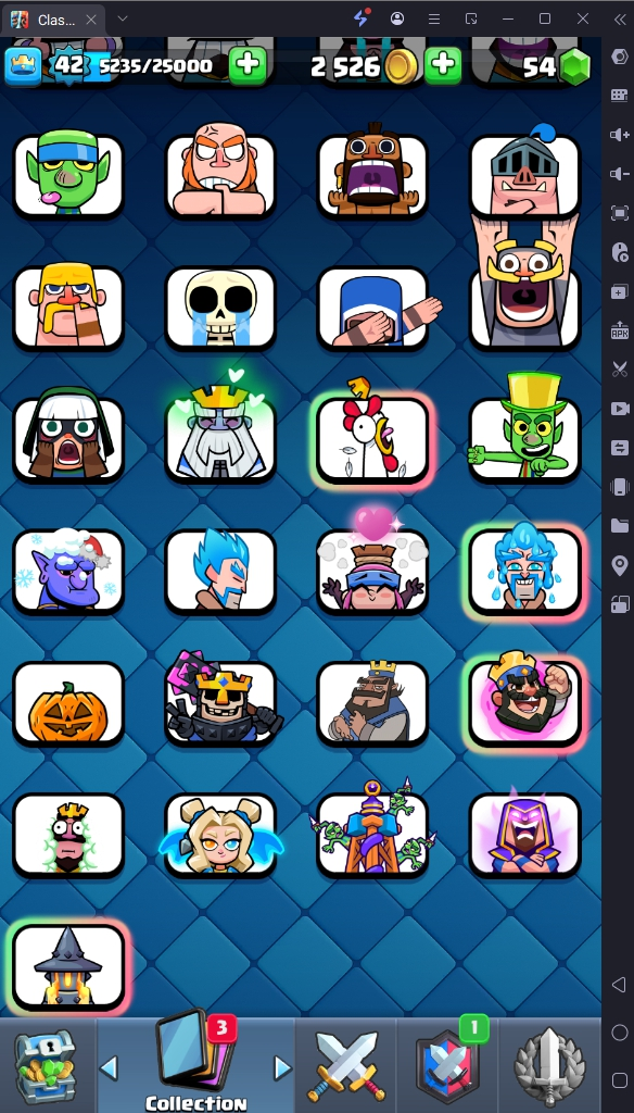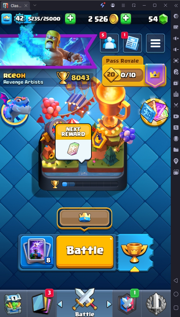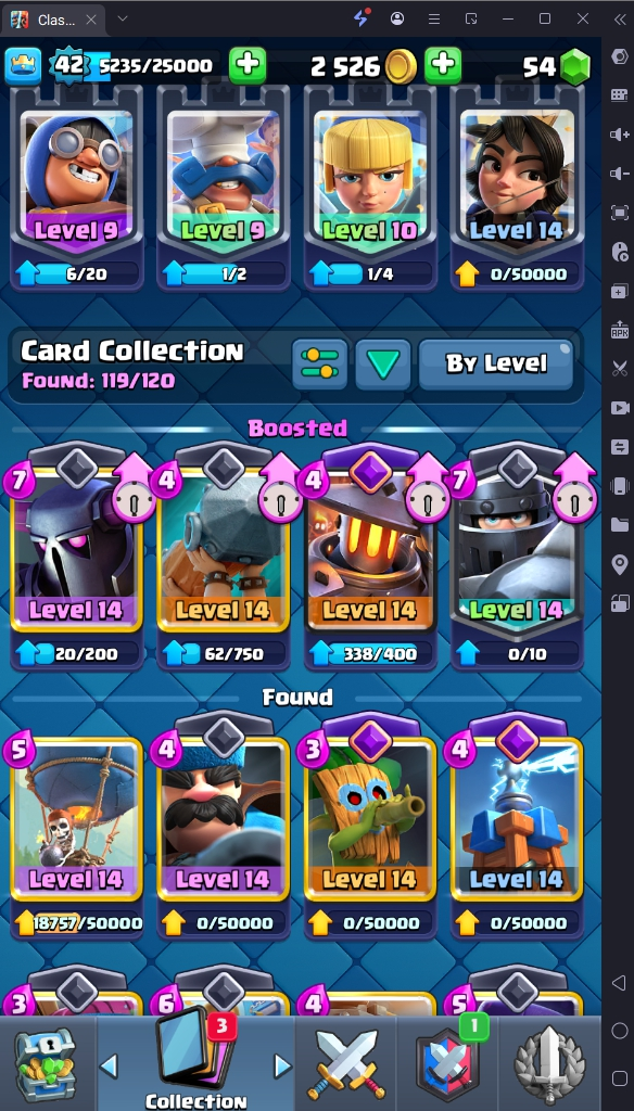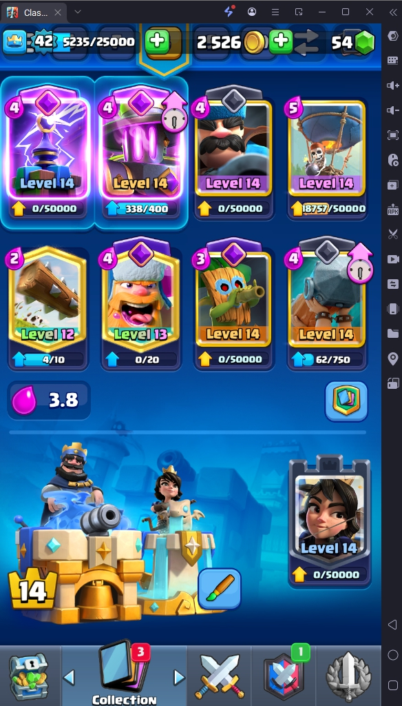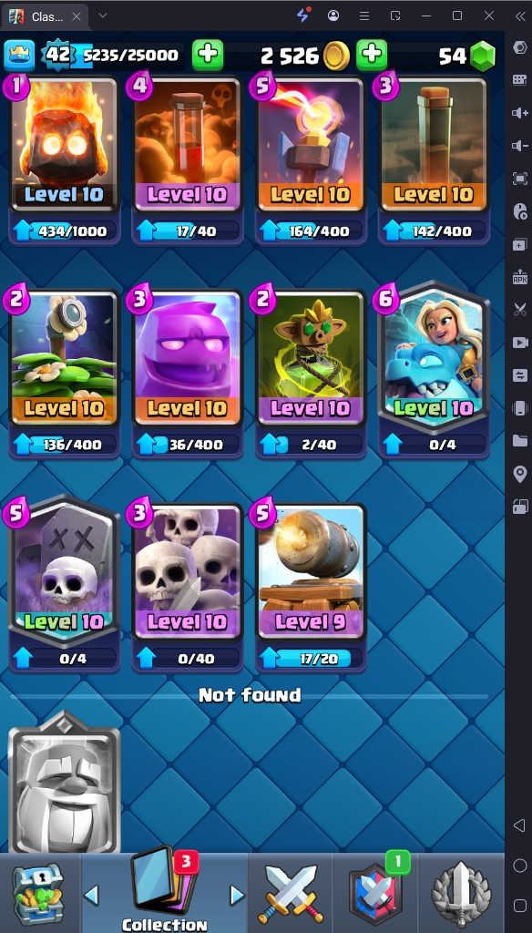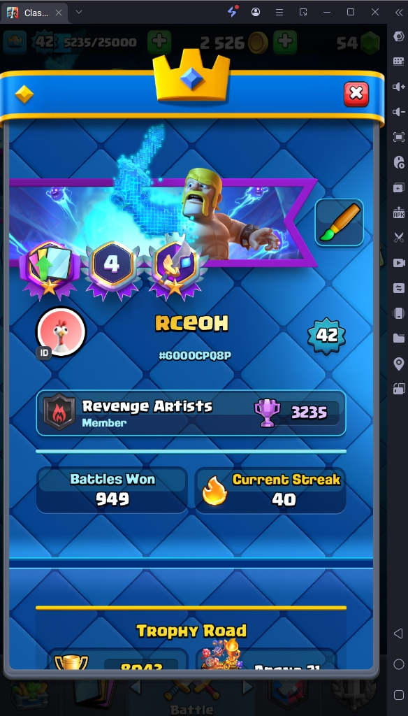 8043 TROPHY 🏆 42 LVL 💯 KT 14 👑 119 CARDS ♦️ 5 MAX CARDS 👑 0 ELITE CARDS 🔮 8 EVO 💯 EMOTE 42 🎭 #G000CPQ8P ⸱ TAG ACCOUNT ♥️