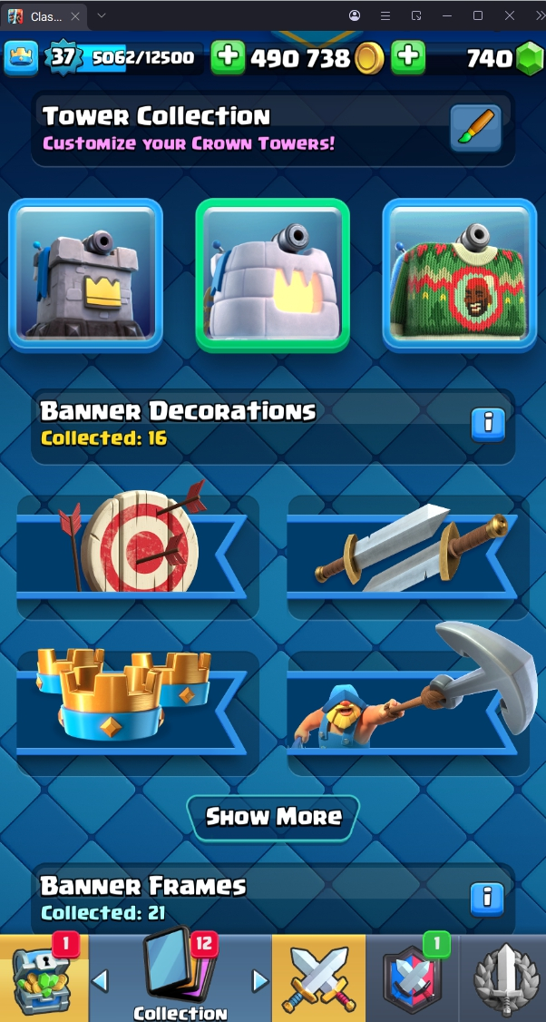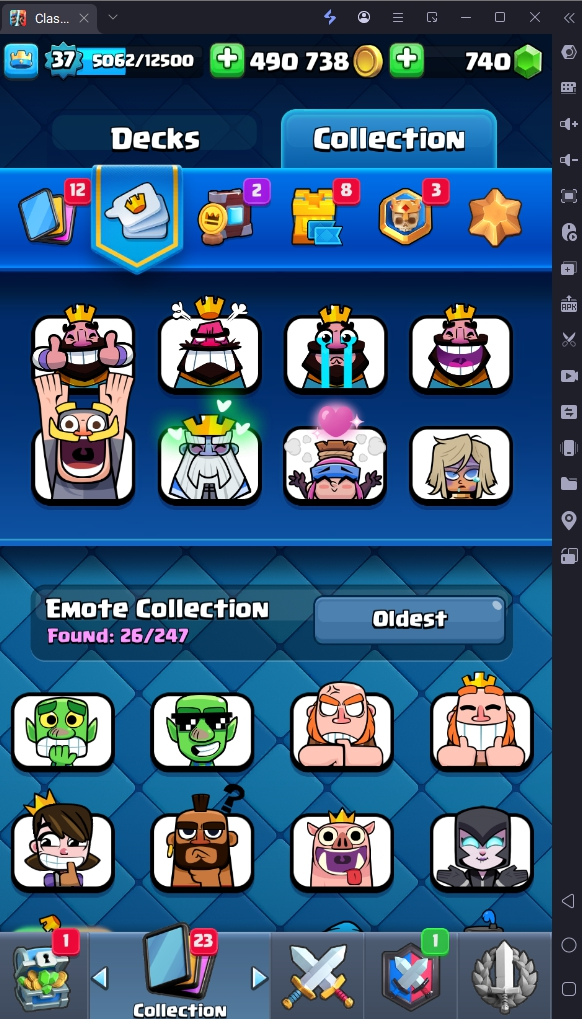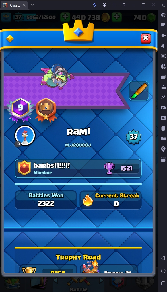 8154 TROPHY 🏆 37 LVL 💯 KT 12 👑 117 CARDS ♦️ 4 MAX CARDS 👑 0 ELITE CARDS 🔮 1 EVO 💯 EMOTE 26 🎭 #LJ2QUC8J ⸱ TAG ACCOUNT ♥️