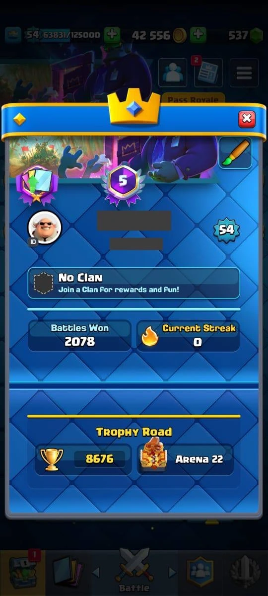 8676 Trophies | XP Lvl 54❗️| 15 MAXED CARDS❗️| 9 ELITE LEVEL CARD ❤️🔥| 8 EVOLUTIONS📈 | 52 EMOTES | 100% safe account | instant delivery