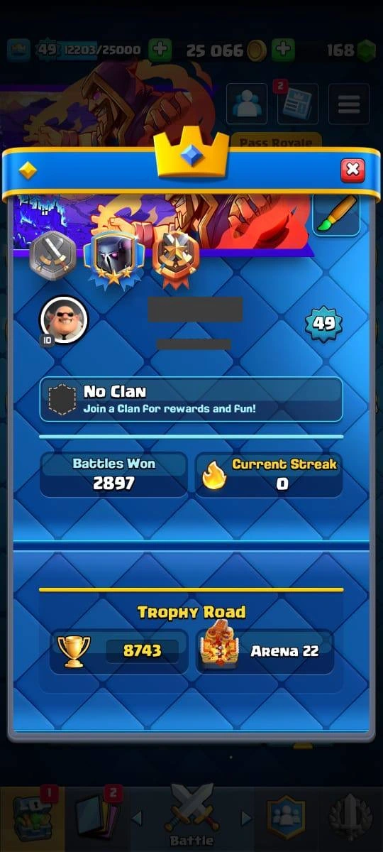 8743 Trophies | XP Lvl 49❗️| 11 MAXED CARDS❗️| 3 ELITE LEVEL CARD ❤️🔥| 6 EVOLUTIONS📈 | 46 EMOTES | 100% safe account | instant delivery