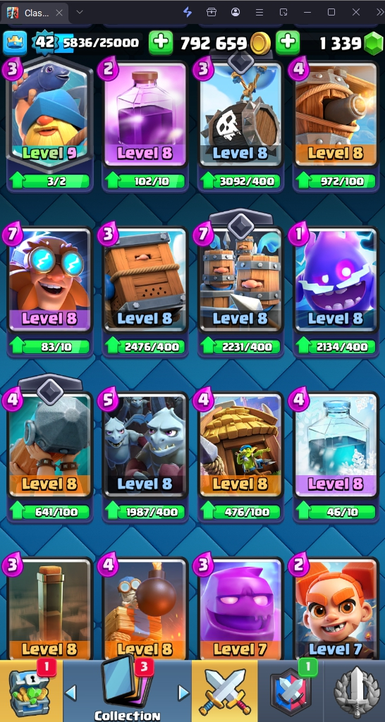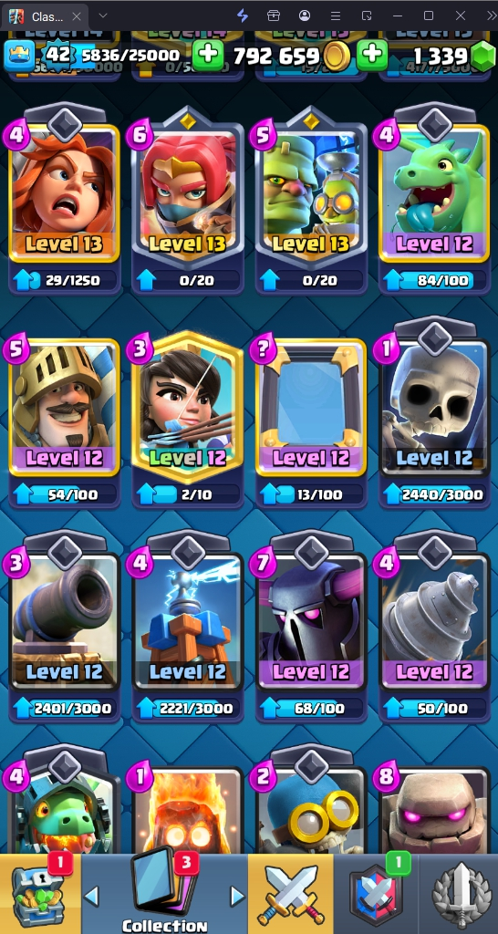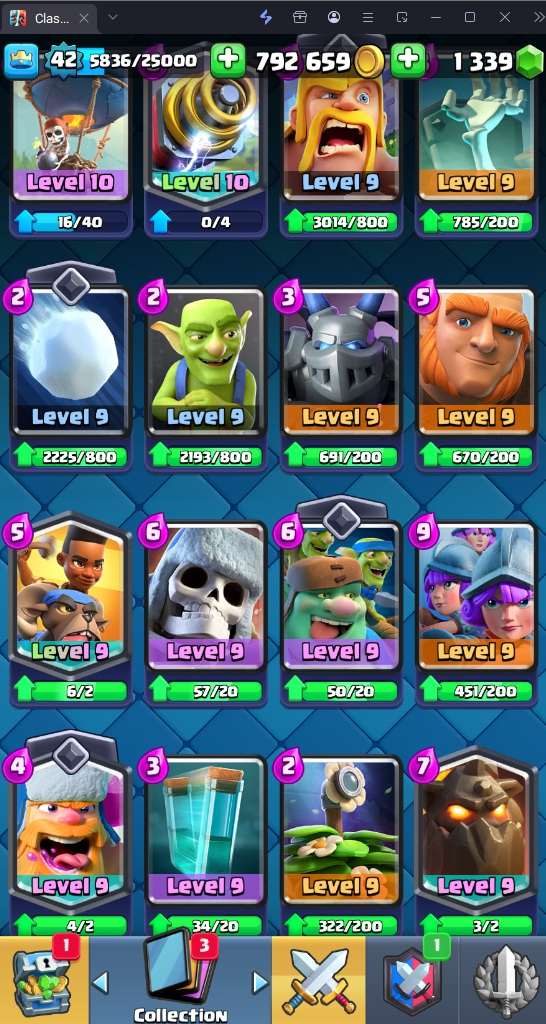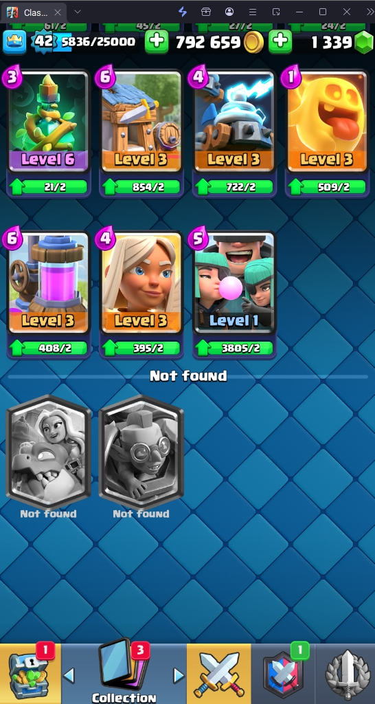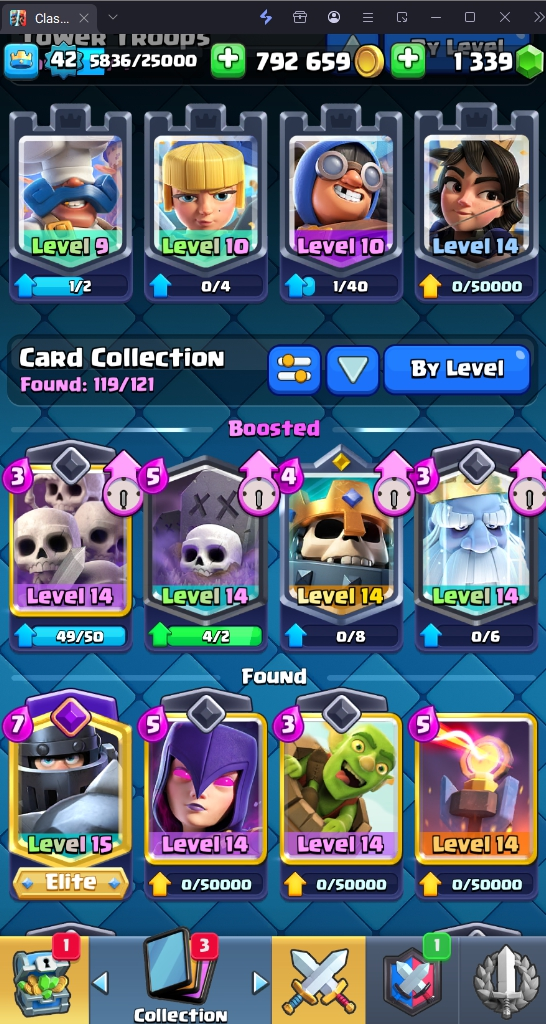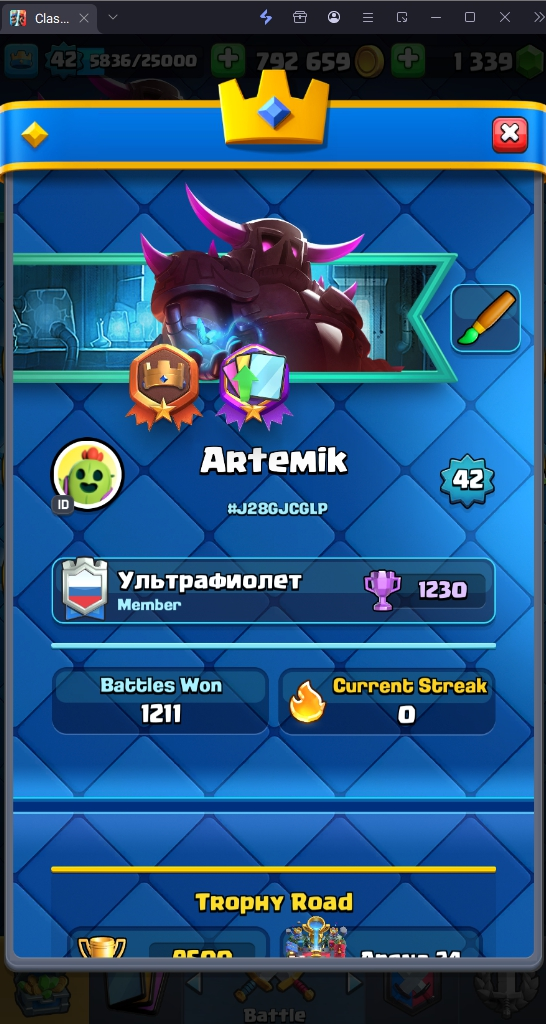 9500 TROPHY 🏆 42 LVL 💯 KT 14 👑 119 CARDS ♦️ 6 MAX CARDS 👑 1 ELITE CARDS 🔮 1 EVO 💯 EMOTE 33 🎭 #J28GJCGLP ⸱ TAG ACCOUNT ♥️