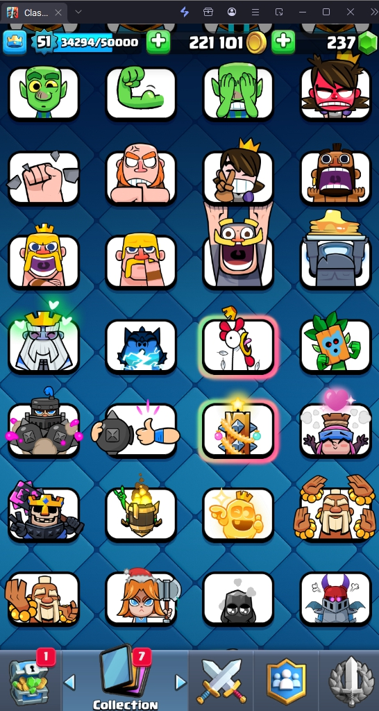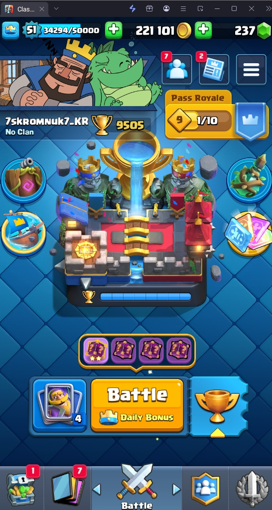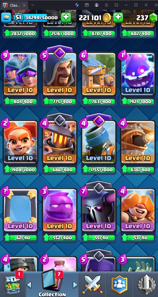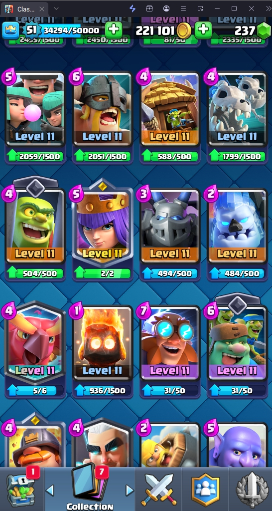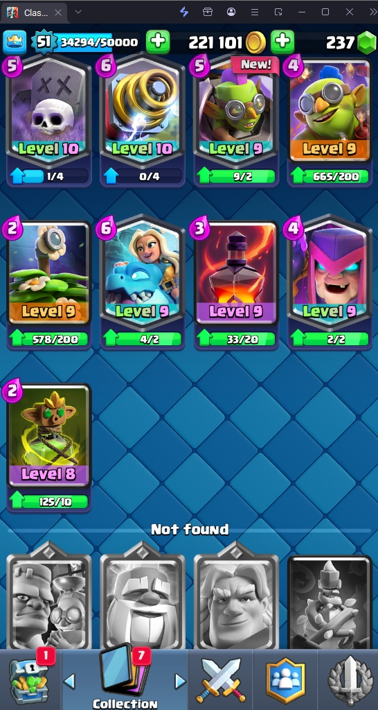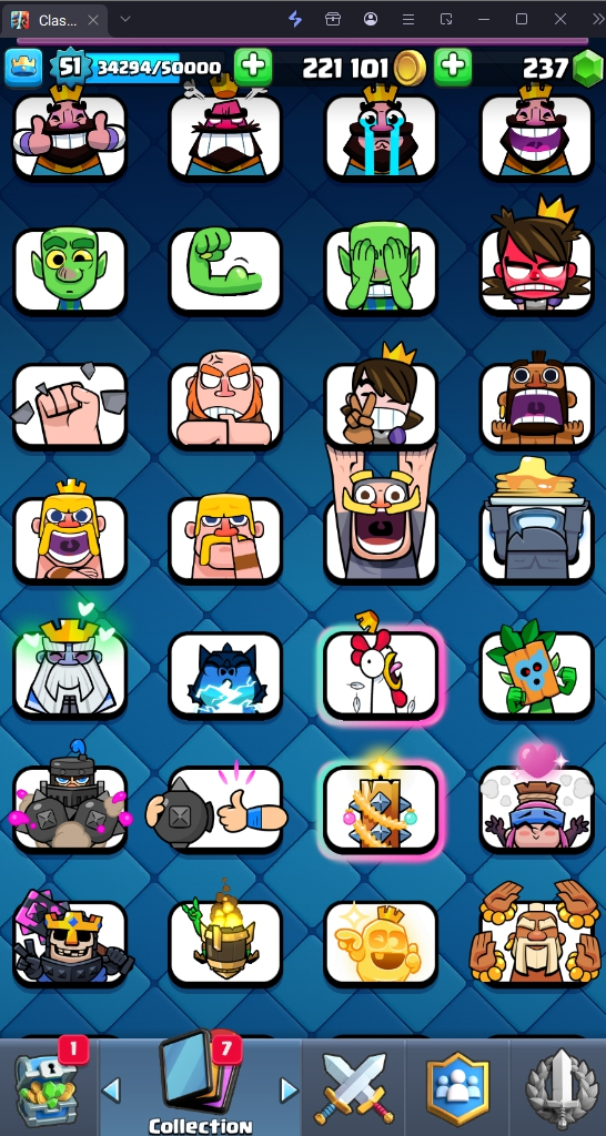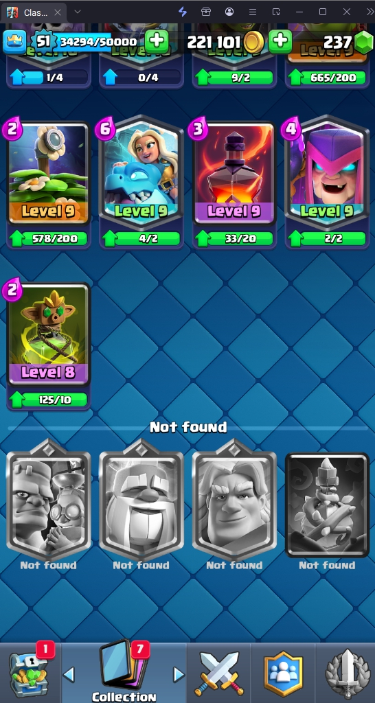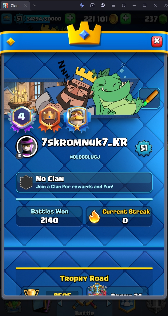 9505 TROPHY 🏆 51 LVL 💯 KT 14 👑 117 CARDS ♦️ 6 MAX CARDS 👑 5 ELITE CARDS 🔮 9 EVO 💯 EMOTE 62 🎭 #QLQCCLUGJ ⸱ TAG ACCOUNT ♥️