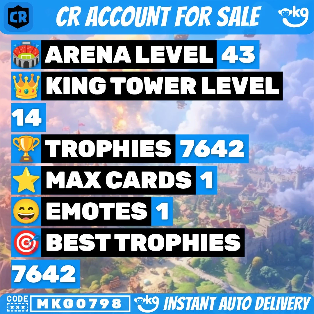 🛡️ Clash Royale 🏆 7642 Trophies 🎯 Level 43 👑 King Tower 14 📜 119 Cards 🎭 Emotes: N/A 🚀 Instant Delivery 🔐 Full Access !MKG0798