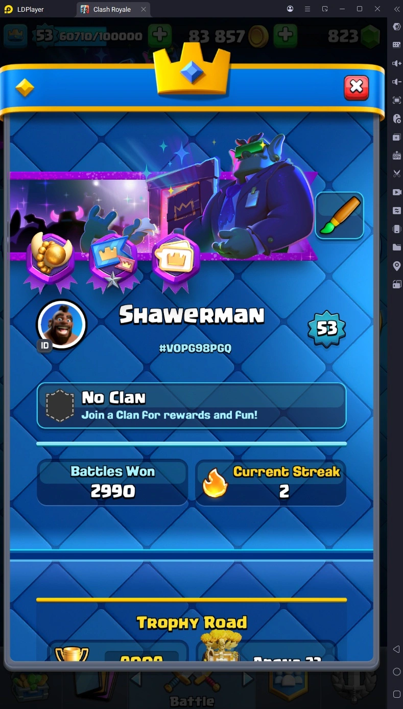 🎯 Clash Royale 🏆 9009 Trophies 💥 Level 53 👑 King Tower 14 🃏 119 Cards 🎭 Emotes: 35 🚀 Instant Delivery 🔐 Full Access !MKG0766