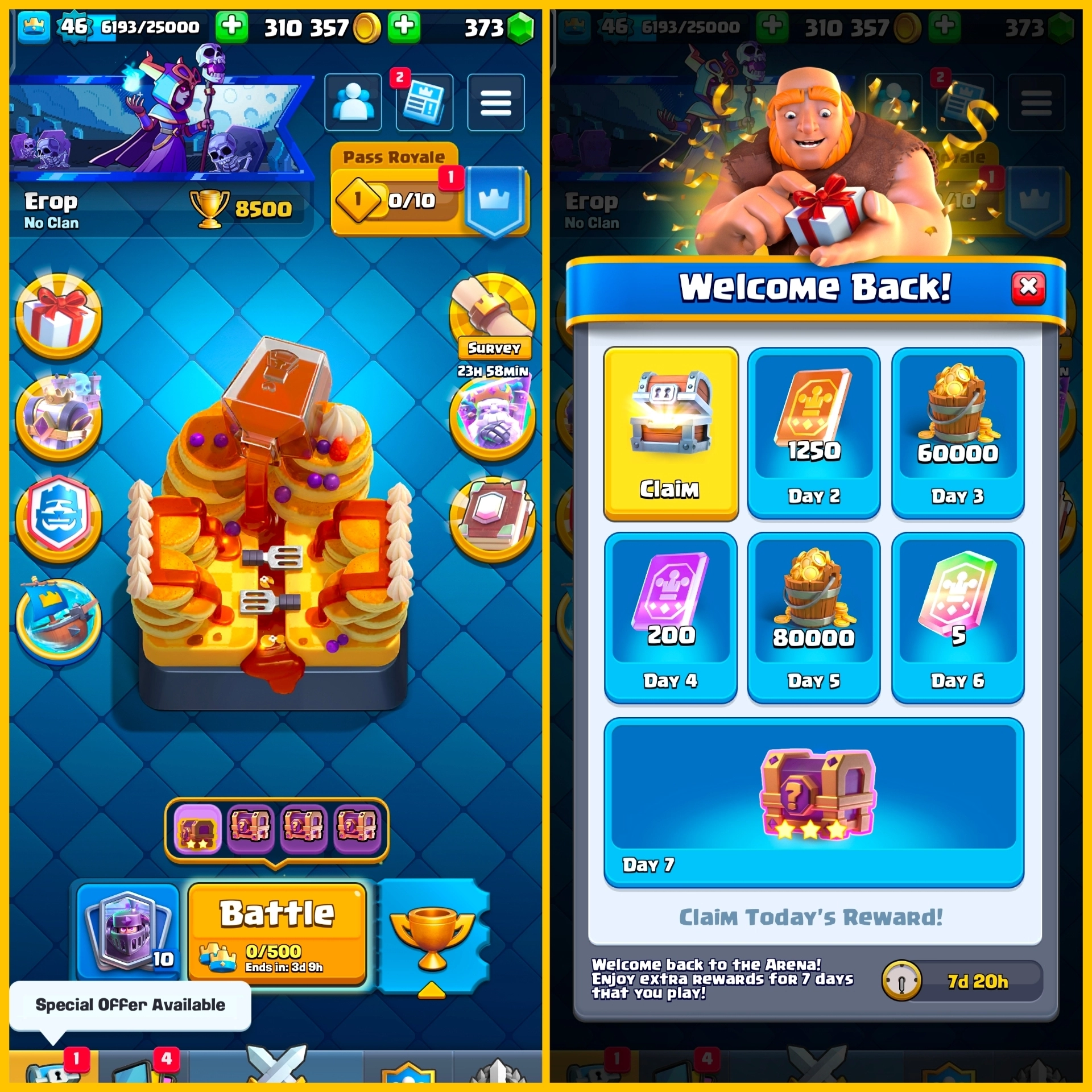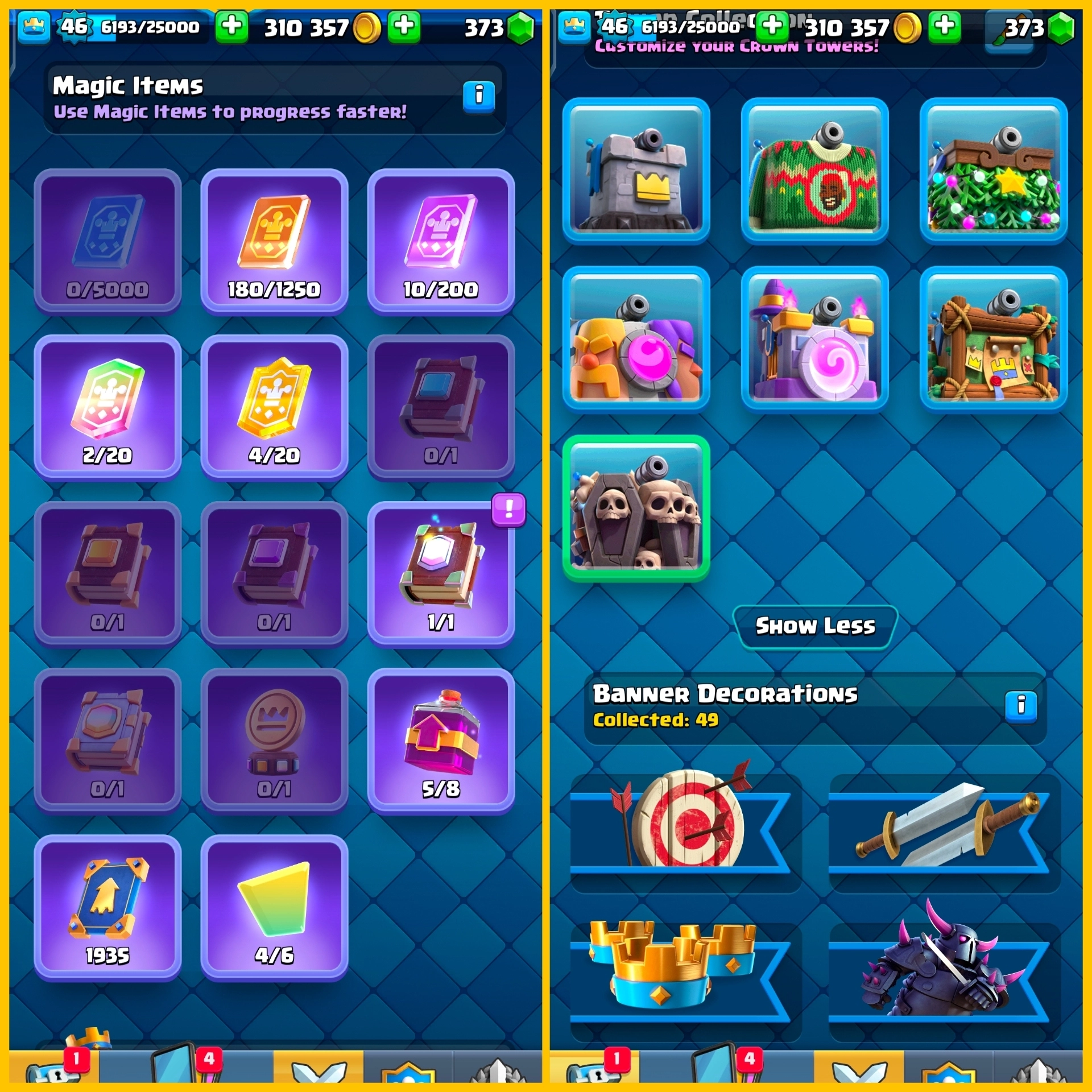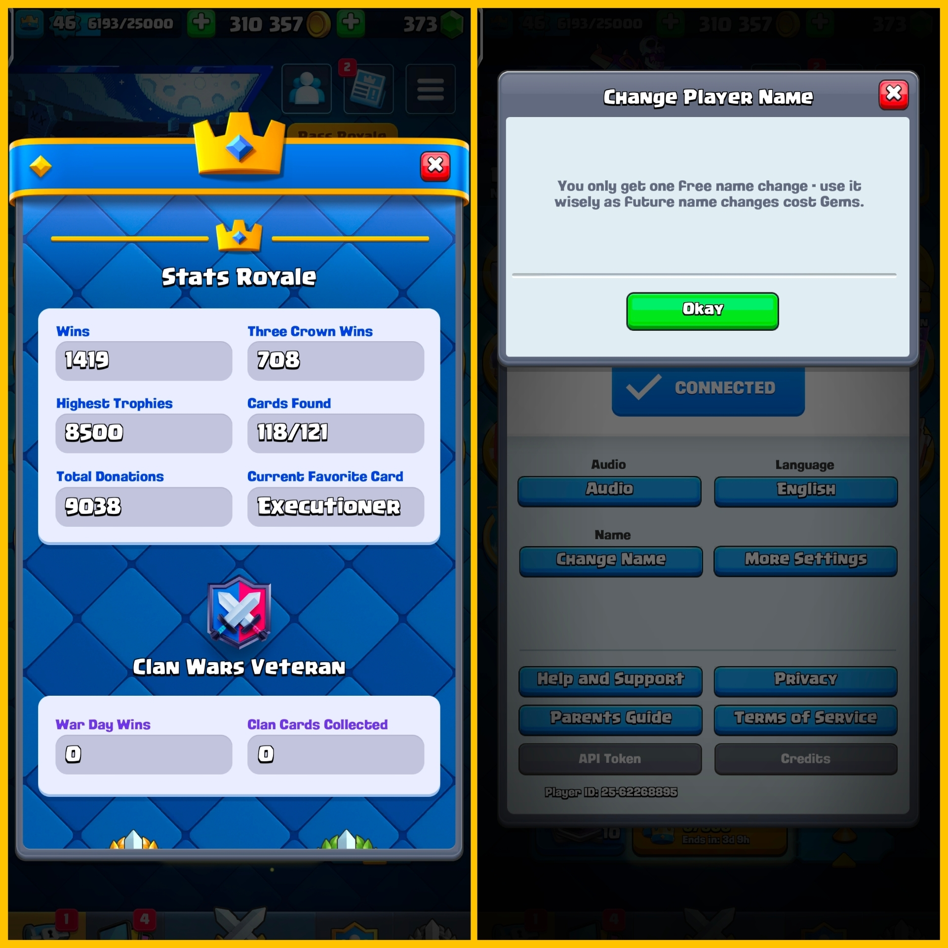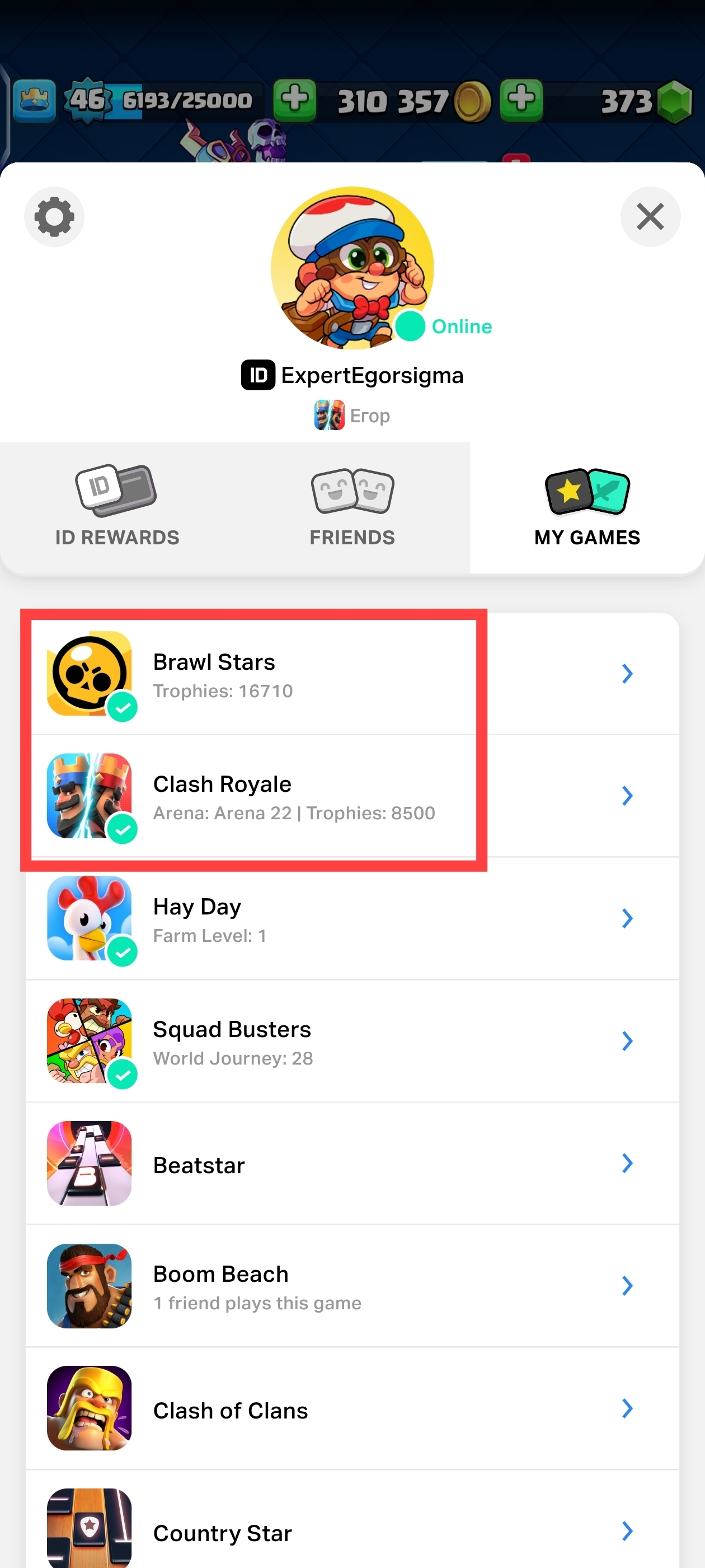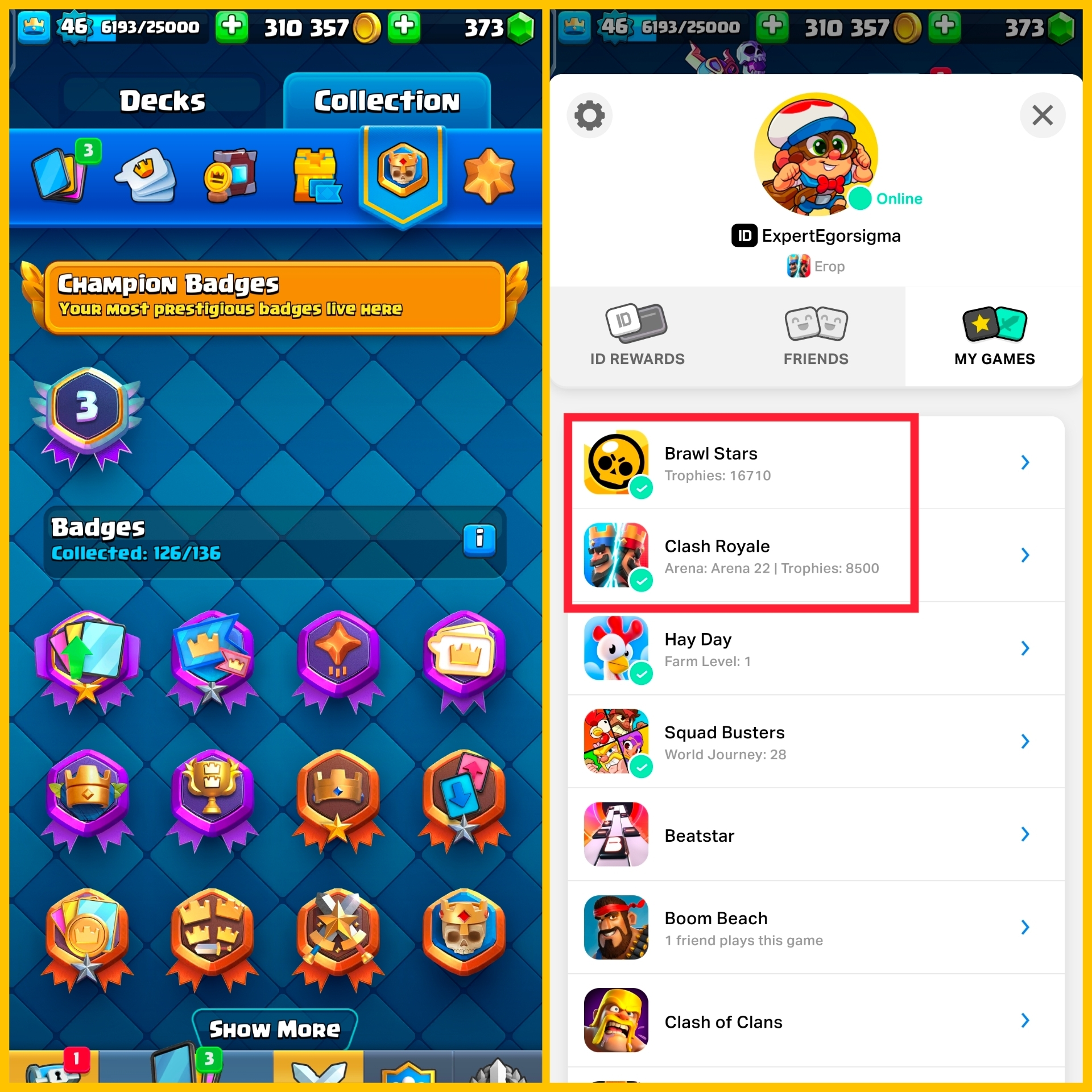 CR + BS (16K TROPHY) Level-46 w/ 118 ALL Cards | Unclaimed WLC Bonus, 310k GOLD | 8500 TROPHIES + FREE NC | 1 Level 14, 2 Level 15 | CH456