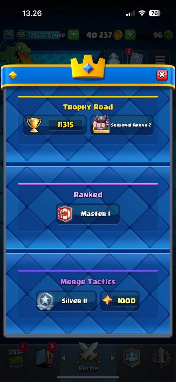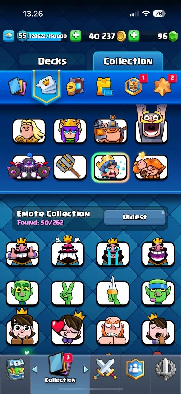 CR XP 55🔥KT15🔥7 Elite🔥53 Max Card🔥10 Evo🔥50 Emotes🔥7 Skins Tower🔥Acces Full🔥Cheapest and Safe Account