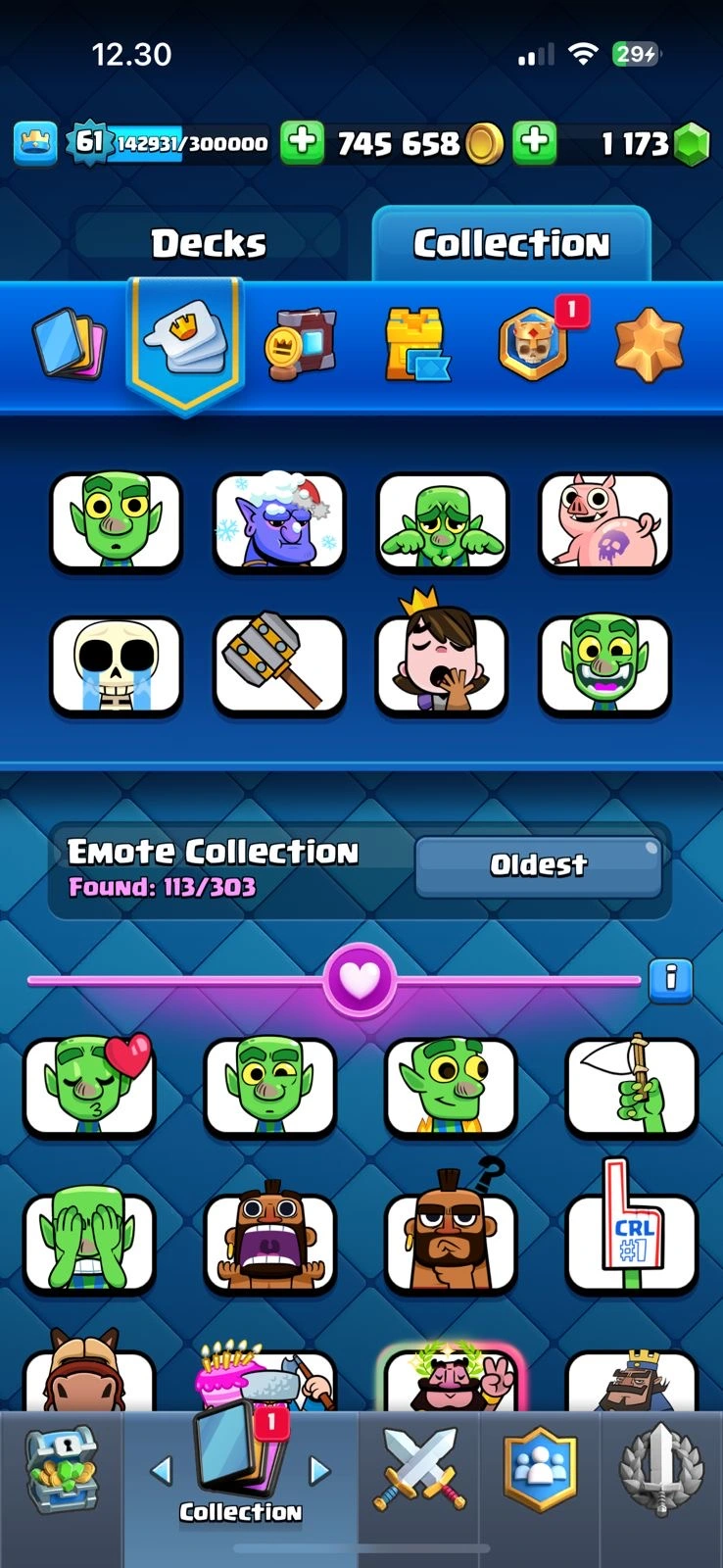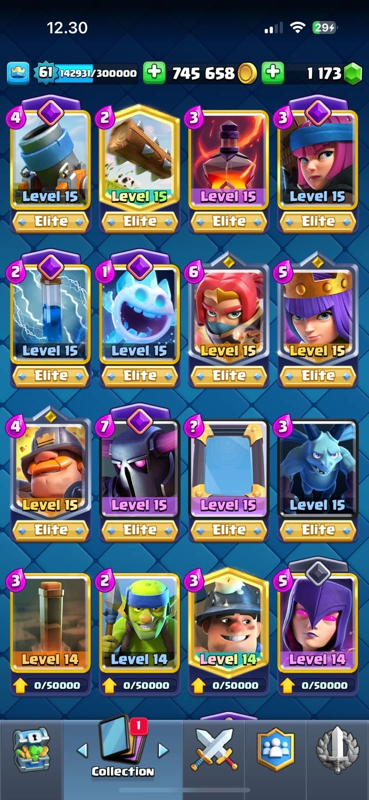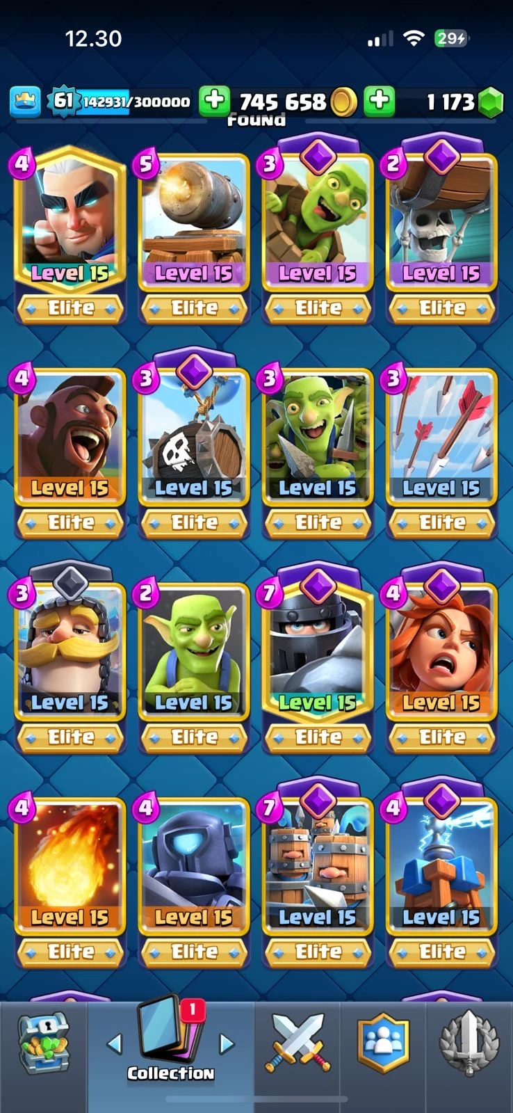 CR XP 61🔥KT 15🔥28 Elite🔥78 Max Card🔥21 Evo🔥12k Trophies🔥113 Emotes🔥10 Skins Tower🔥acces Full🔥Cheapest and Safe Account