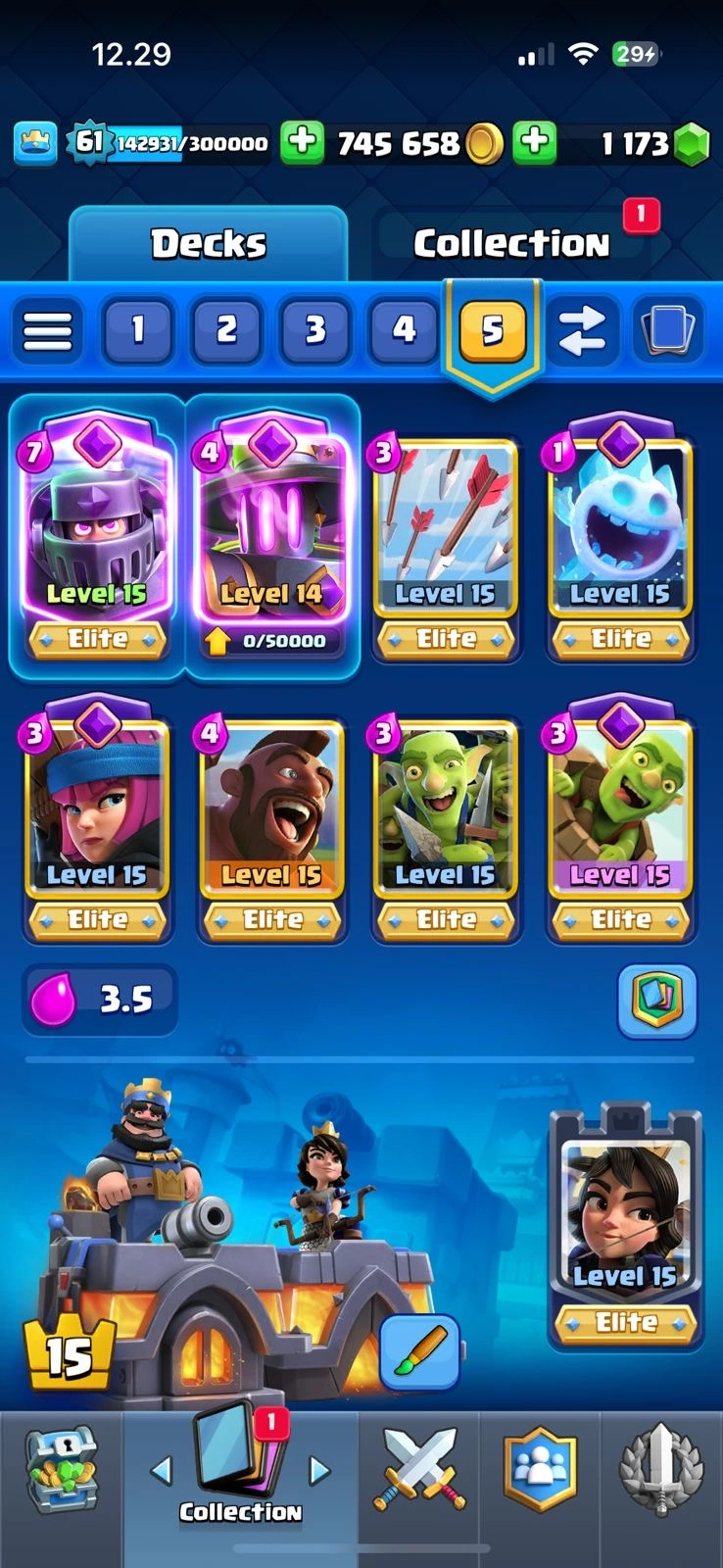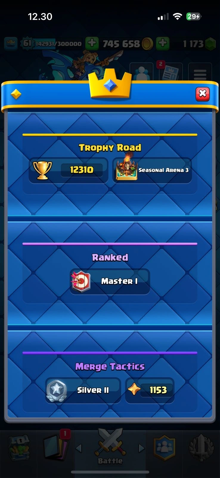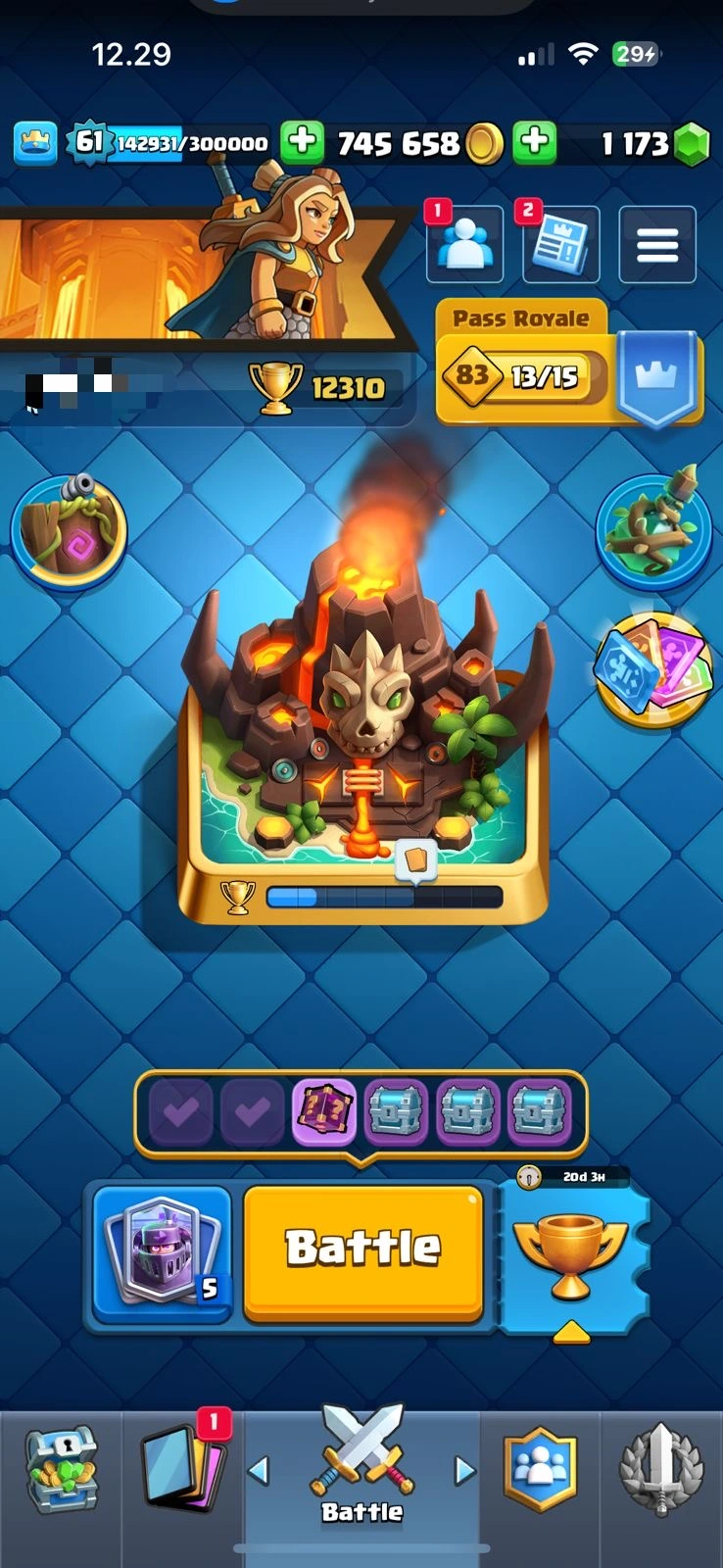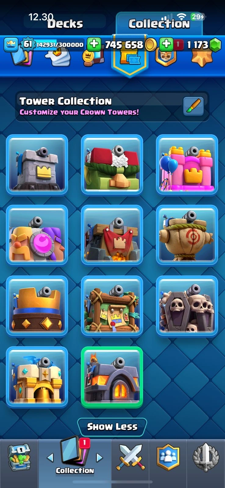 CR XP 61🔥KT 15🔥28 Elite🔥78 Max Card🔥21 Evo🔥12k Trophies🔥113 Emotes🔥10 Skins Tower🔥acces Full🔥Cheapest and Safe Account