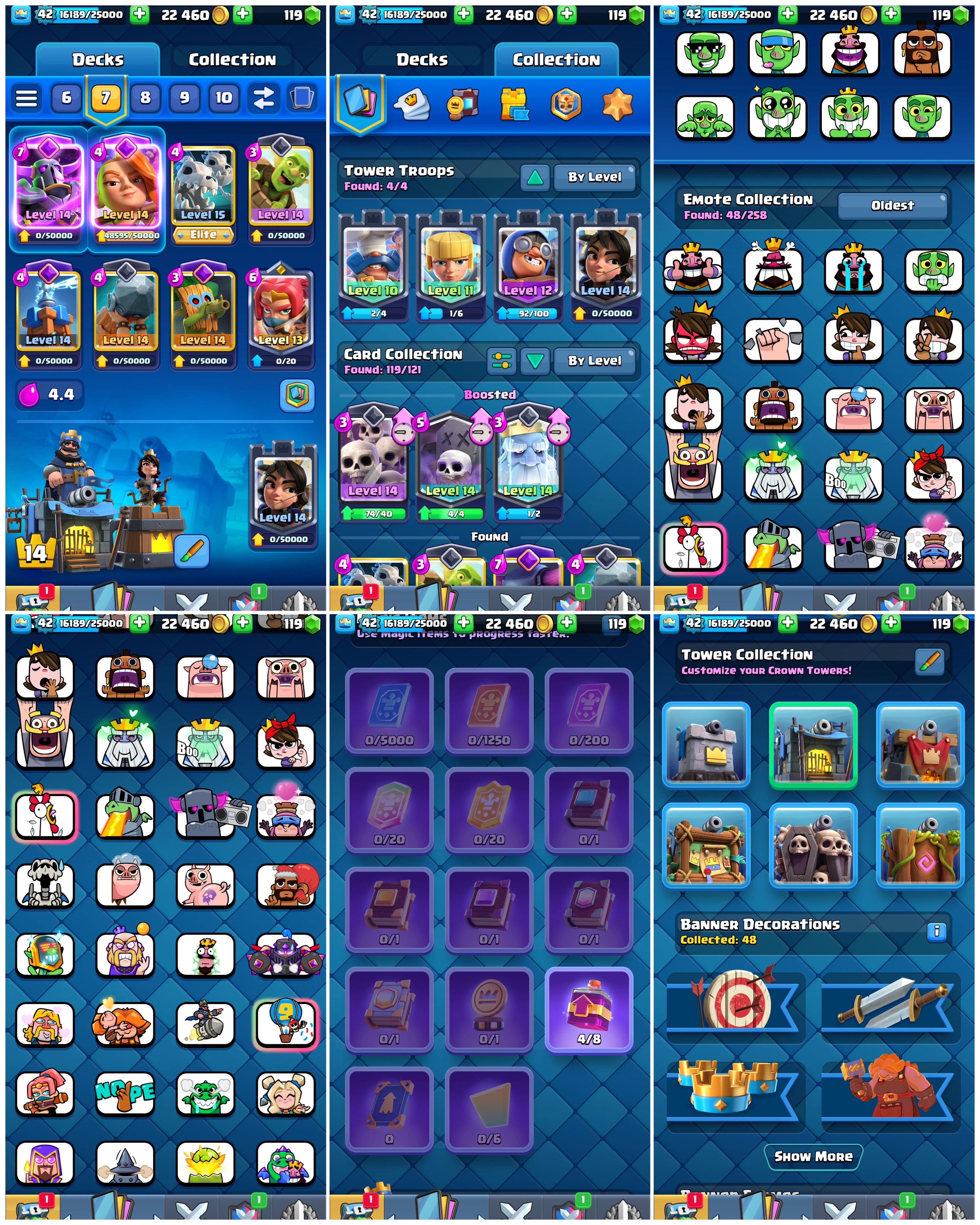 🚀 Fast Sale Deal – Act Now 🌟 8785 Trophies 🏆| Level 42 🔥 | King Tower 14 👑 | Arena 22 ⚔️ | Emote 48 😎 Cards 119 🔥 Instant Delivery ✅ Lifetime Access ✅ | #P699