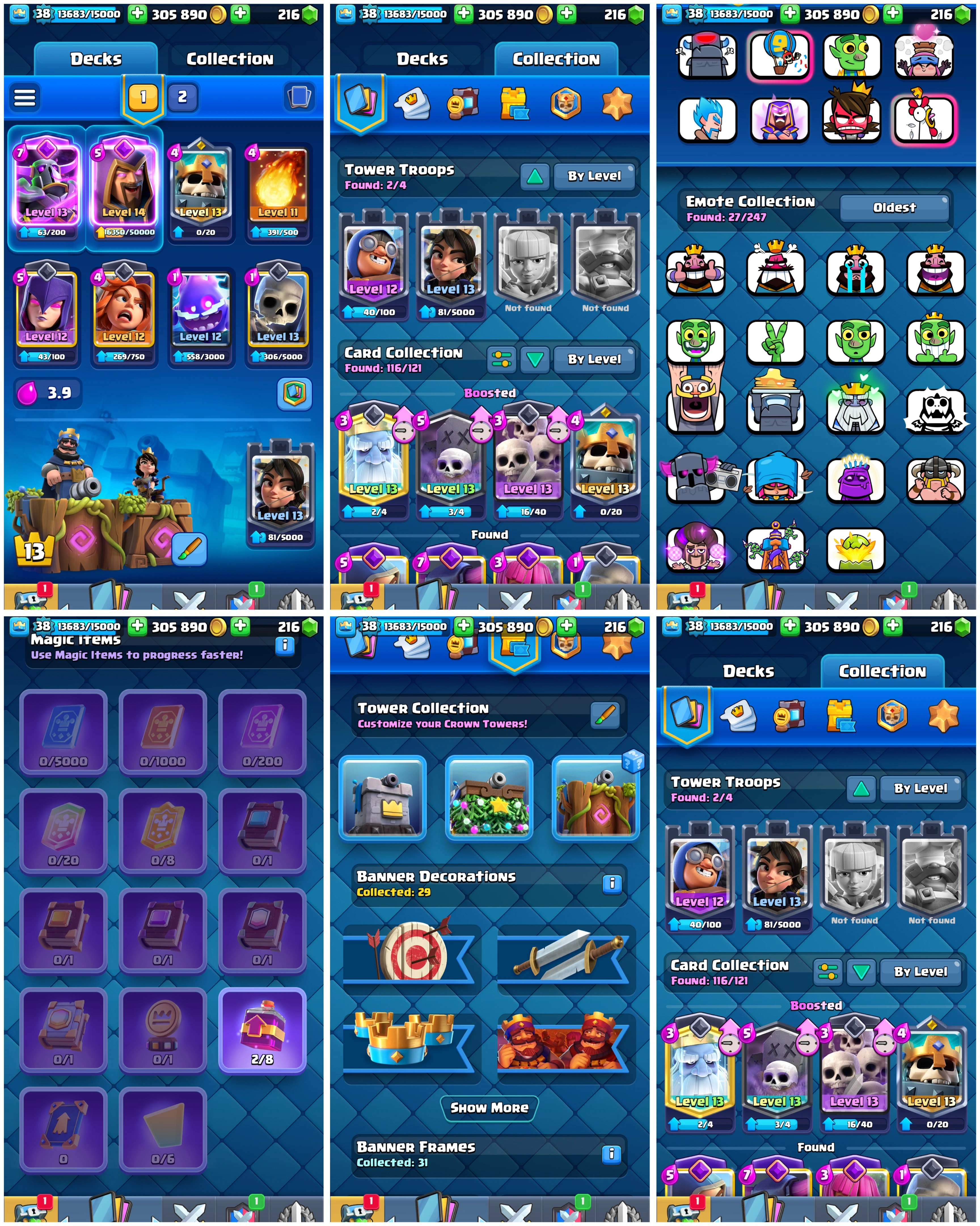 💥 Instant Buy = Instant Delivery 🌟 7338 Trophies 🏆| Level 38 🔥 | King Tower 13 👑 | Arena 19 ⚔️ | Emote 27 😎 Cards 116 ✅ Lifetime Access ✅ | #P711