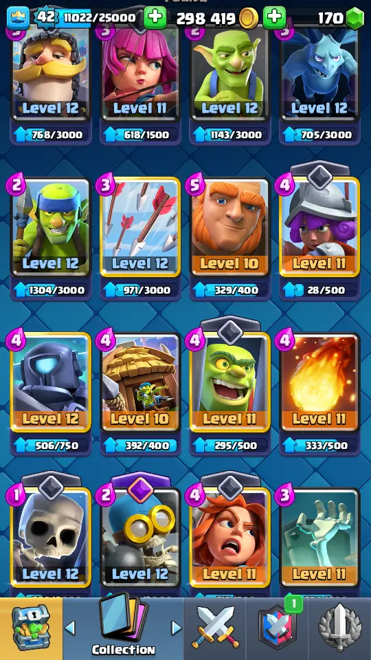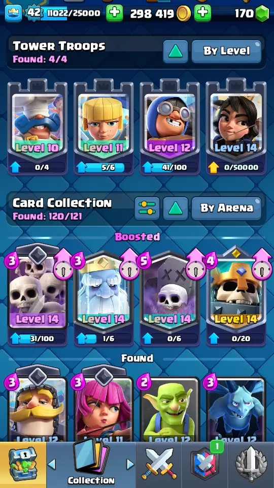 KT 14 🔹 LEVEL 42 🔹 ARENA 20 🔹 7,700 TROPHIES 🔹 120 CARDS 🔹 21 LEGENDARY 🔹 5 EVO 🔹 298K GOLD 🔹 170 GEMS 🔹 ANDROID & iOS 🔹 ZFR36