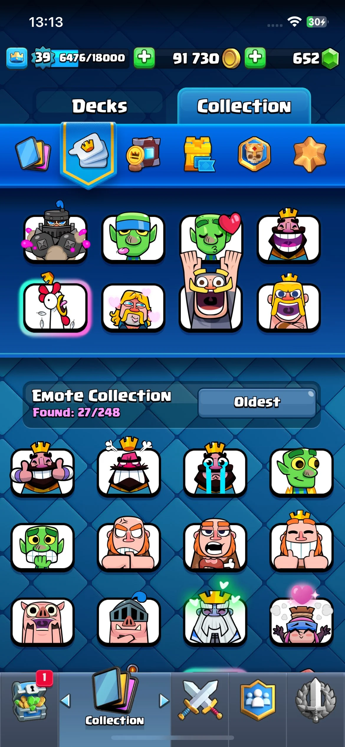 🚀 KT13 | 🏟️ ARENA 20 | 🏆 7530 TROPHIES | 🌟 LV.39 | 🃏 113 CARDS | ⚡ 9 EVO CARDS | 😃 28 EMOTES | 🚀 INSTANT DELIVERY