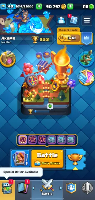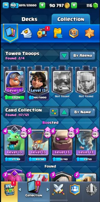 🚀 KT13 | 🌟 LV.40 | 🏟️ ARENA 21 | 🏆 8,001 TROPHIES | ⚡ 9 EVO | 🃏 117 CARDS | 💎 116 GEMS | 😃 25 EMOTES | 🚀 AUTO DELIVERY