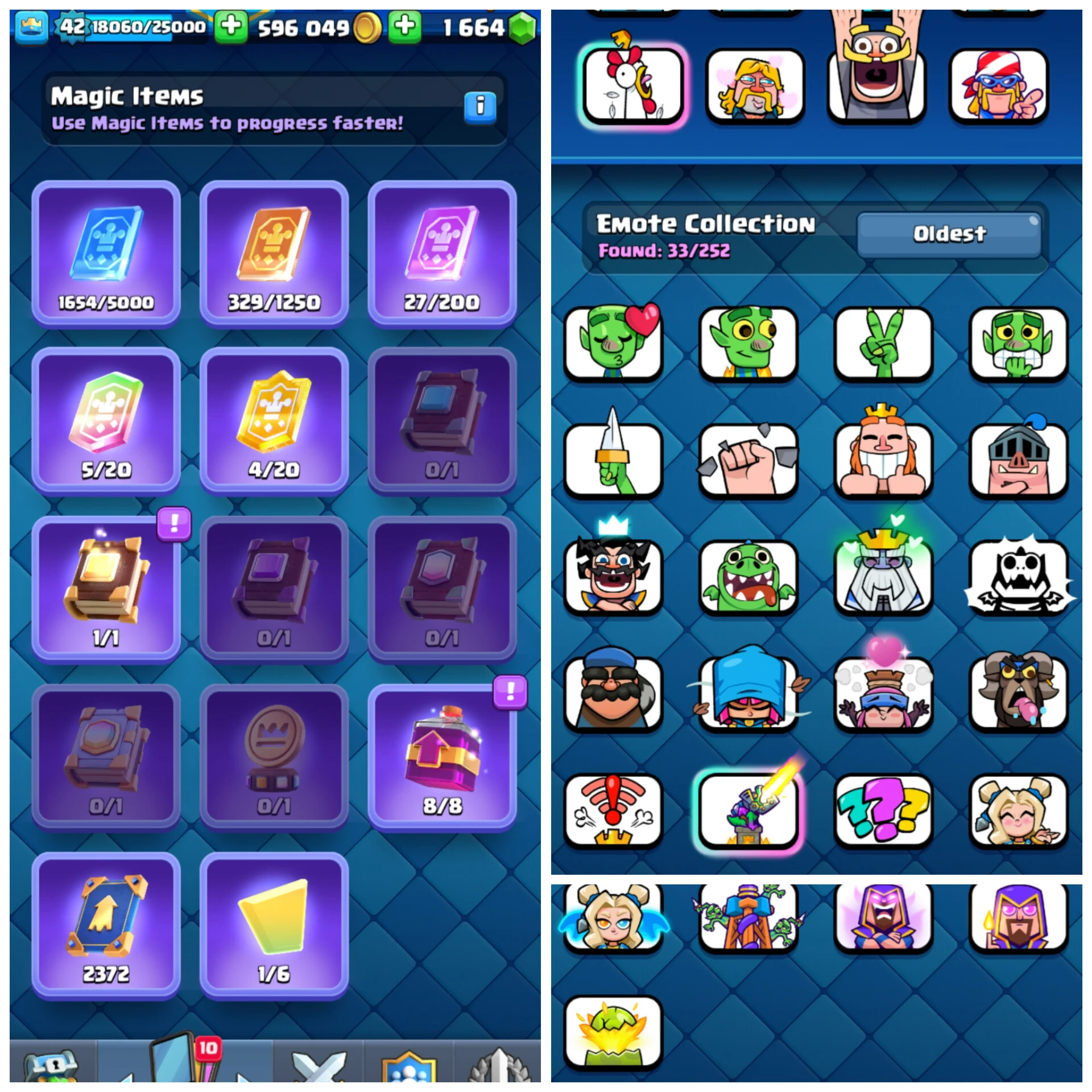 KT14(42)+2 Elite & 5 max+ 10 EVOLUTION + 4 skins tower + 1664 Gems + 33 Emotes + <Safe & cheap> ANDROID/IOS