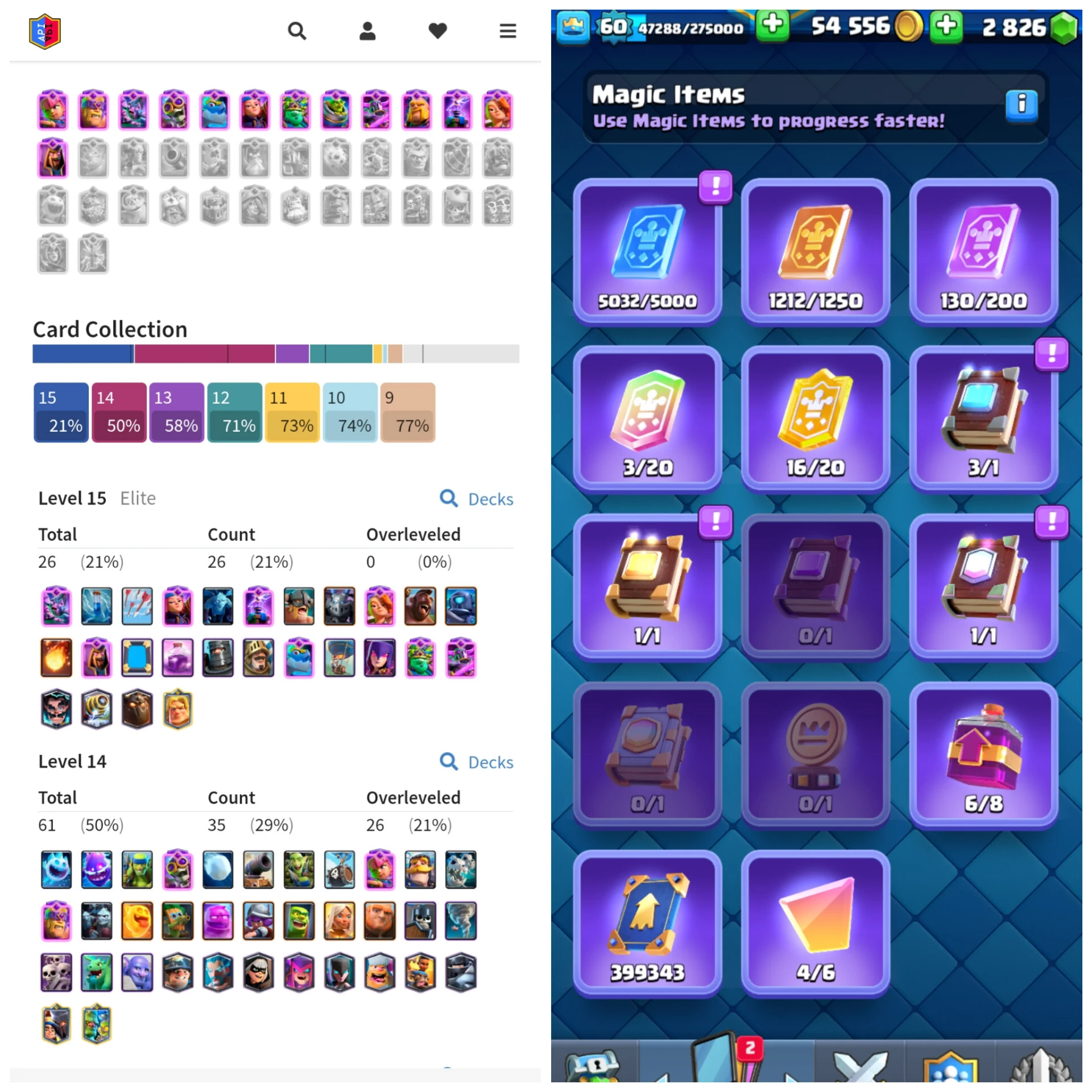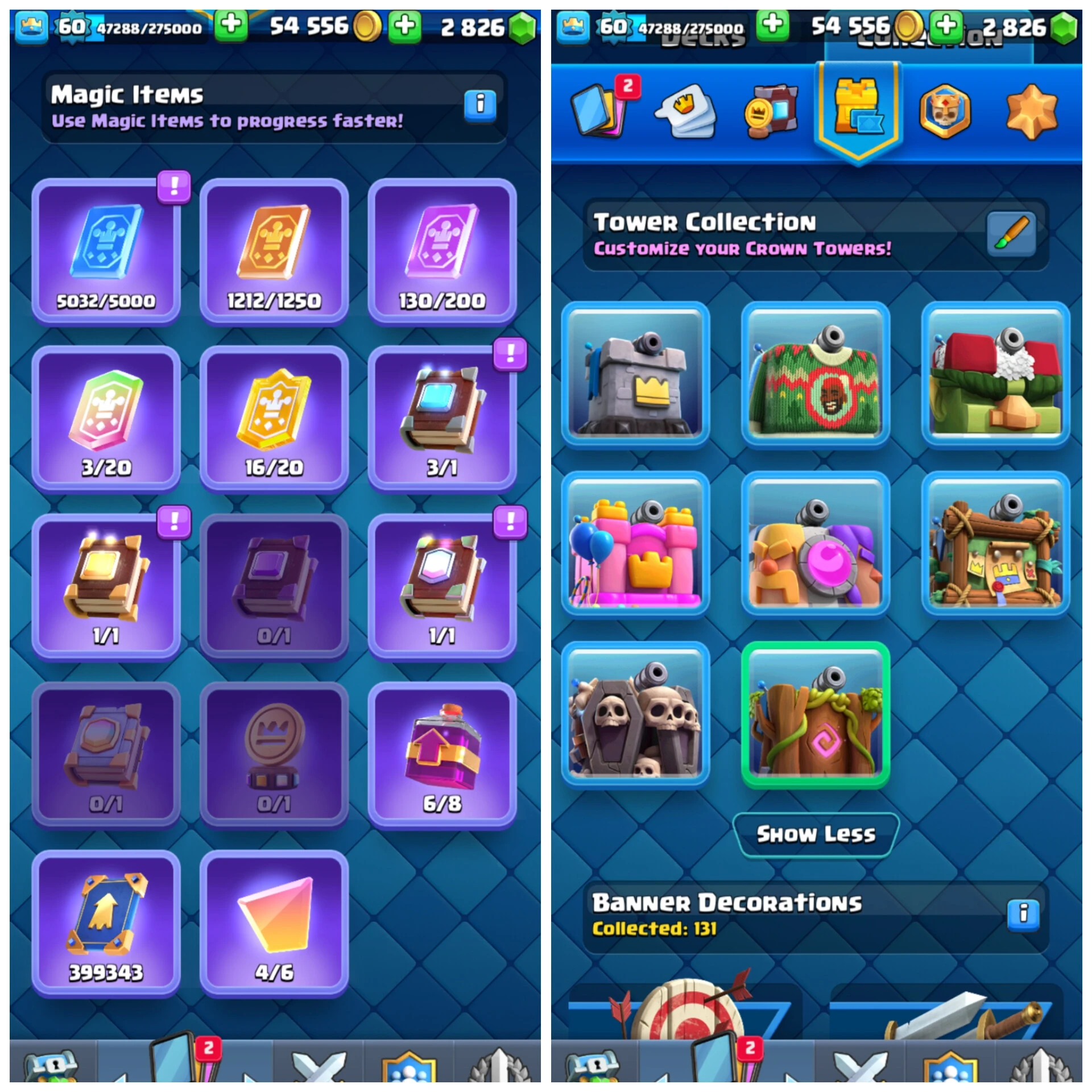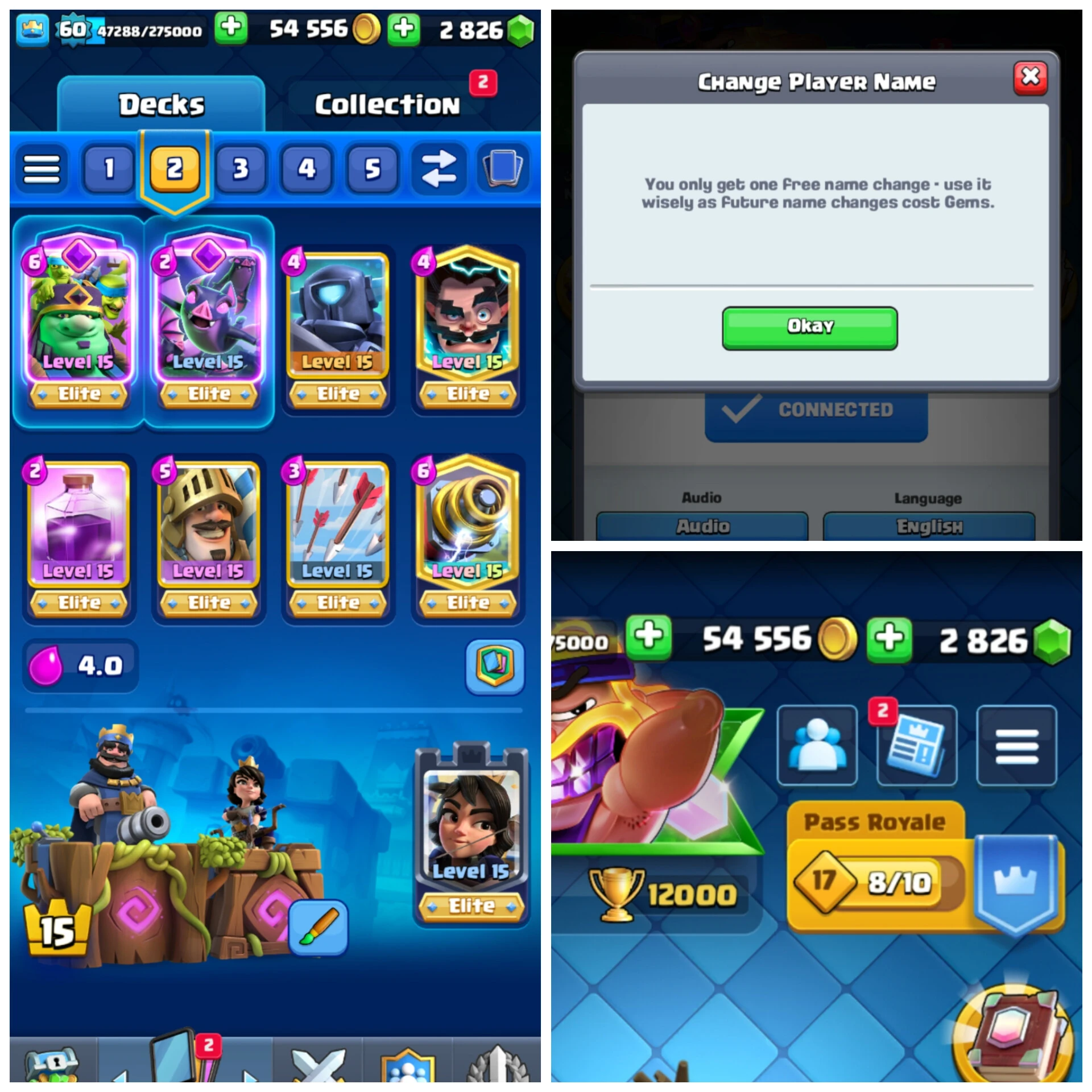KT15(60)+(26+7) Elite & 61 max+ 13 EVOLUTION + 7 skins tower + 2826 Gems + 111 Emotes + free change name + 12000 Trophies + 4 shards <Safe & cheap> ANDROID/IOS