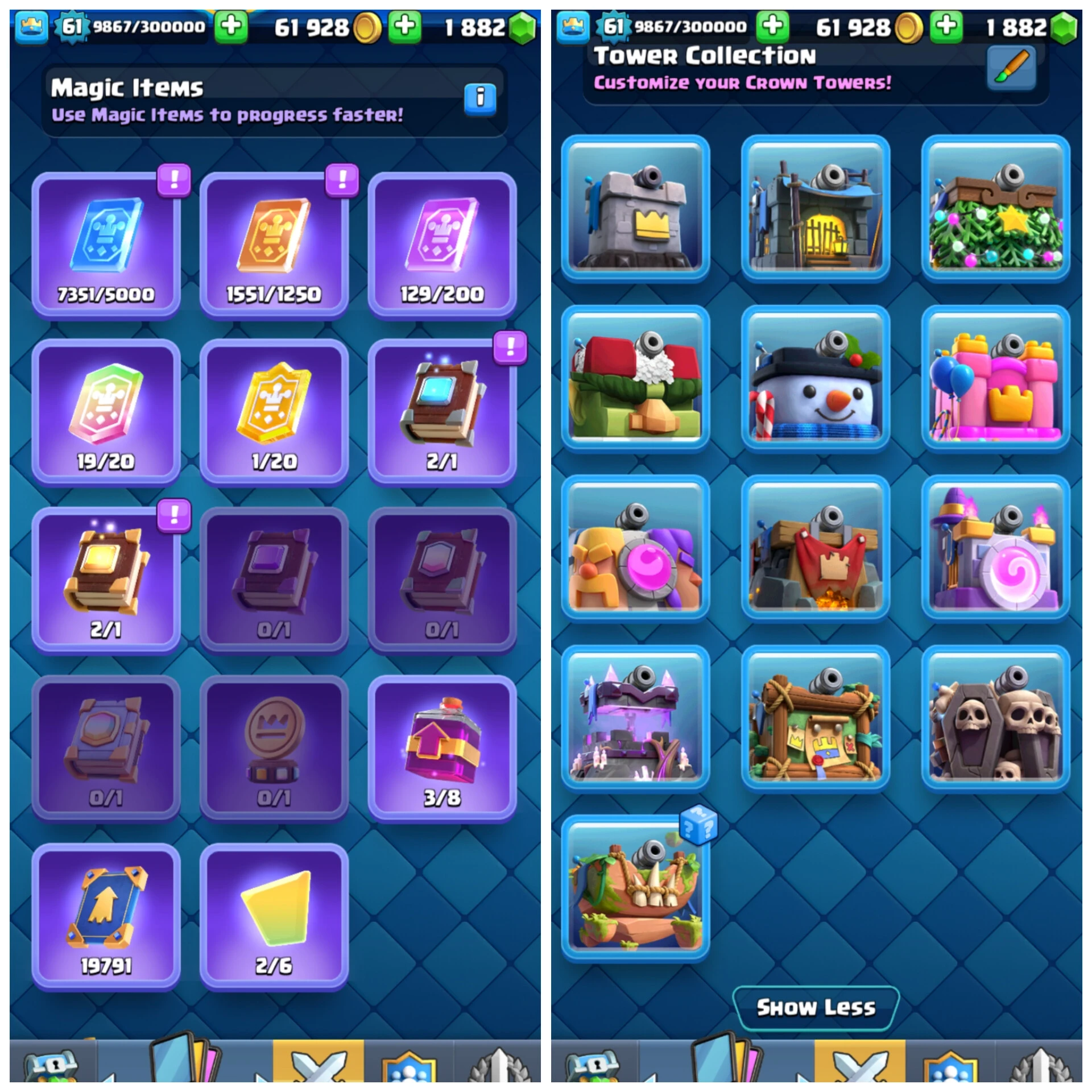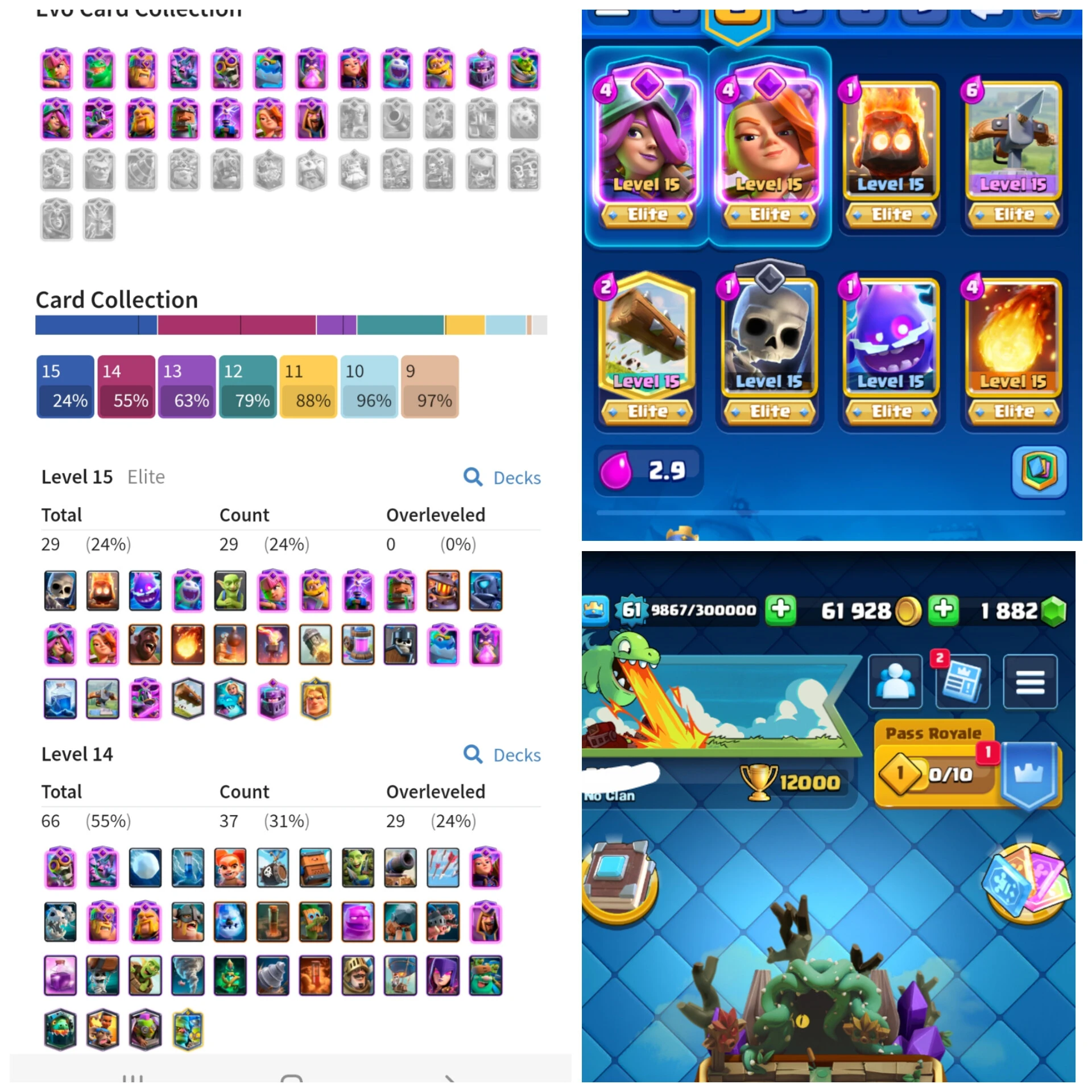 KT15(61)+29 Elite & 66 max+ 19 EVOLUTION + 12 skins tower + 115 Emotes + 12000 Trophies <Safe & cheap> ANDROID/IOS