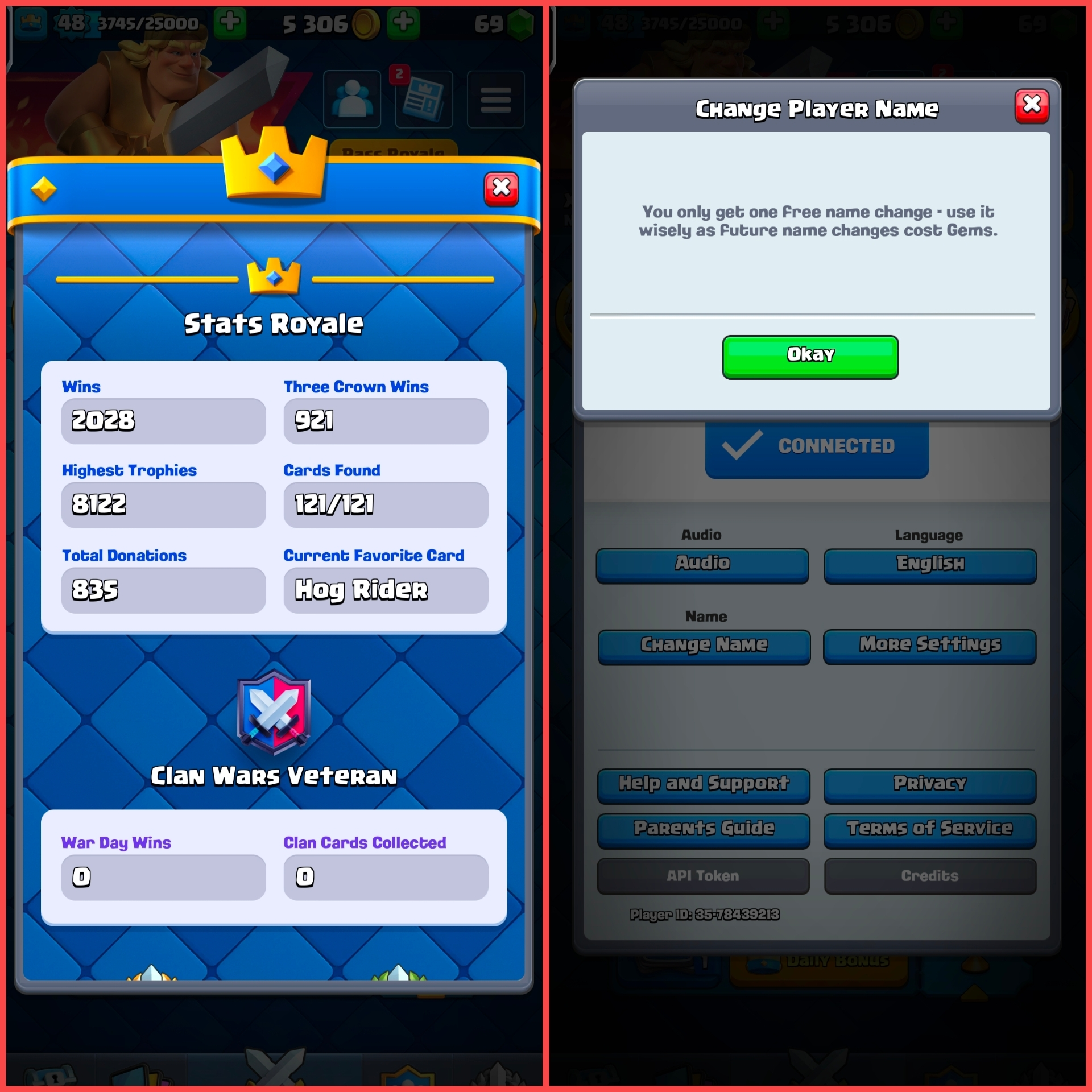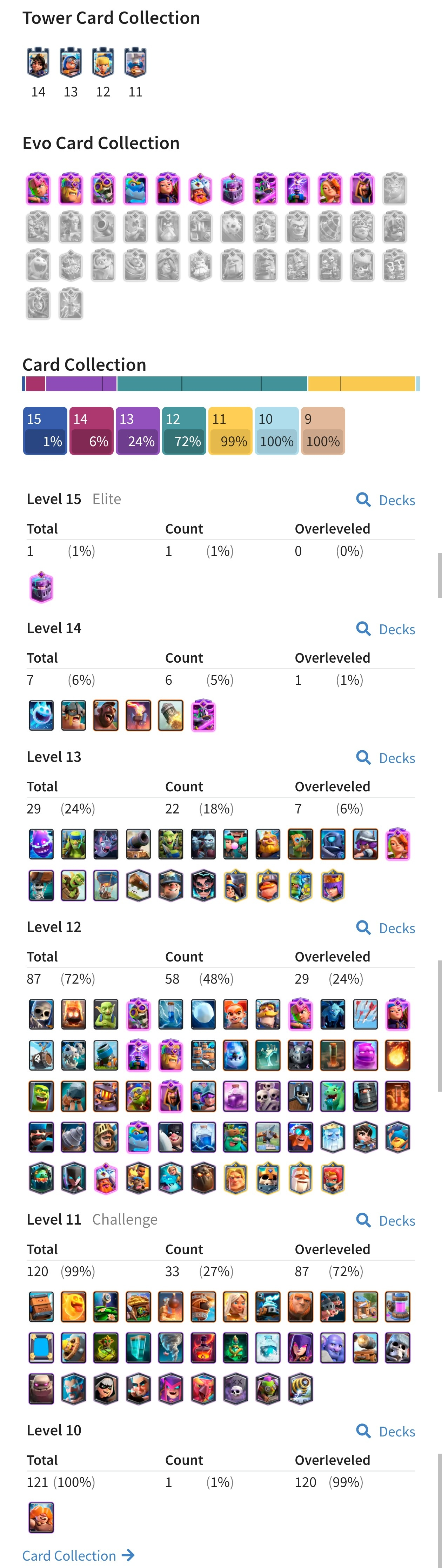 Level 48, 8036 Trophies | 121 ALL Cards, Free NC Avbl (5 Evo Shards + 11 Evos) 6 Cards Level 14, 1 Level 15, 22 Level 13, 58 Lvl12 & 33 Lvl11 | CH435