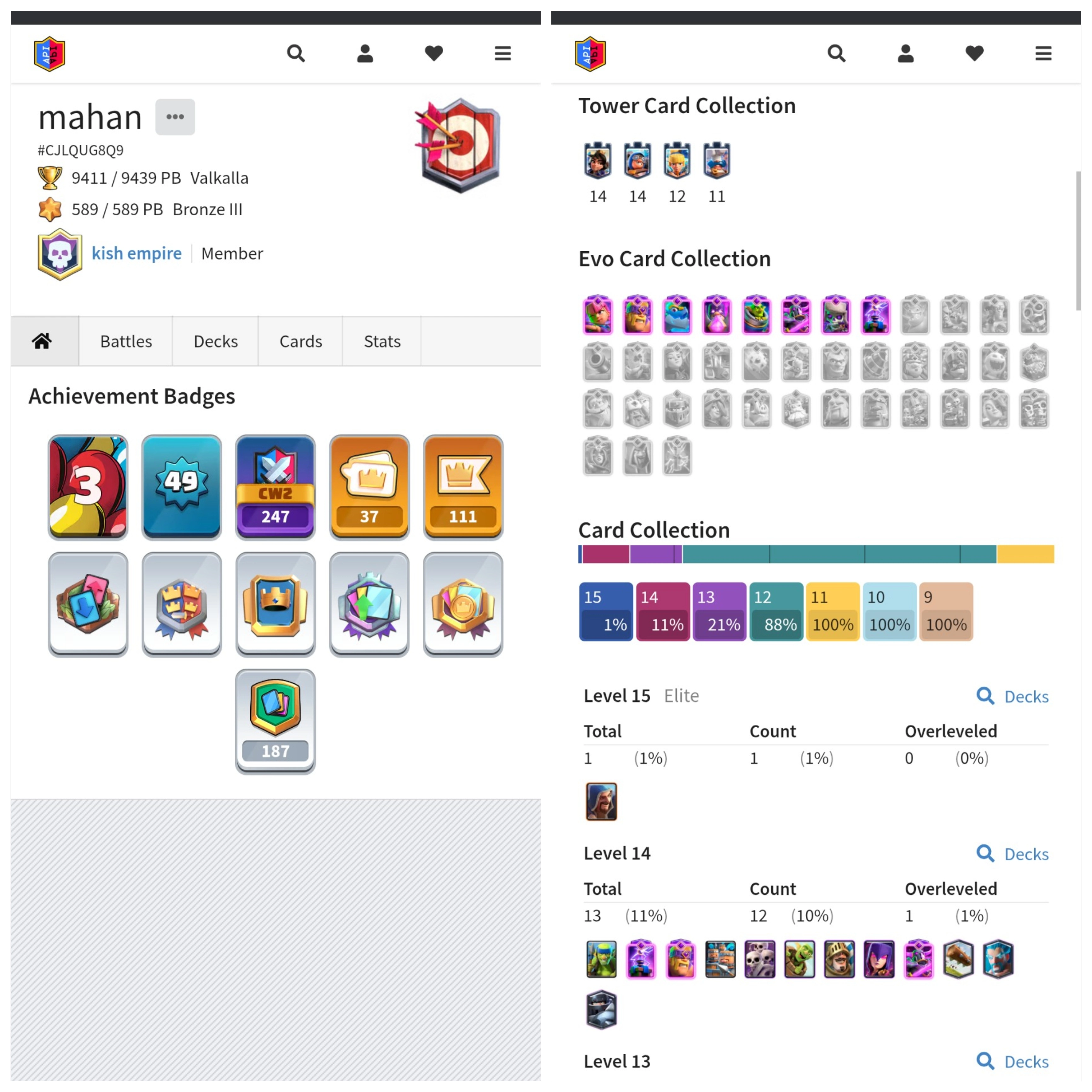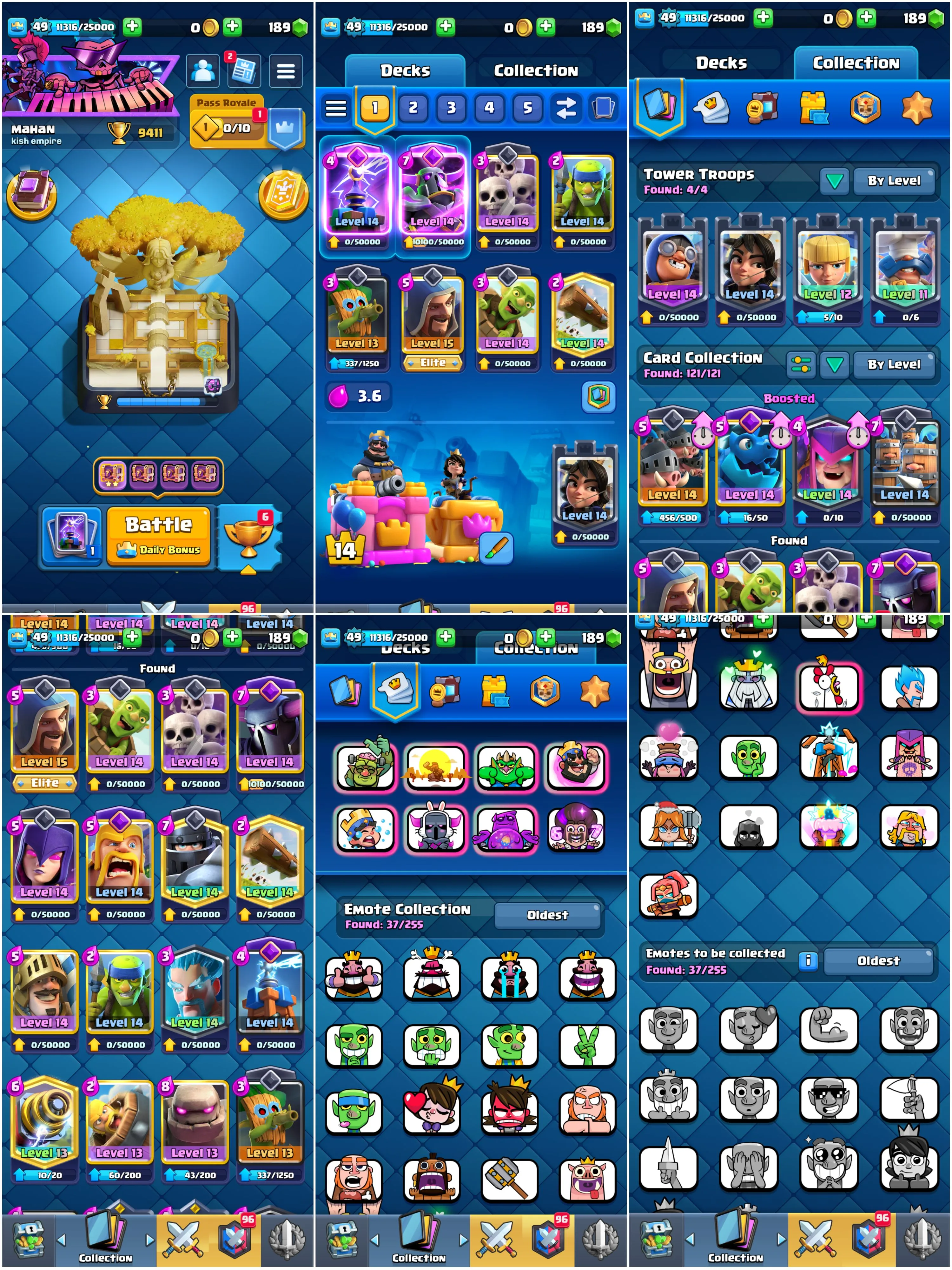 🏰 Level 49 💎 KT 14 🏆 9400 Trophies ⚔️ 13 Max Cards {1 Elite} 💫 8 Evos 🎭 37 Emotes 🎨 4 Tower Skins 🎒 Stacked Items 🚀 Instant Delivery