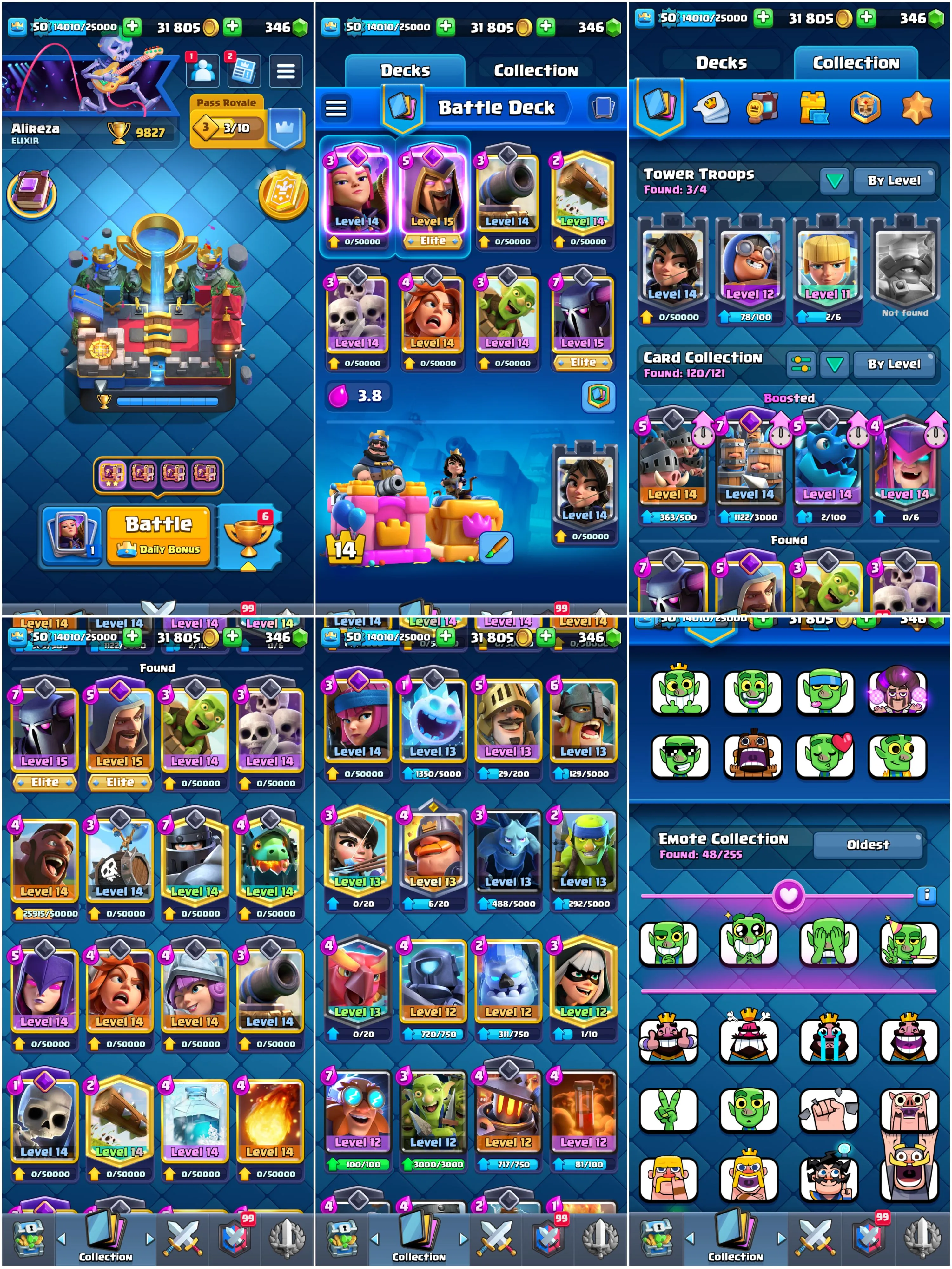🌟 Level 50 💎 KT 14 🏆 9800 Trophies 🎖️ 4 Years Badge ⚔️ 17 Max Cards {2 Elites} 💫 6 Evos 🎭 48 Emotes 🎨 6 Tower Skins 🚀 Instant Delivery