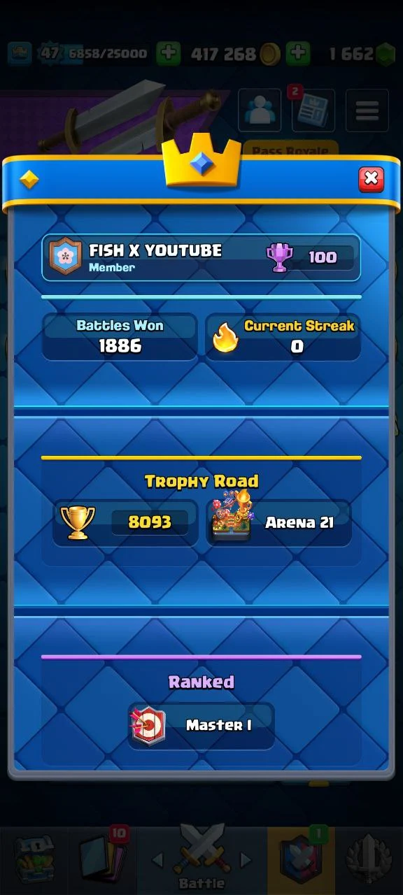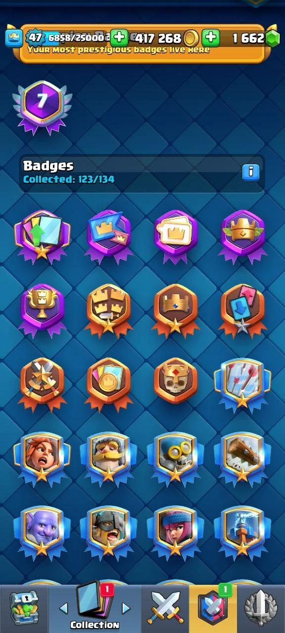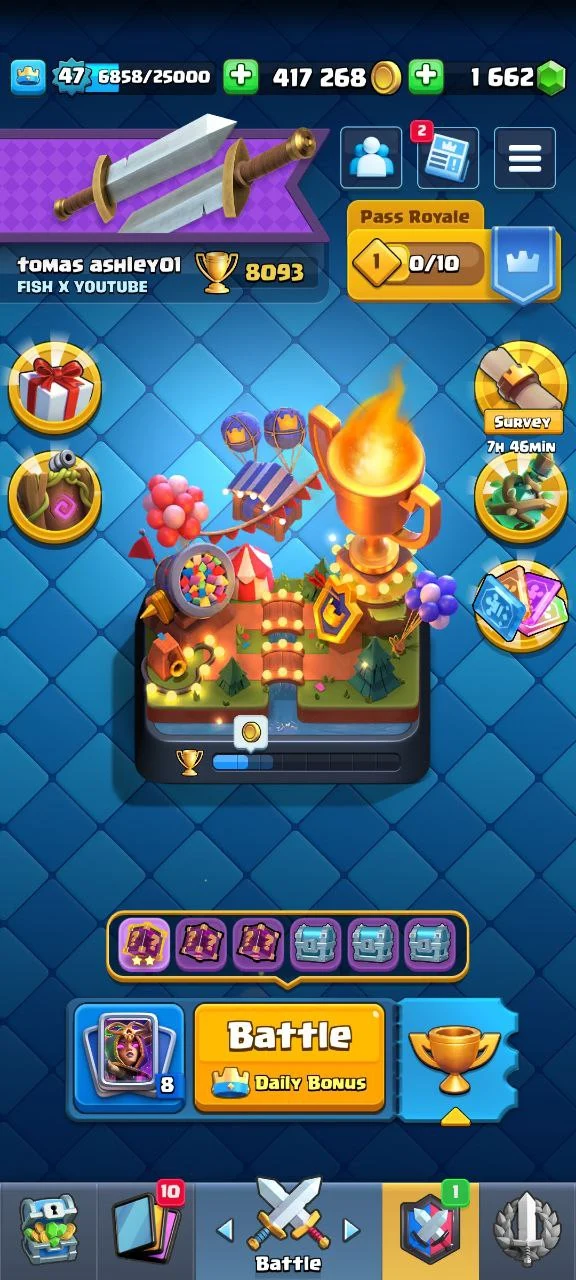 LvL 47 🏆 8093 Trophies | Arena 21 💫 14 EVO ⚡ 1 Elite 💥 15 Max 🚀 11 Tower Skins 🎊 37 Emotes 🌟 King Tower 14 💎 Free Rename | 7 Years Badge 🏅 + Linked COC TH16 📧 | Instant Delivery 🚚