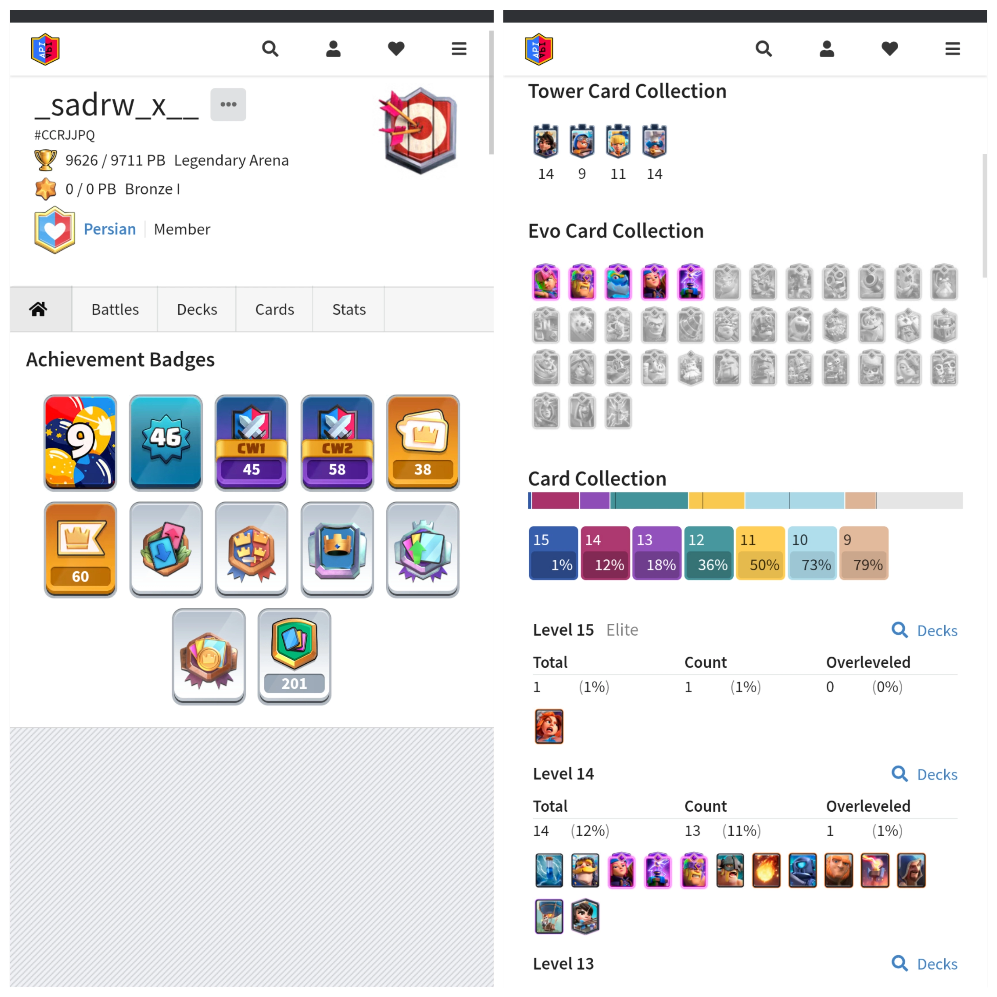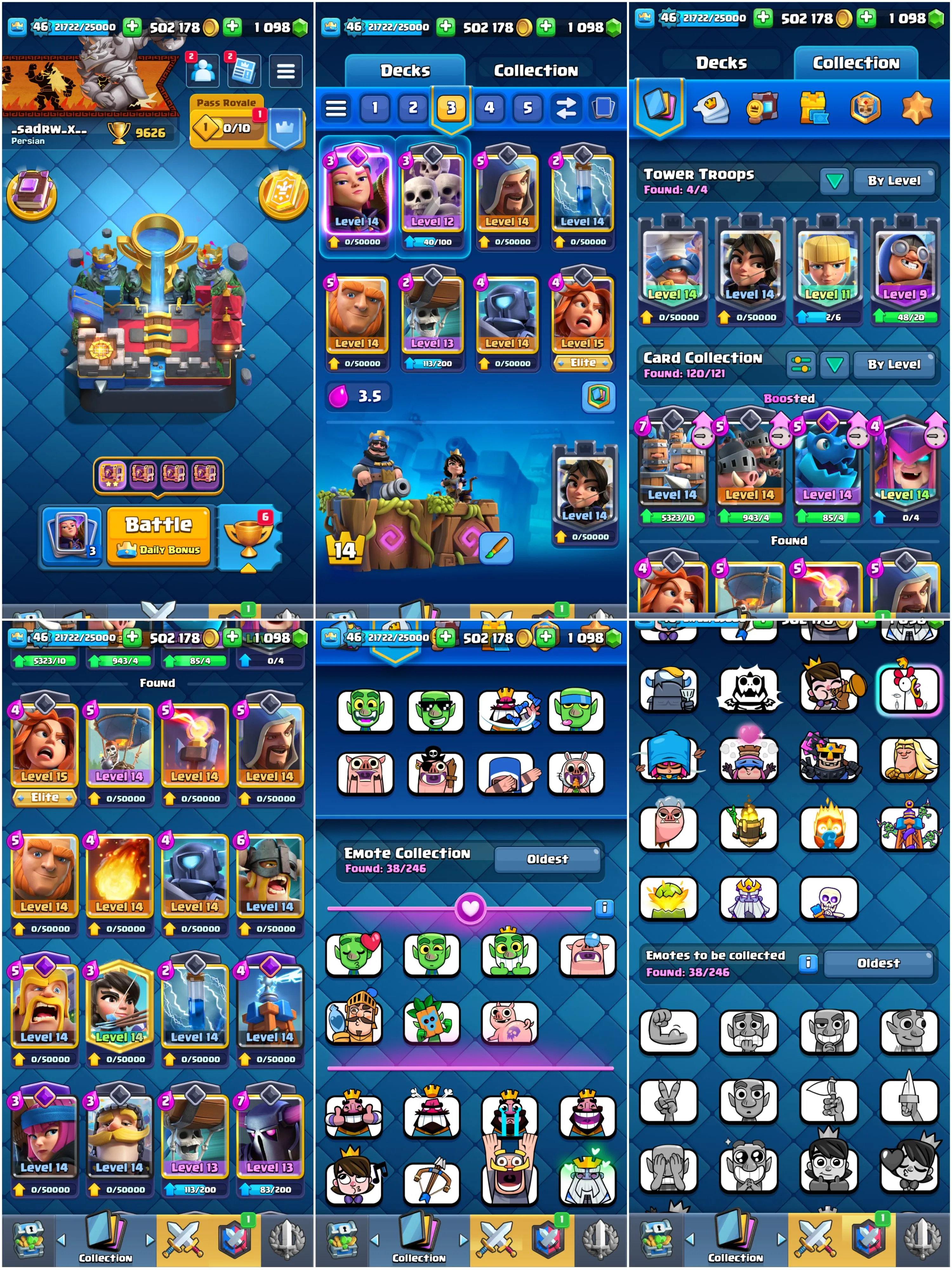 👑 Rarest 9 Years Played Badge 💎 Level 46 🏆 KT 14 ⚔️ 9600 Trophies 🎯 14 Max Cards 💫 5 Evos 🎭 38 Emotes {Old/Rare} 🚀 Instant Delivery