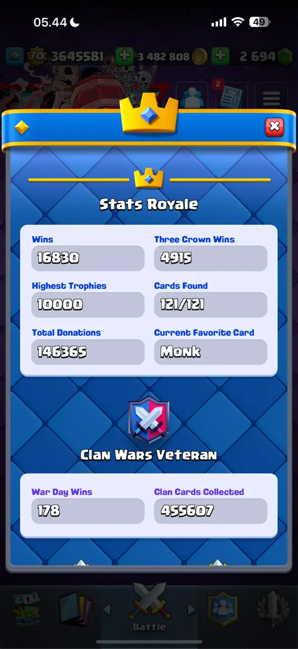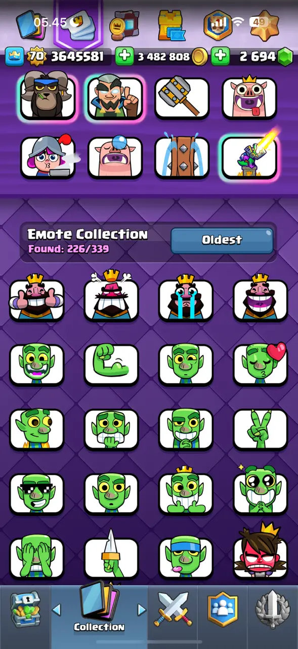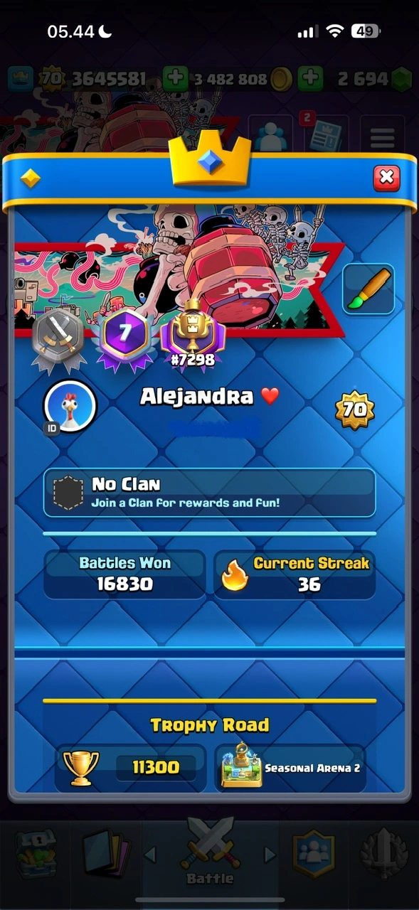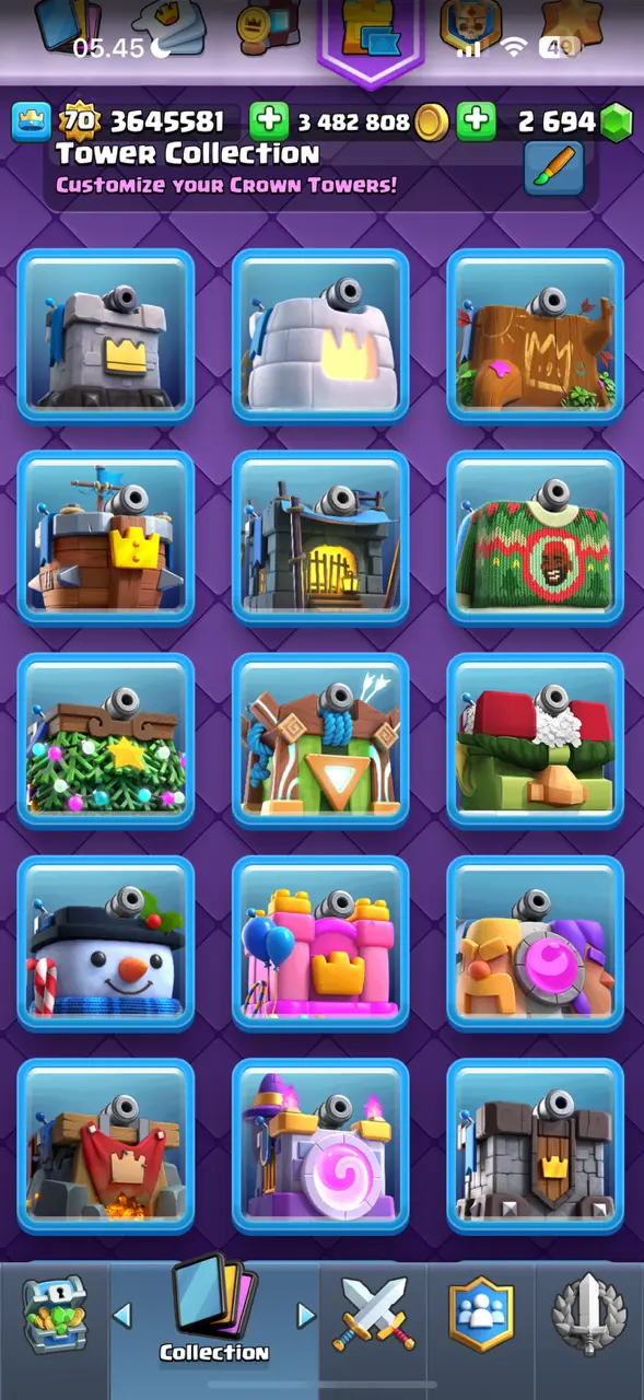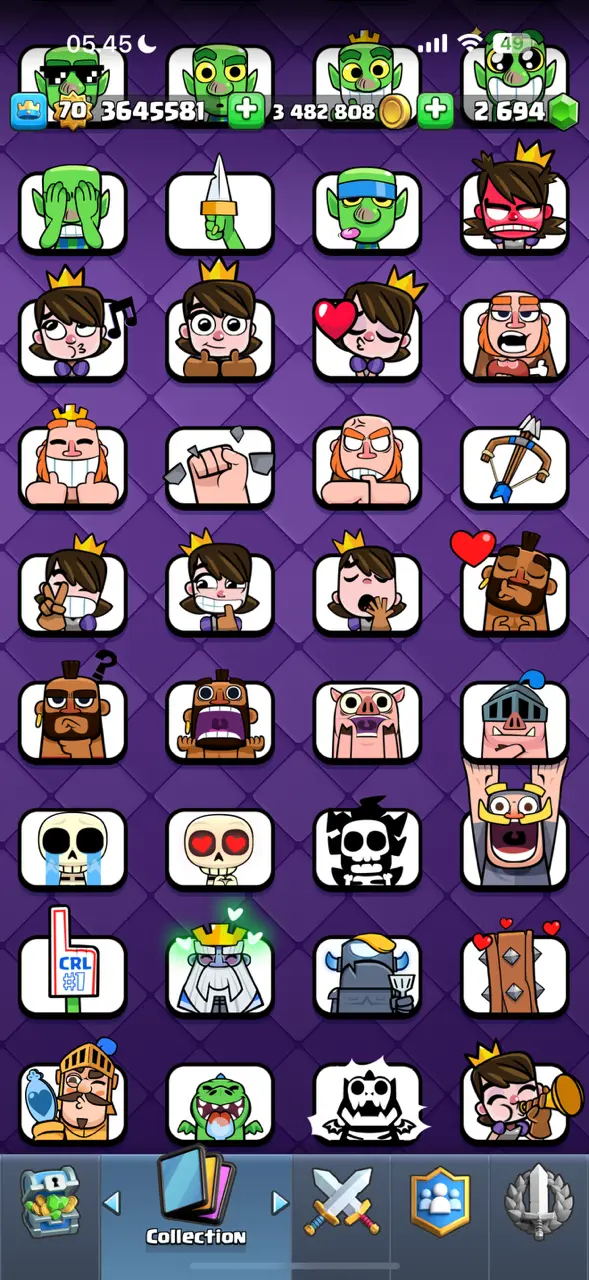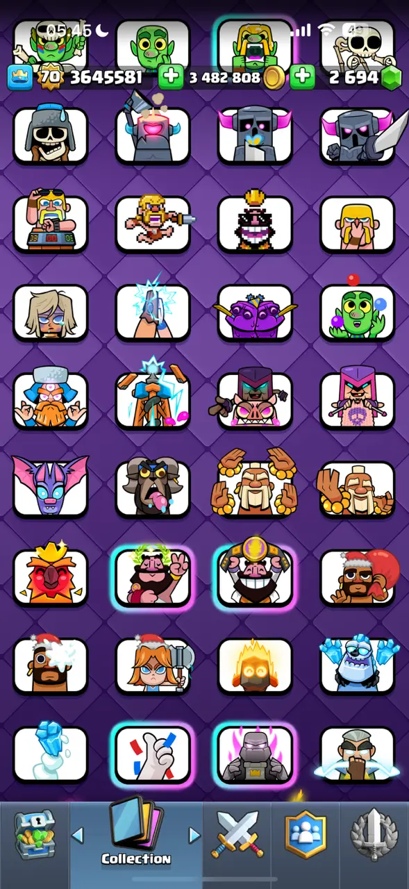 🔥 [RAREST] 🔥 CR Lv.70 (Max Level) 🔥Seasonal Arena 2🔥11.300 Trophy🔥KT 15🔥92 Elite & 120 Max Card🔥19 Evo Card🔥226 Rare Emotes🔥Available Rename🔥19 Tower Skins🔥Free COC TH 15🔥Full Acces & Guaranteed🔥