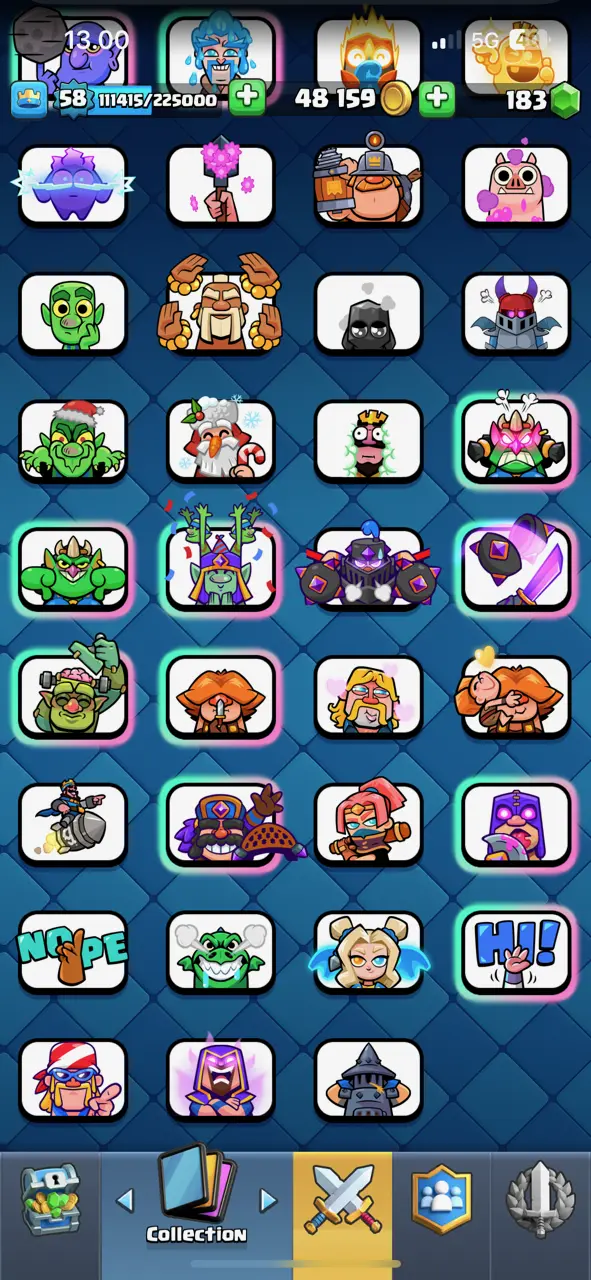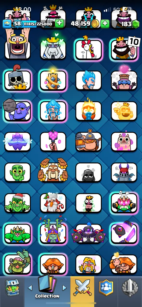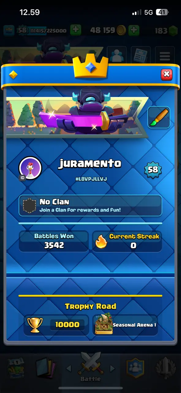 🔥 -RAREST EVO- 🔥 CR Lv.58 🔥 Seasonal Arena 1 🔥 10000 Trophies 🔥 KT 15 🔥 23 Evo Card 🔥 42 Max Cards & 18 Elite 🔥 126 Emotes 🔥 14 Tower Skins 🔥 [F2360] 🔥