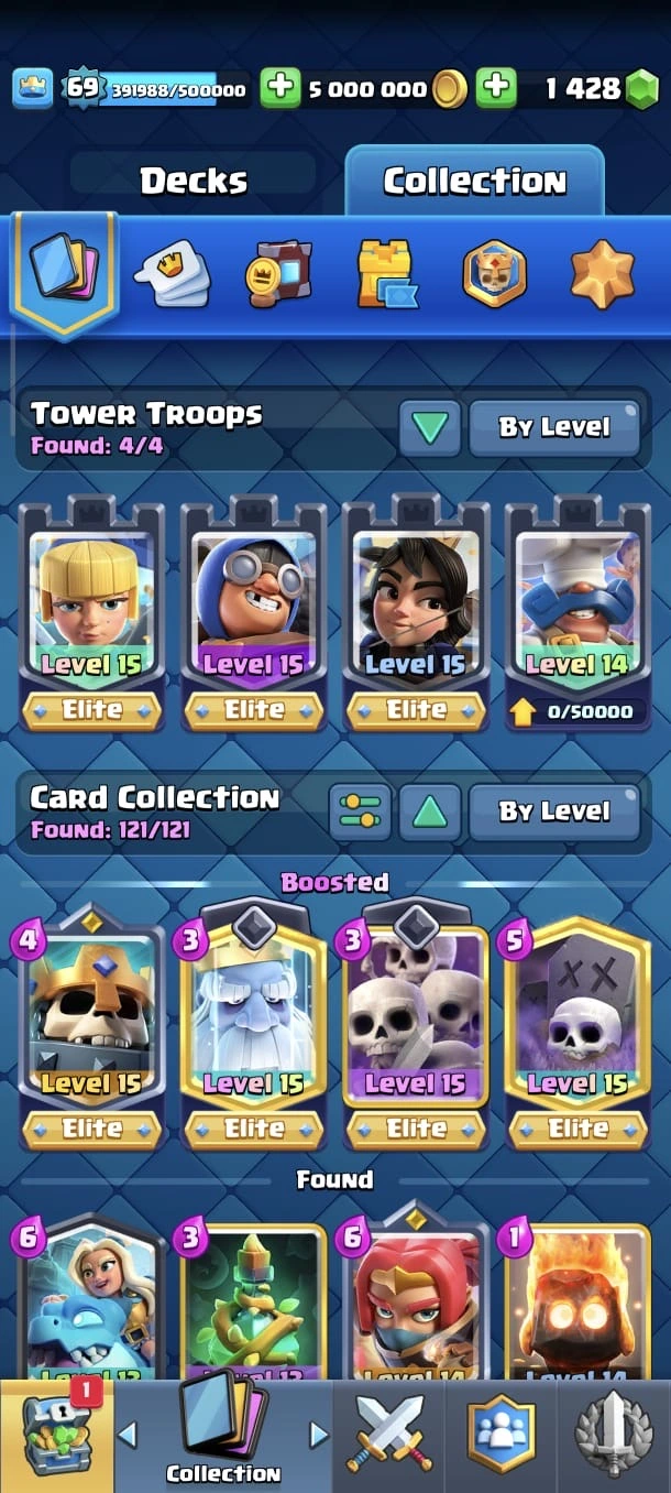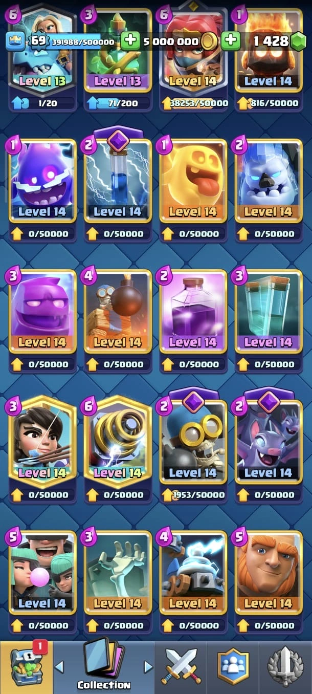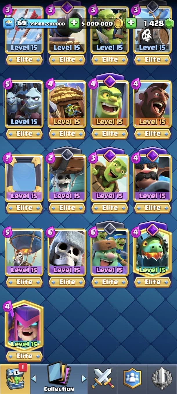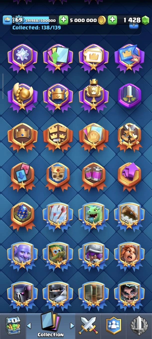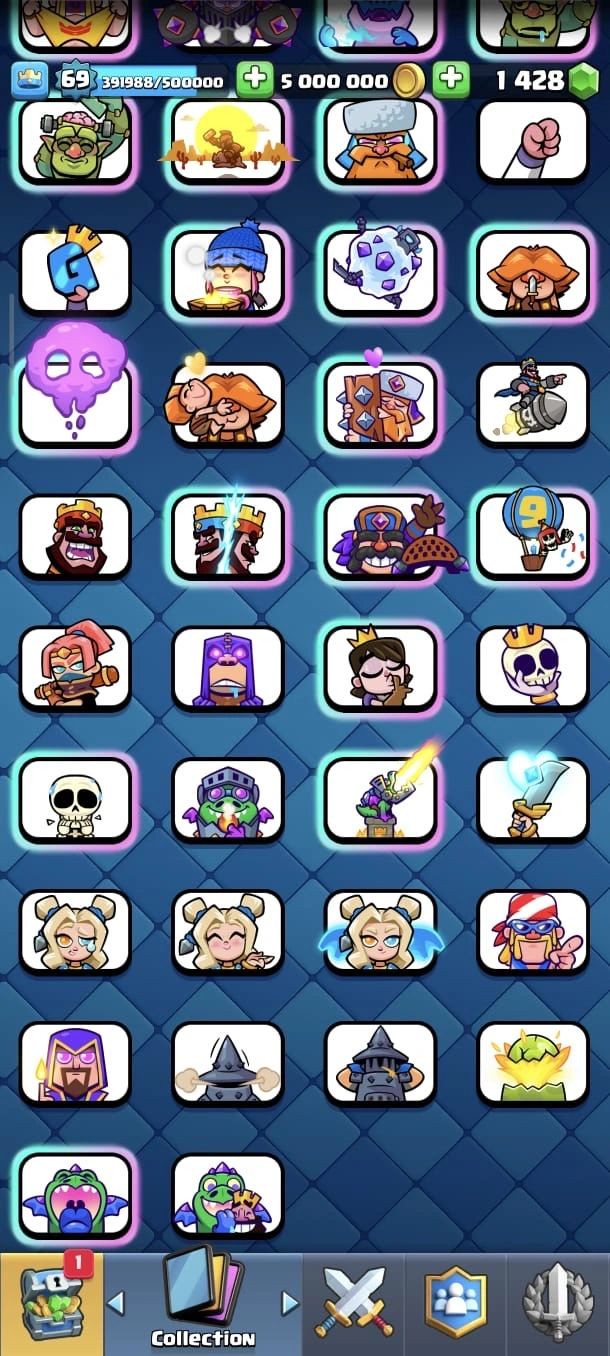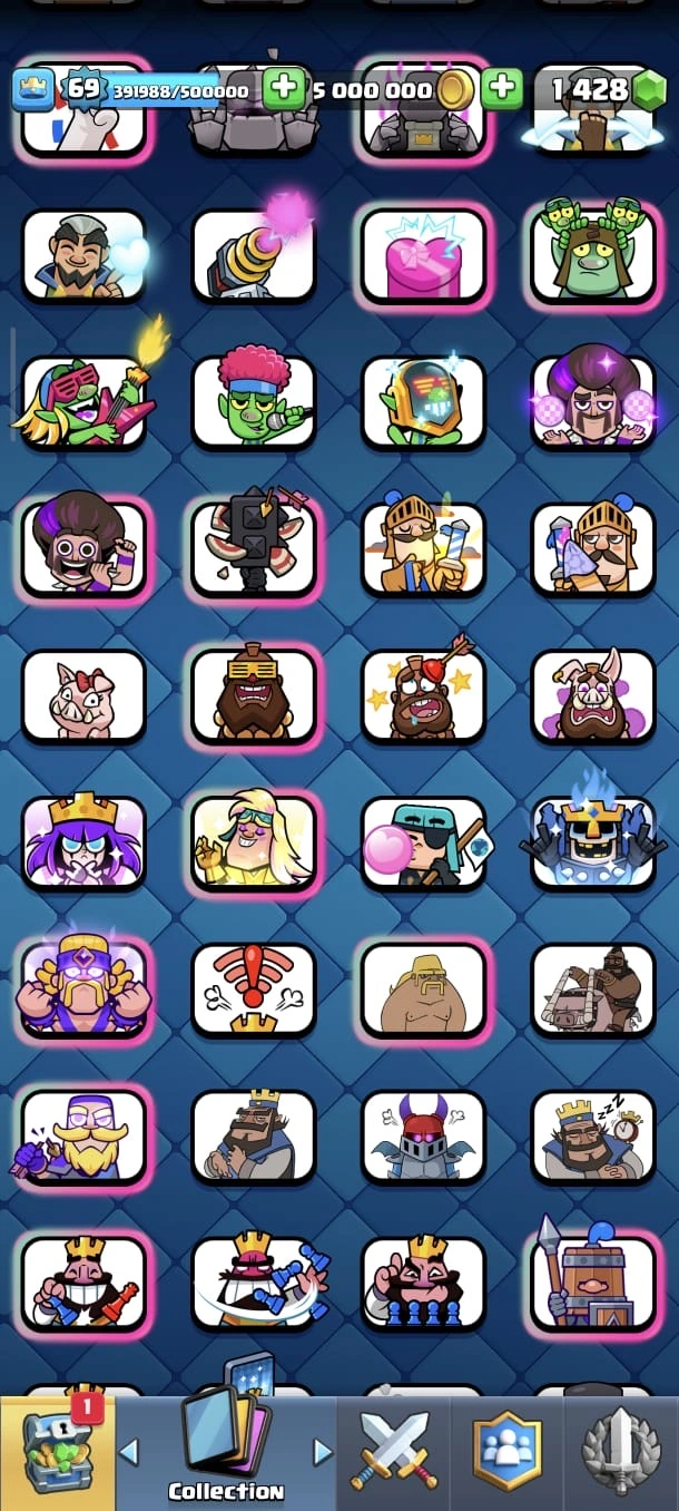SUPER RARE ACC 🔥 CR LV 69 🔥 Elite 89 🔥 Evo 29 🔥 All Max Cards 🔥 Skins Towers 51 🔥 Emote 326 🔥 Trophy 13350 🔥