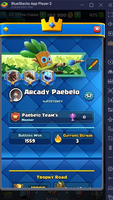 ULTIMATE CHAMPION KING ⭐ 10000 TROPHY ⭐ 52 LVL ⭐ KT 14 ⭐ 121 CARDS ⭐ 9 MAX CARDS ⭐ 4 ELITE CARDS ⭐ 10 EVO ⭐ EMOTE 61 ⭐ #JP22YQVCY ⸱ TAG ACCOUNT