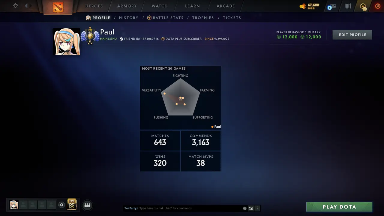#BB1854 Divine 4754 MMR+68 LVL TROPHY+643 matches+12000 behavior