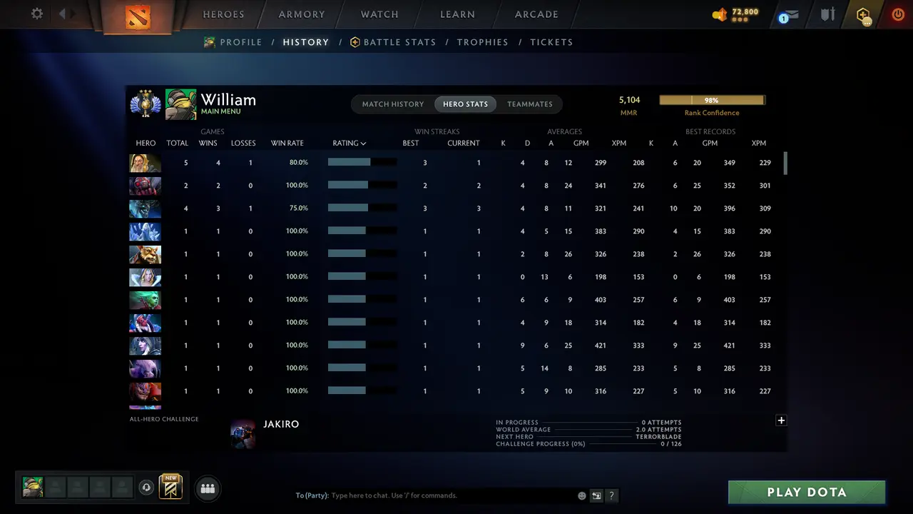 #BB1934 Divine 5104 MMR+73 TROPHY+Mainpool(fast search)+12k behavior