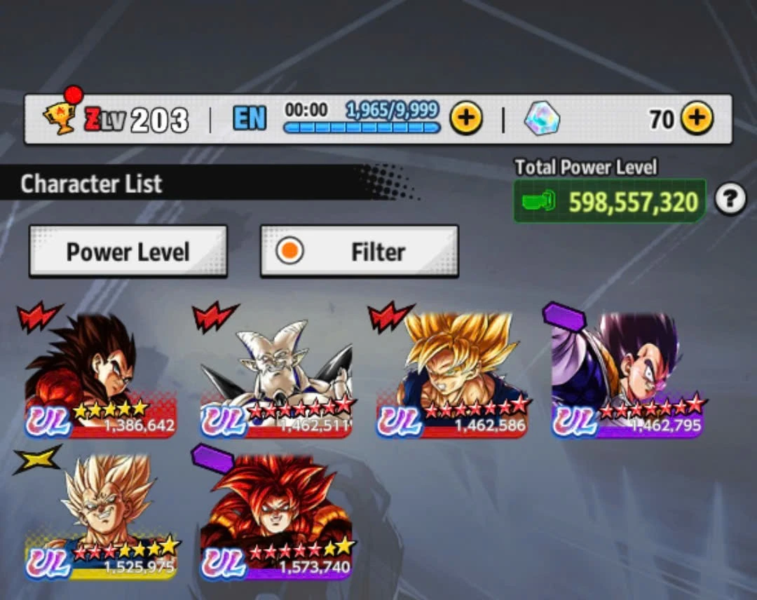 D782-IOS+Androi-598 Millions Power+6 UL(SS4 Vegeta+SS4 Gogeta+Majin Vegeta)+45 Legends Limited+Good Equipment+LL Full Red Star(Goku Uis+SS4 Goku and Vegta+God Goku+Goku and Frieza)-Gotenks+Zamazu Red+Many Good Team Ready PVP