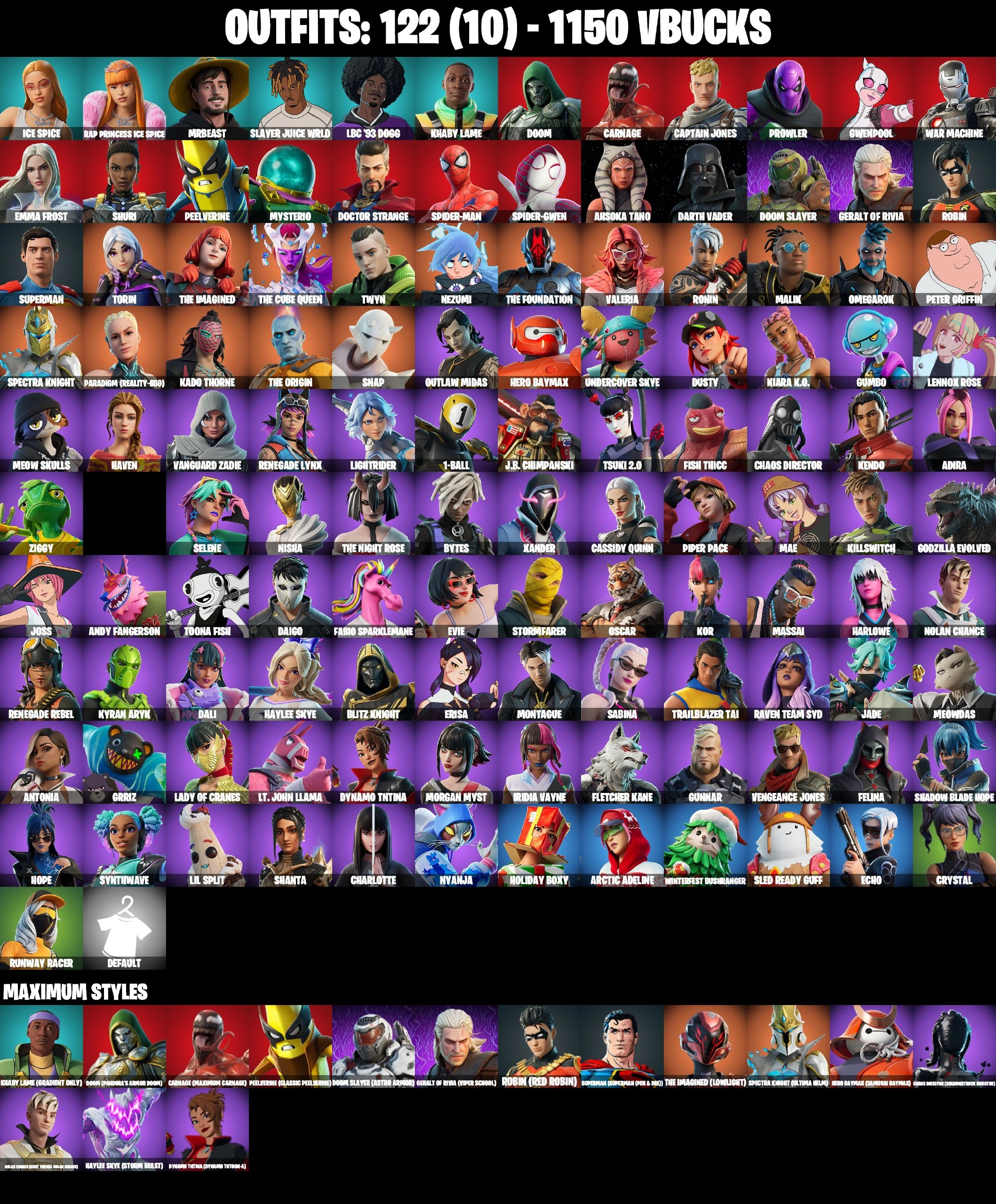 122 SKINS | SPIDER-MAN | SPIDER-GWEN | AHSOKA TANO | DARTH VADER | OUTLAW MIDAS | STAR WAND | CHAOS DIRECTOR MAX | HAYLEE SKYE MAX | TSUKI 2.0 | EVIE | CHARLOTTE | LADY OF CRANES | MEOW SKULLS | TOONA FISH | CAN PLAY ON PSN,XBOX,P
