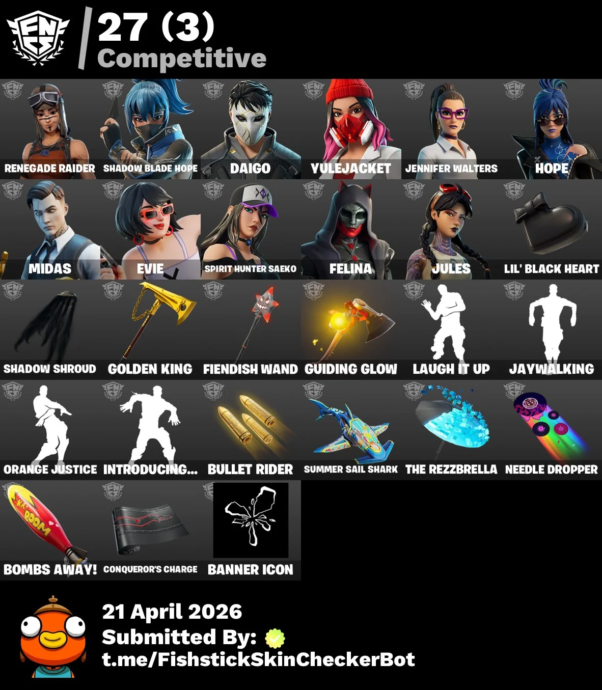 131 Skins Stacked Account ⭐ Renegade Raider 🔥 Take The Elf 💥 Blue Striker ⭐ Eternal Knight