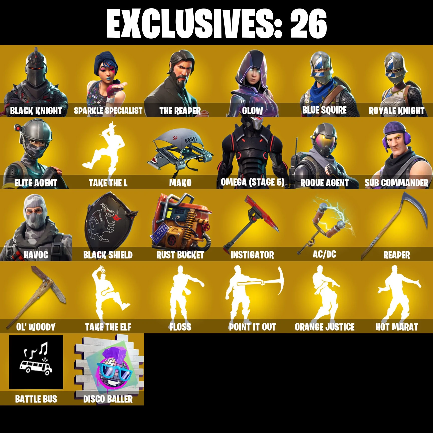 🎆140 SKINS ⚡️PC⚡️ BLACK KNIGHT 👑 SPARKLE SPECIALIST 👑 THE REAPER 👑 GLOW 👑 BLUE SQUIRE 👑 ROYALE KNIGHT 👑 ELITE AGENT 👑 OMEGA (STAGE 5) ⚡️ 400 VB #M461