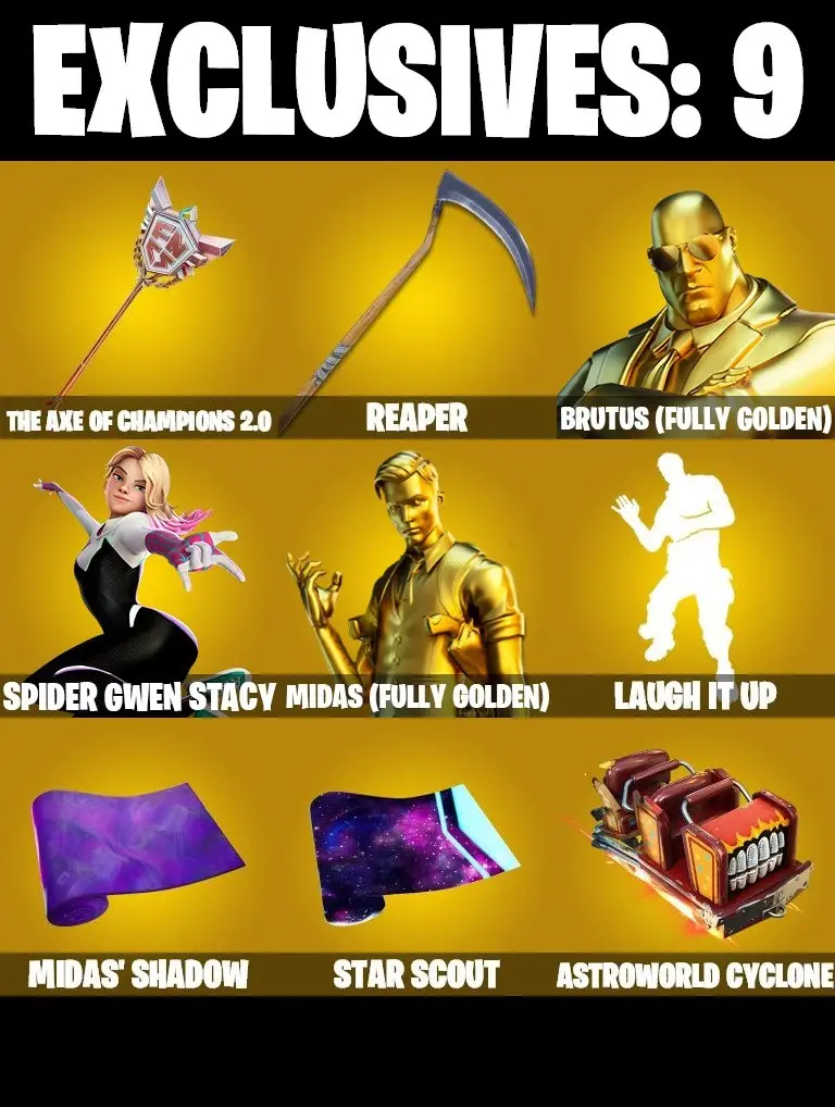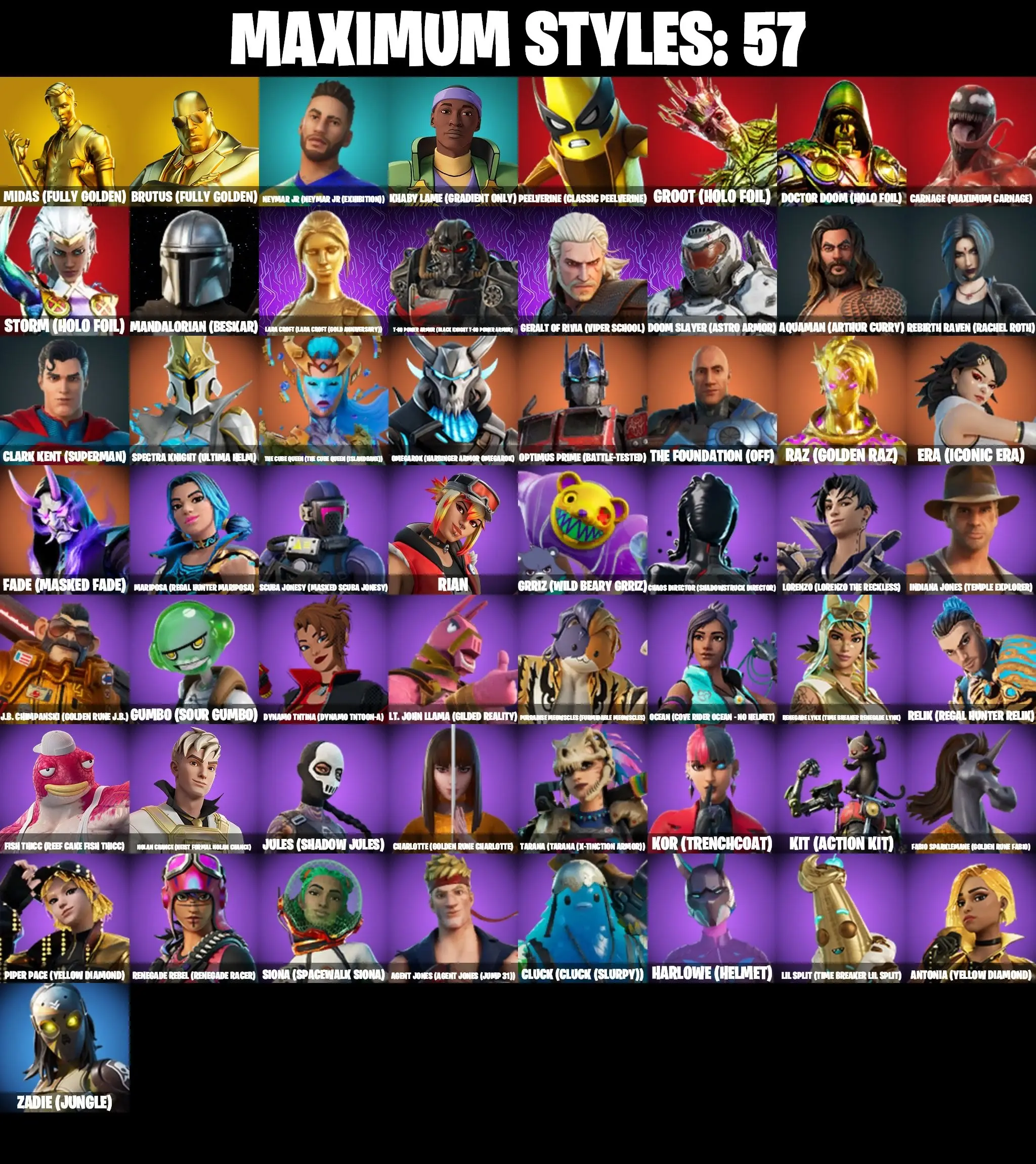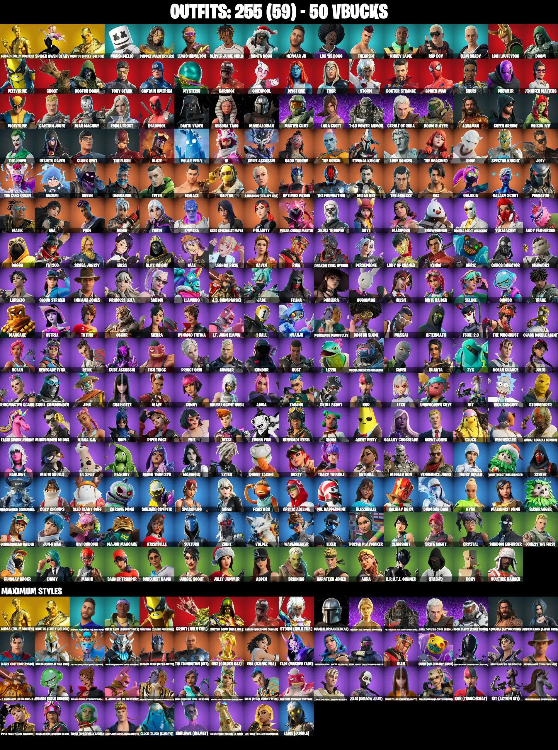 255 SKINS | PARENTAL CONTROL | THE AXE OF CHAMPIONS 2.0 | GOLDEN LARA CROFT | FULL BESKAR MANDALORIAN | RACHEL ROTH | HOLO FOIL STORM | HOLO FOIL GROOT | HOLO FOIL DOCTOR DOOM | MASTER CHIEF | POLARITY | SKULL TROOPER | BRAINIAC |