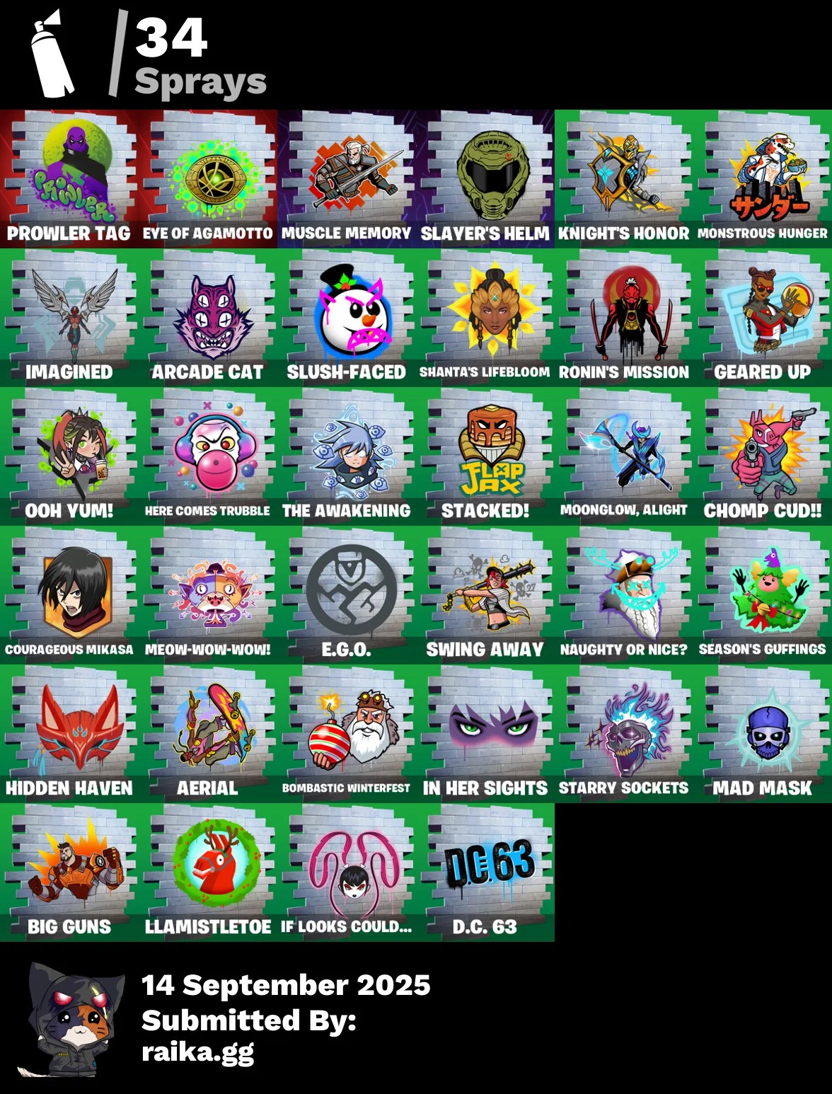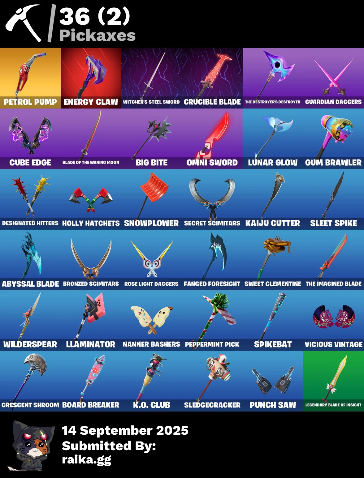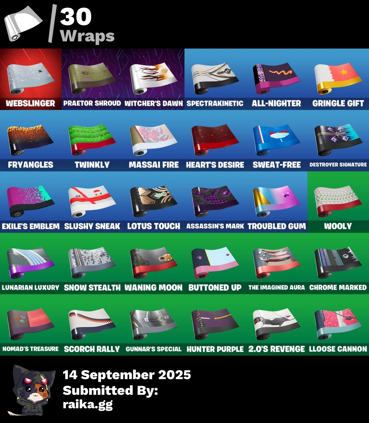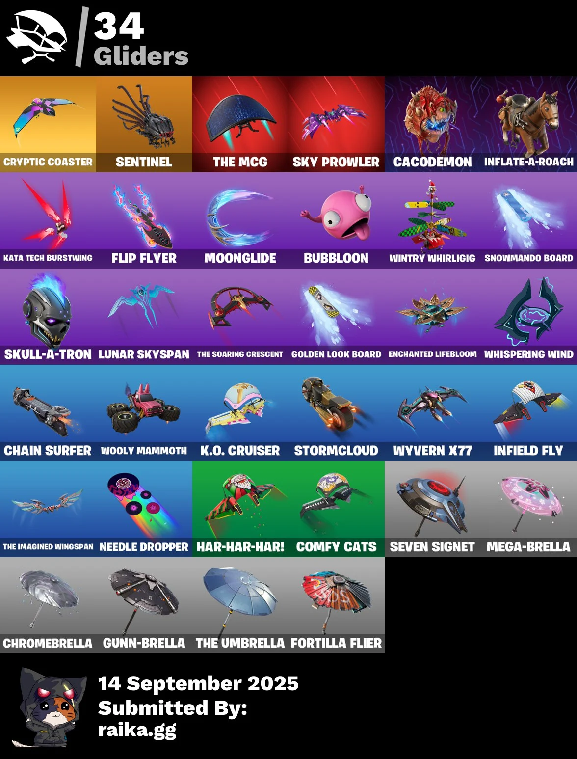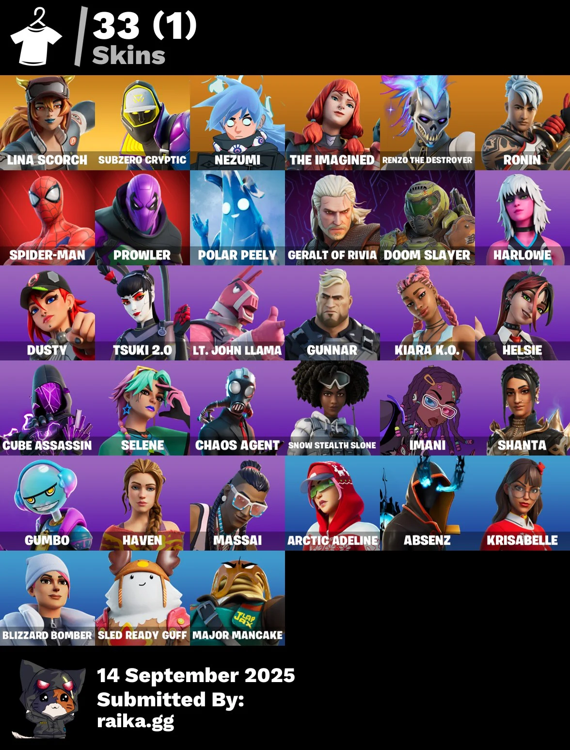 33 skins | 950 VB | Lina Scorch | Subzero Cryptic | Spider-Man | Nezumi | The Imagined | Renzo the Destroyer | Ronin | Prowler | Polar Peely