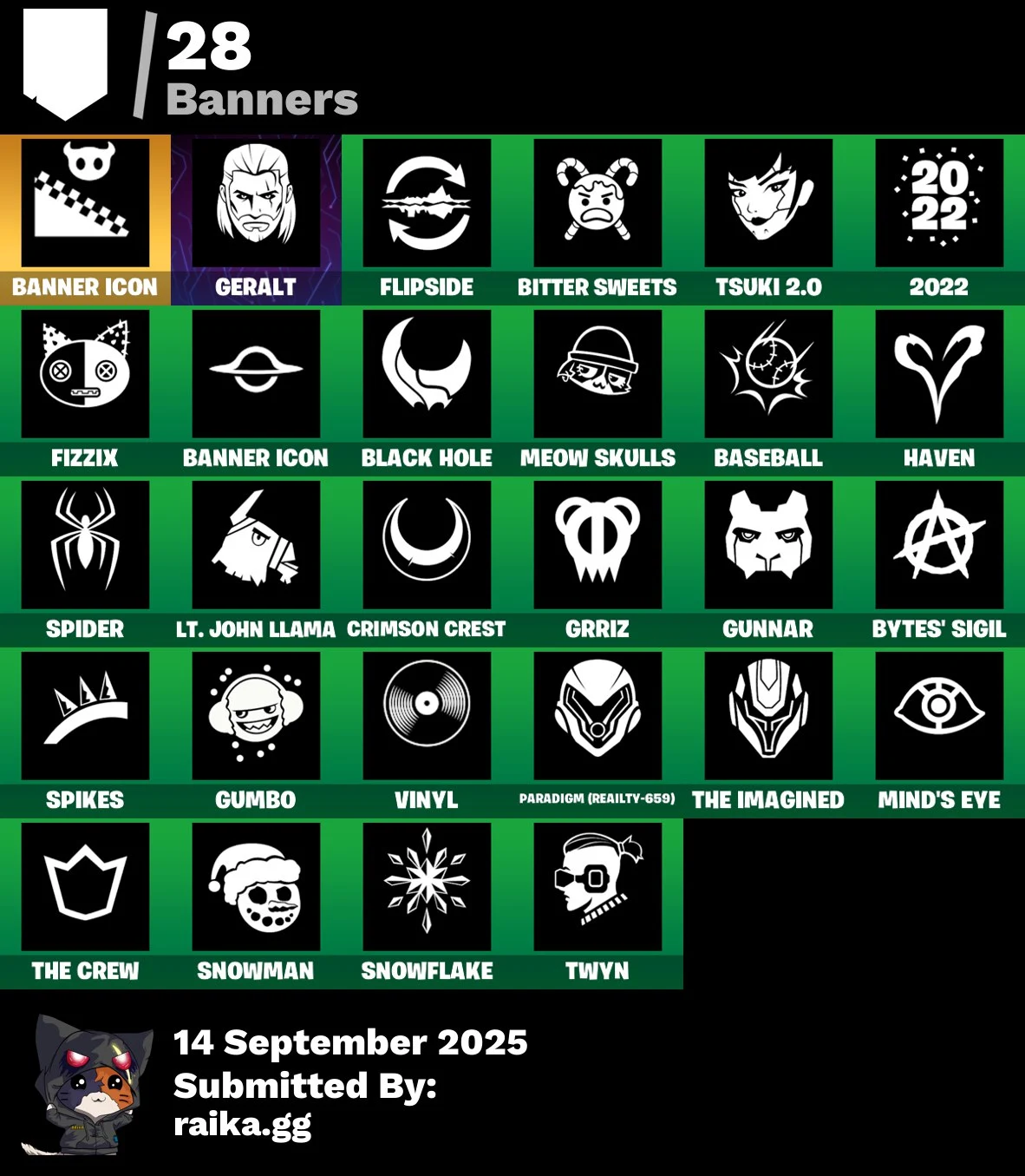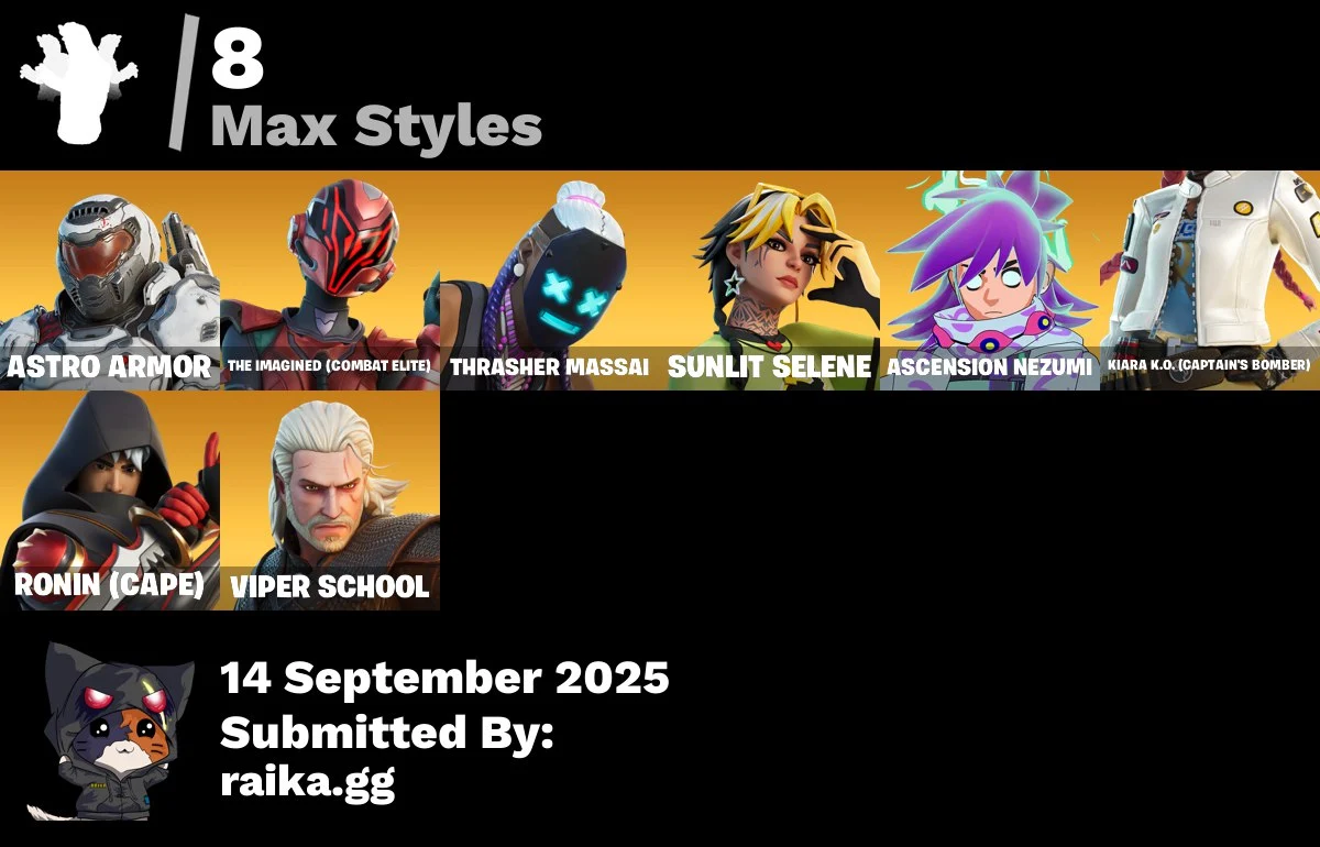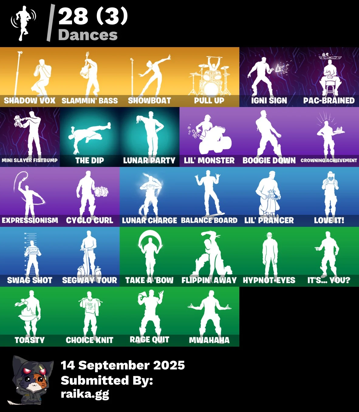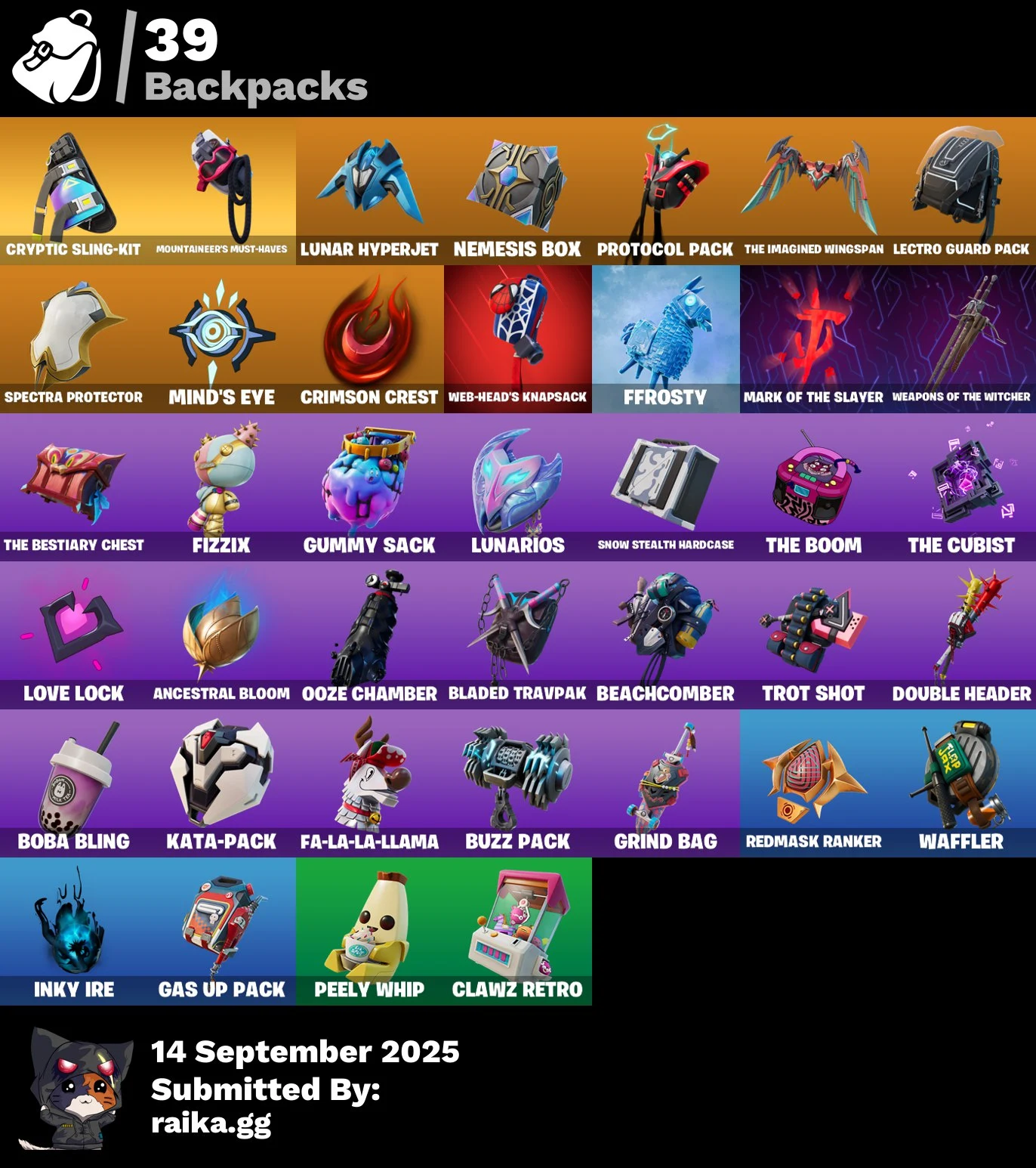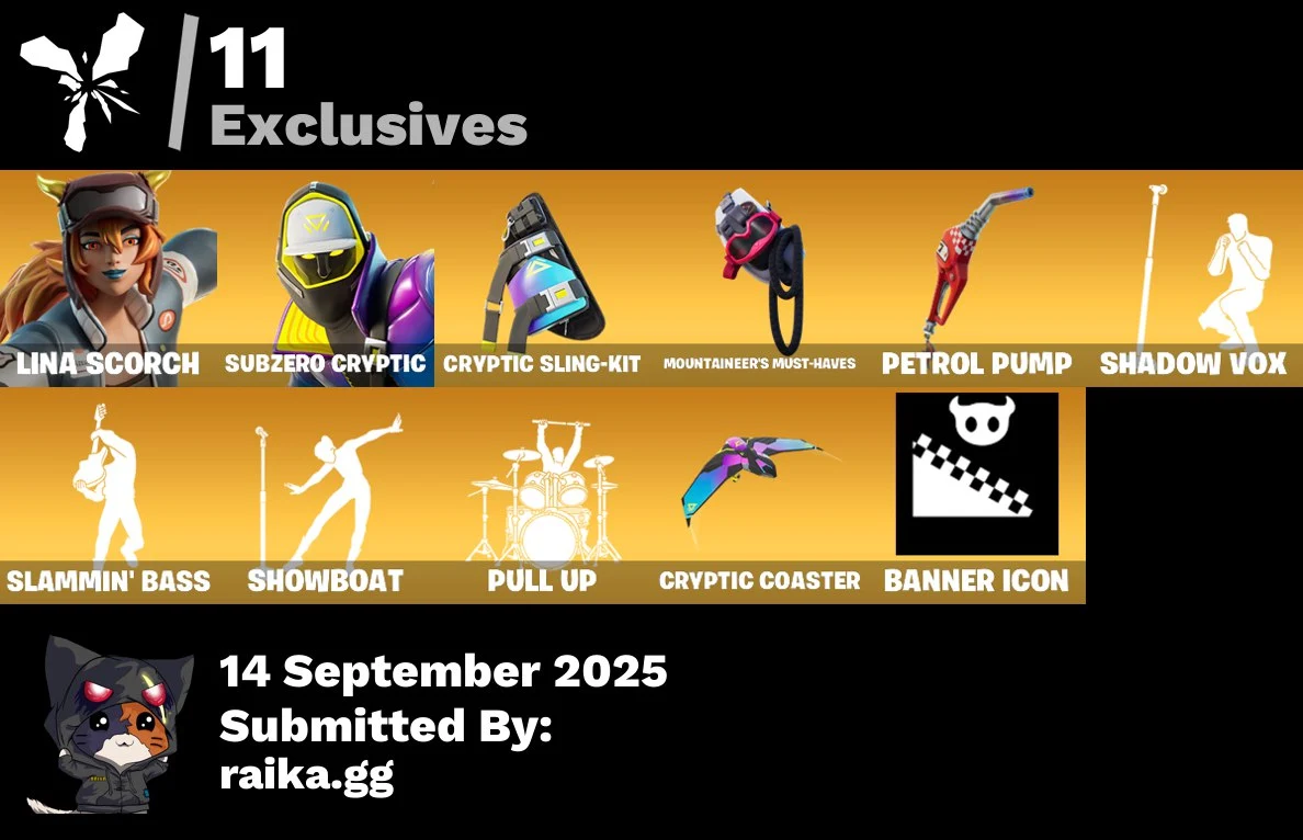 33 skins | 950 VB | Lina Scorch | Subzero Cryptic | Spider-Man | Nezumi | The Imagined | Renzo the Destroyer | Ronin | Prowler | Polar Peely