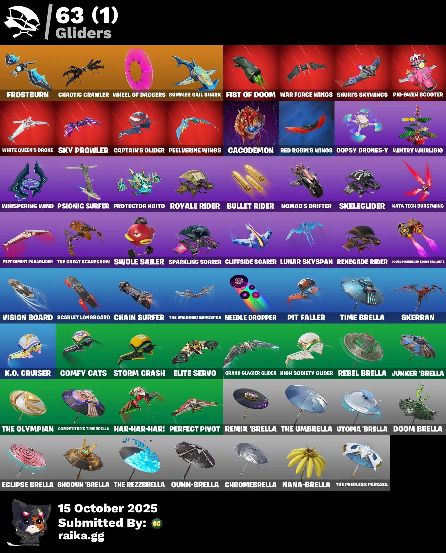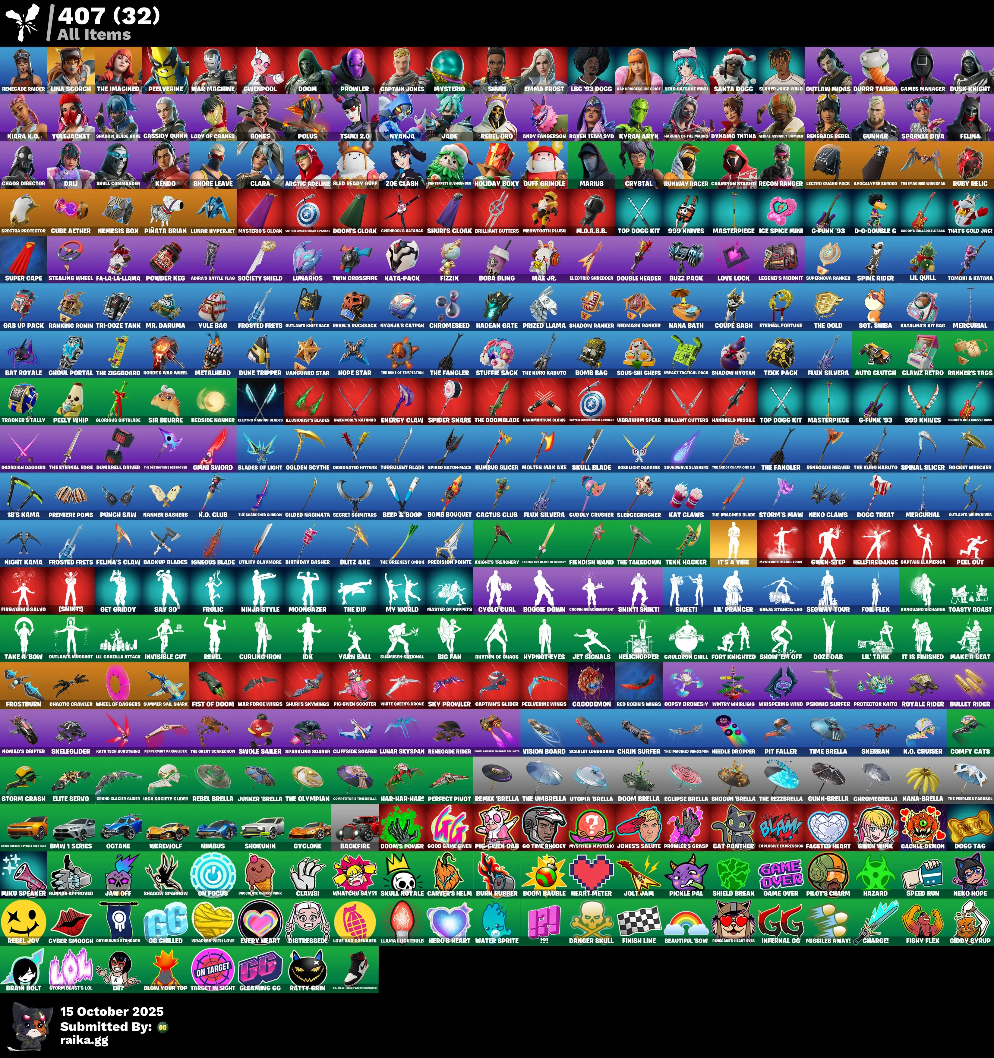 59 skins | Slayer Juice WRLD🎃Prowler🎃Neko Hatsune Miku🎃Doom🎃The Imagined🎃Lina Scorch🎃Mysterio🎃Shuri🎃Rap Princess Ice Spice🎃Renegade Raider🎃Emma Frost🎃Santa Dogg🎃Kyran Aryk🎃War Machine🎃Captain Jones🎃Peelverine🎃Durrr Taisho🎃Gwenpool D3685