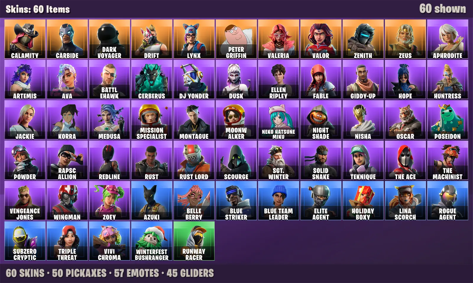 ⭐️ 60 Skins | Take The L + Elite Agent + Blue Team Leader + Rogue Agent + Blue Striker + Carbide + Drift + Calamity | 200 VB