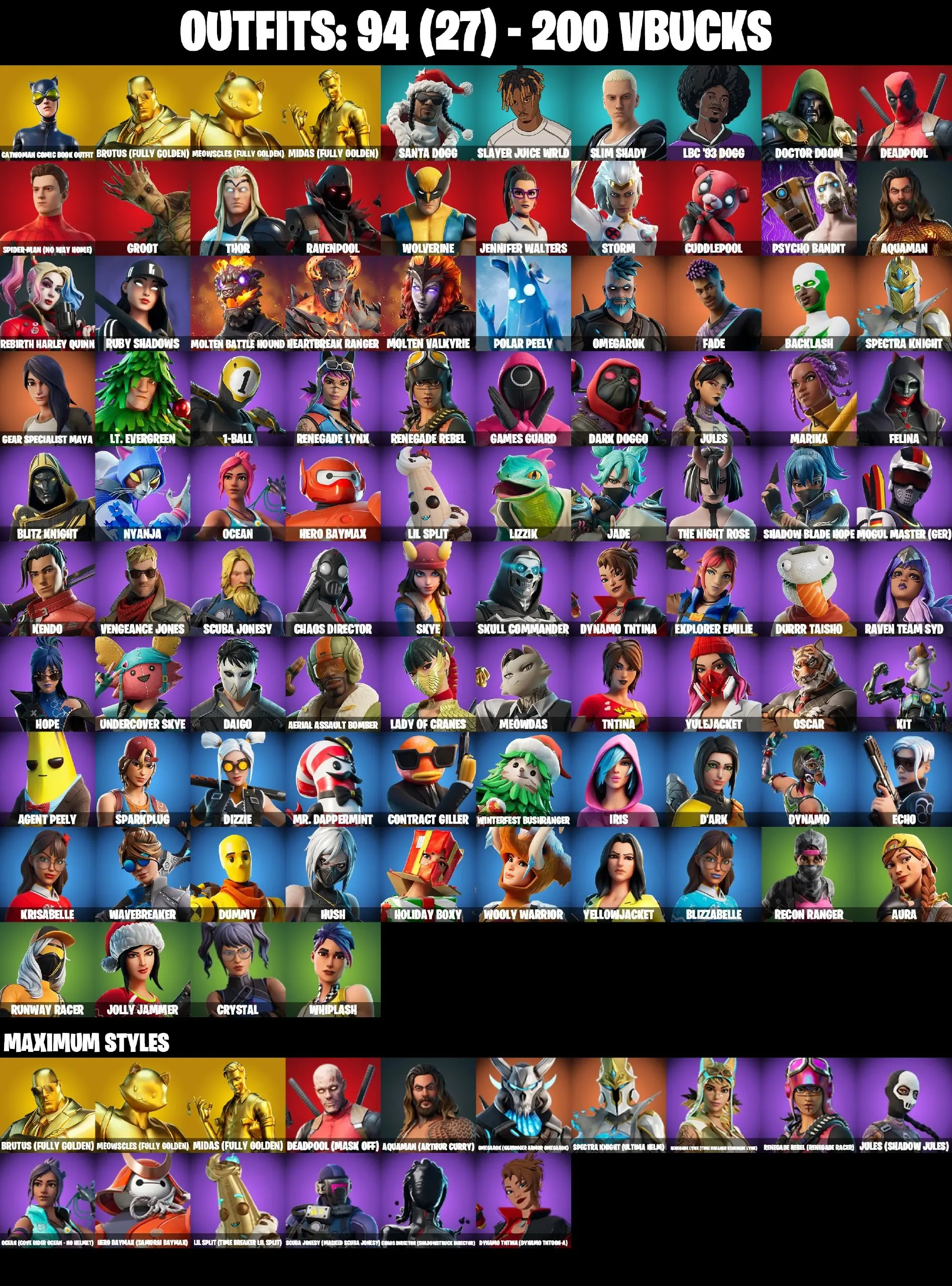 ❤️ 94 SKINS ❤️ PSYCHO BANDIT ❤️ CATWOMAN COMIC BOOK OUTFIT ❤️ BACKLASH ❤️ MOGUL MASTER CAN ❤️ RAVENPOOL ❤️ CUDDLEPOOL ❤️ GET GRIDDY ❤️ SPIDER-MAN NO WAY HOME ❤️ WHIPLASH ❤️ GOLDEN MIDAS ❤️ STAR WAND ❤️ MAYA ❤️ AURA ❤️