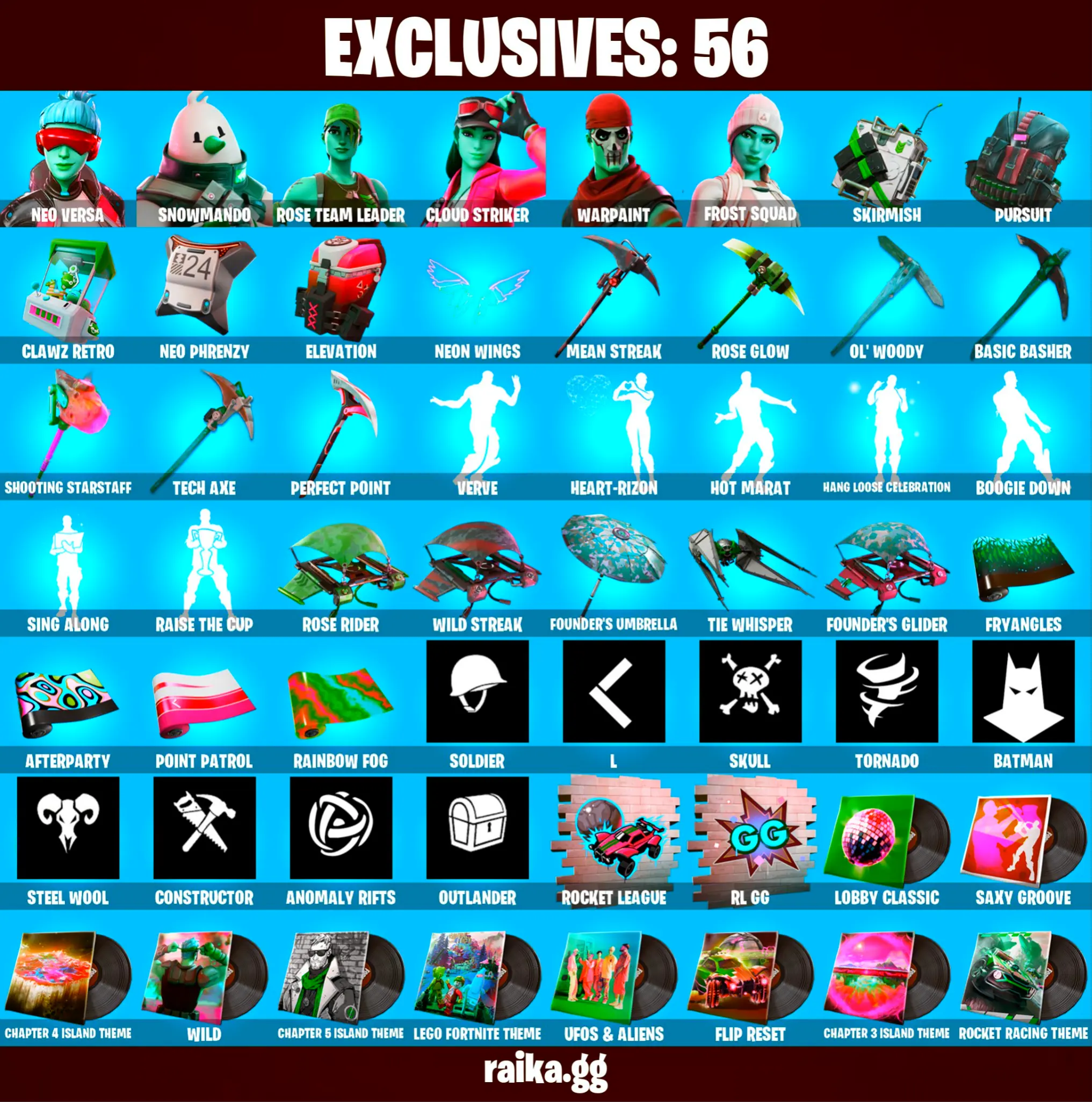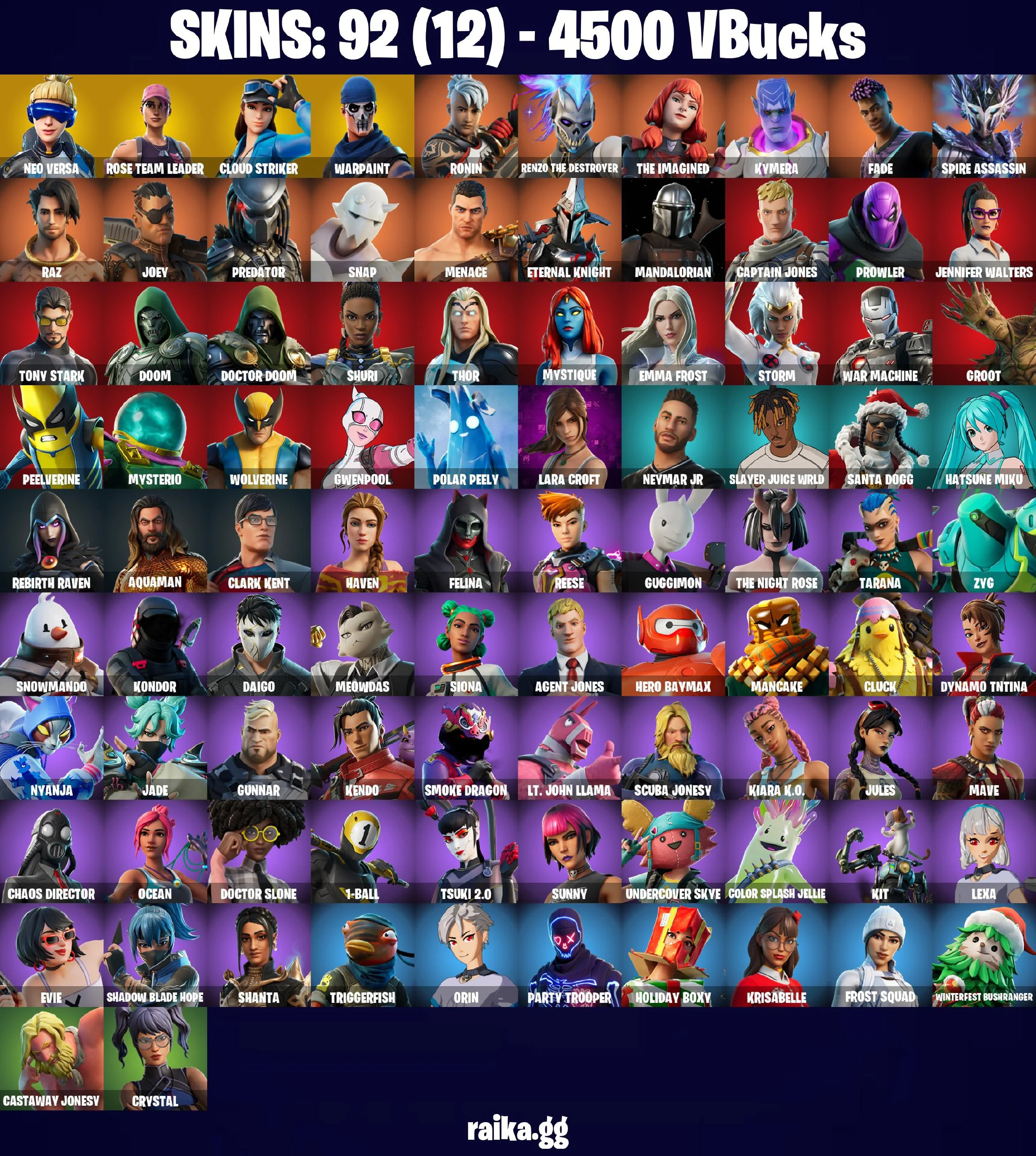 🔴♦️ BEST OFFER ♦️🔴 92 skins 💎 OG STW 💎 Neo Versa 💎 Cloud Striker 💎 Ronin 💎 Renzo the Destroyer 💎 The Imagined 💎 Kymera 💎 Fade 💎 Spire Assassin 💎 Raz 💎 Joey 💎 Predator 💎 Snap 💎 Menace 💎 Eternal Knight 💎 PC\PSN\XBOX\SWITCH 💎