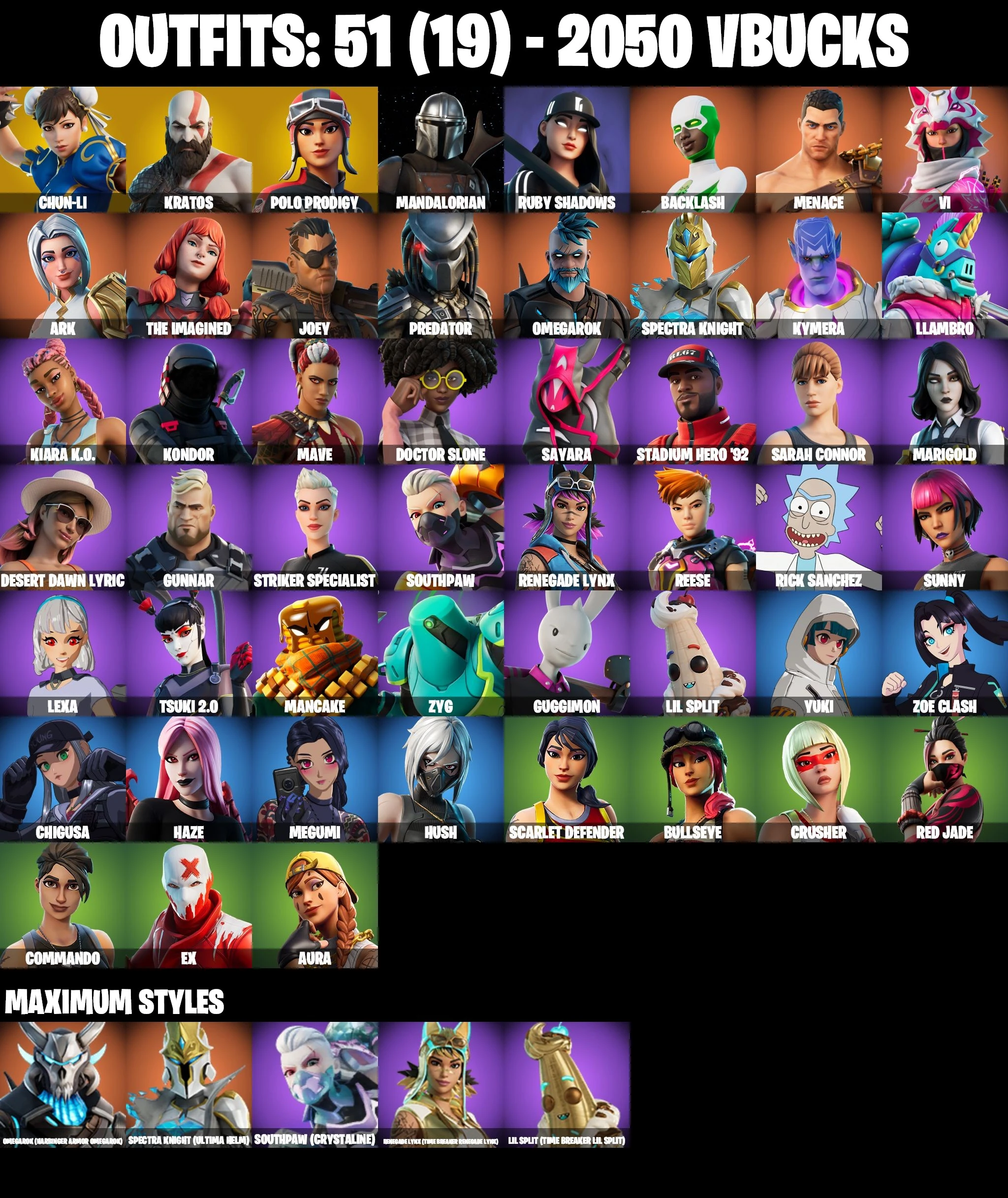 EMAIL CHANGEABLE ✅ [ALL PLATFORMS] ⚡ 51 SKINS 💎 POLO PRODIGY 💜 LEVIATHAN AXE 💜 CHUN LI 💜 KRATOS 💜 LAUGH IT UP 💜 STAR WAND 💜 BACKLASH 💜 AURA 💜 2050 VB