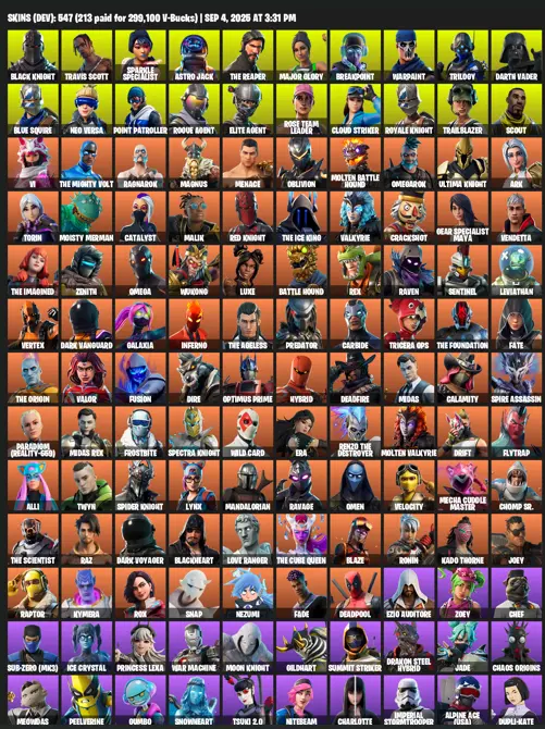 🎮 Fortnite 【547 Skins + 459 Pickaxes + 290 Gliders】✨ Black Knight • Travis Scott • Sparkle Specialist • Astro Jack • The Reaper • OG & Rare Exclusives 🔥 Full Access | Instant Delivery ⚡