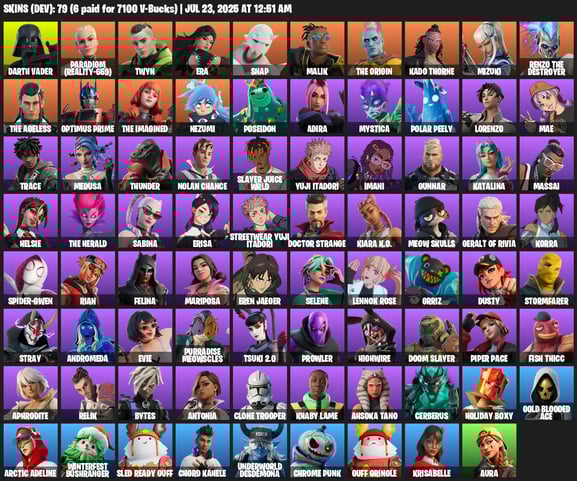 > 113 Skins < Blue Team Leader | Gold Brutus | Gold Midas | Deadpool | Prodigy | Sultura | Point Patroller | Orange Justice | 900 VB