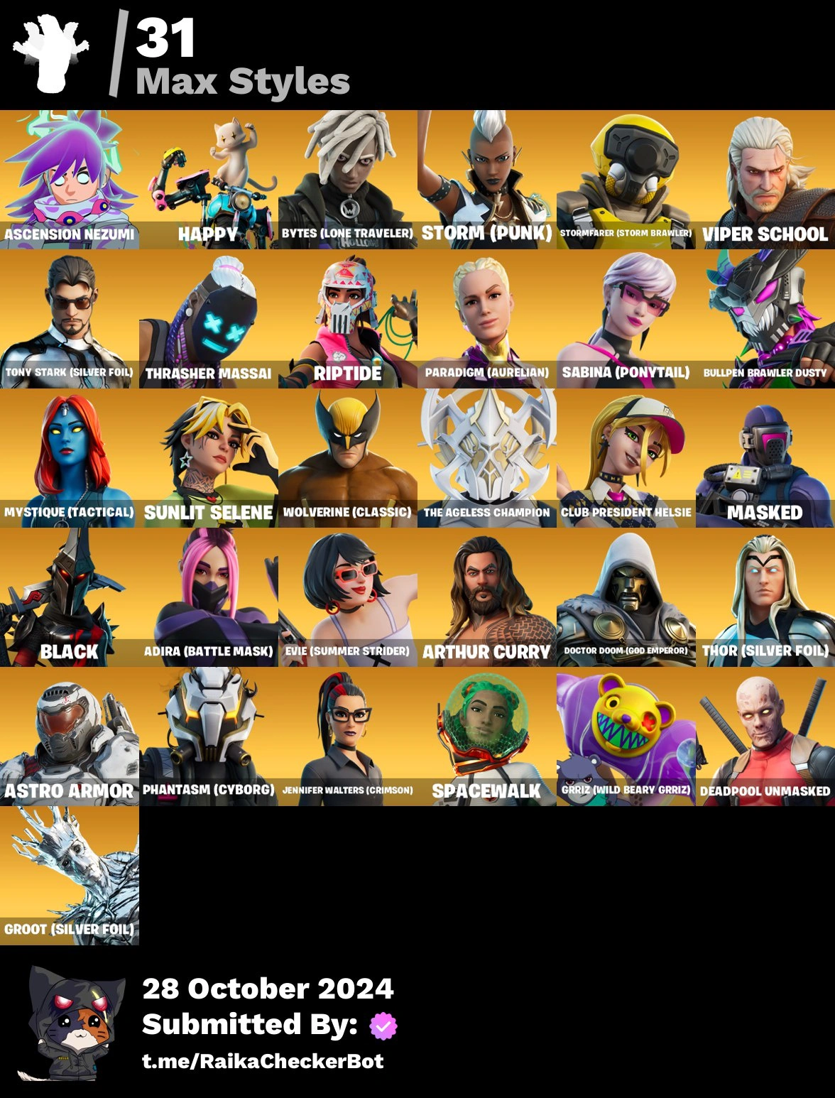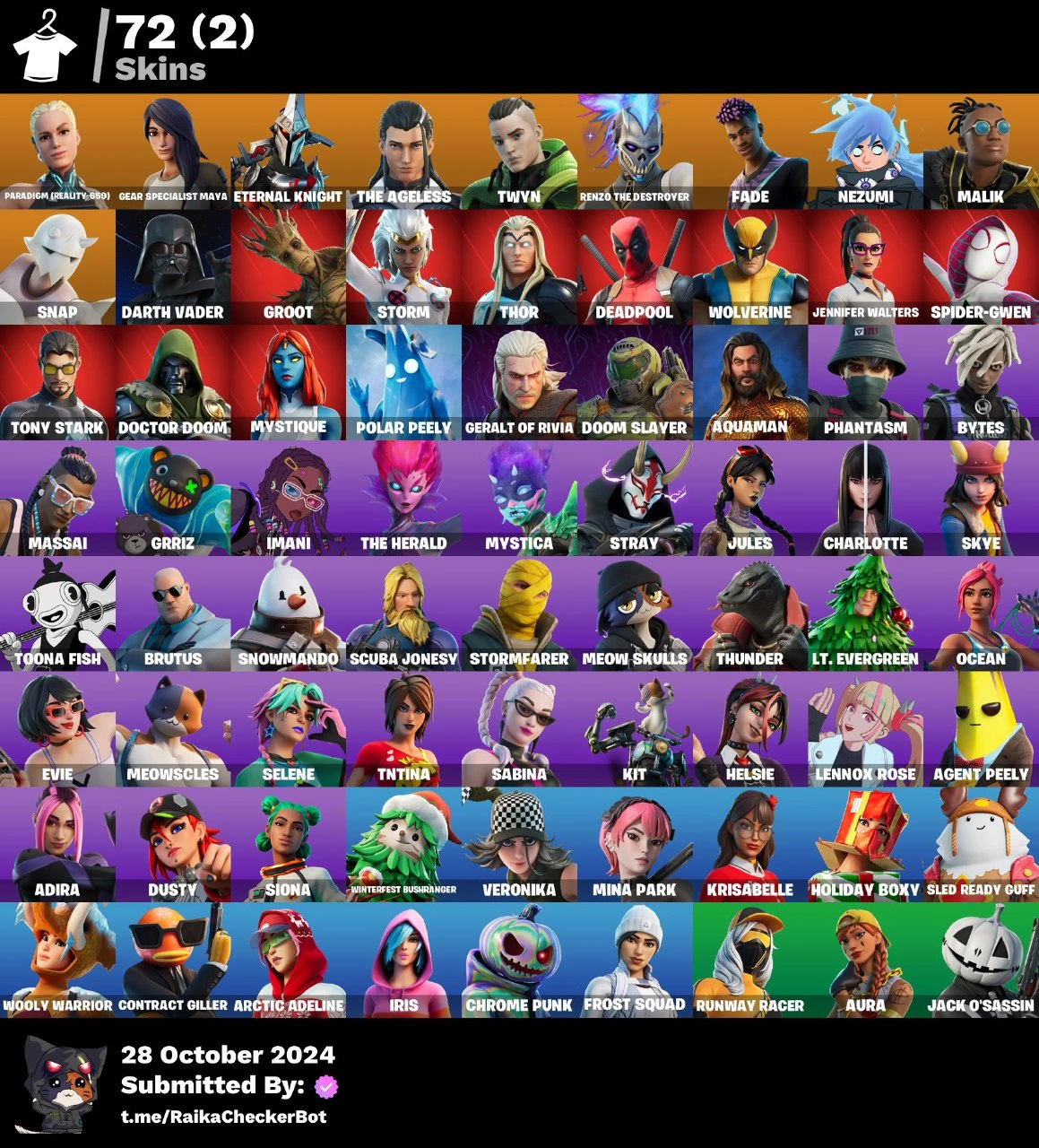 > 72 Skins < Paradigm (Reality-659) | Gear Specialist Maya | Eternal Knight | The Ageless | Twyn | Renzo the Destroyer | Fade | Nezumi | Malik