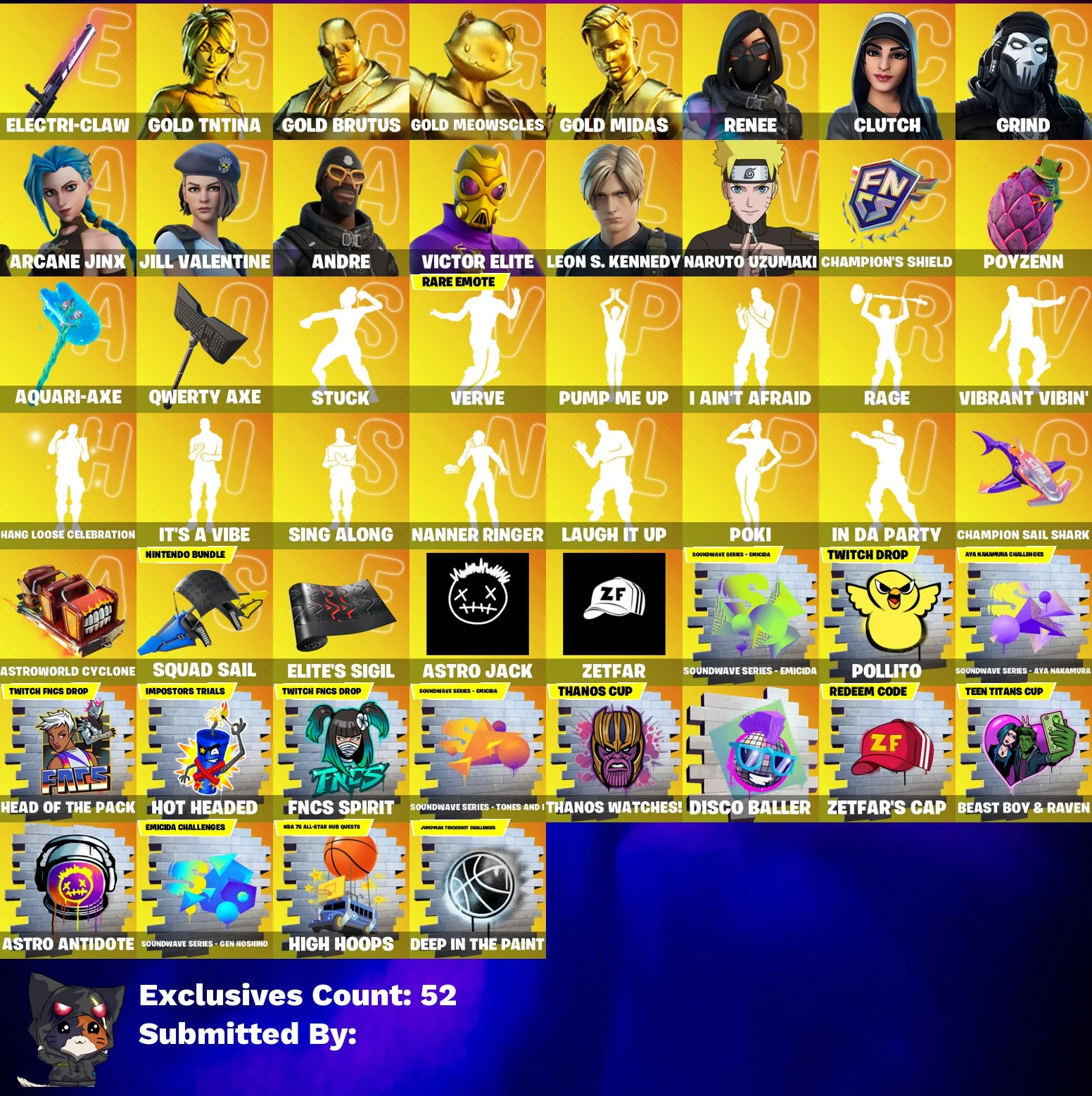 💥🌟 LEGENDARY ACCOUNT 🌟💥 482 SKINS 💎 Arcane Jinx 💎 Jill Valentine 💎 Renegade Raider 💎 Gold TNTina 💎 Gold Brutus 💎 Gold Meowscles 💎 Gold Midas 💎 Renee 💎 Clutch 💎 Grind 💎 Andre 💎 Victor Elite 💎 FULL ACCESS 💎