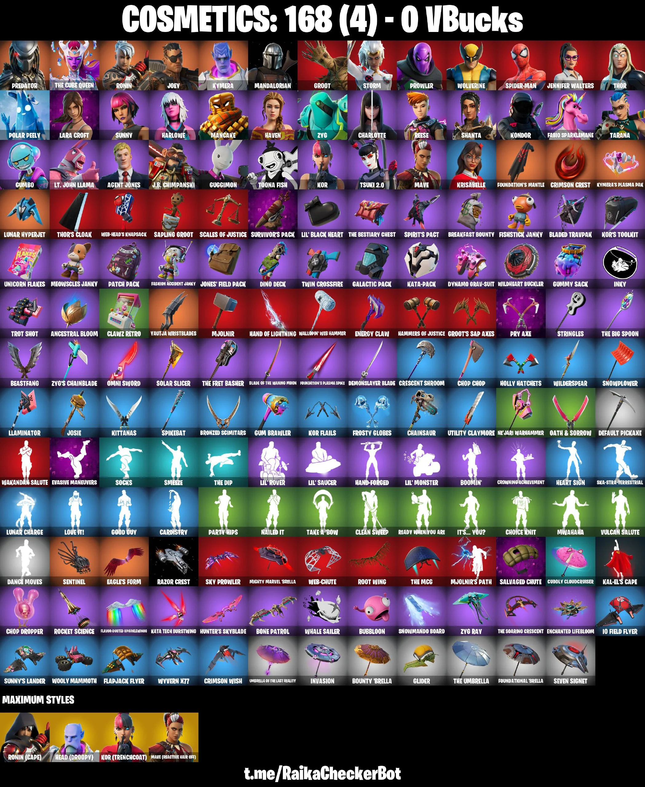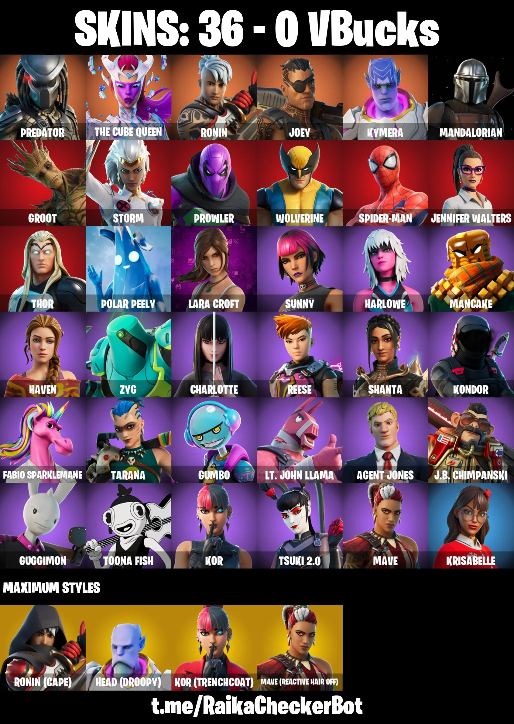 [PC] 🔥 36 ⭐️ skins 🔷 Predator ⭐️ The Cube Queen ⭐️ Ronin ⭐️ Joey ⭐️ Kymera ⭐️ Mandalorian ⭐️ Groot ⭐️ Storm ⭐️ Prowler ⭐️ Wolverine ⭐️ Spider-Man ⭐️ Predator ⭐️ The Cube Queen ⭐️ Ronin ⭐️ Joey ⭐️ Kymera ⭐️ Mandalorian ⭐️ Groot ⭐️ Storm