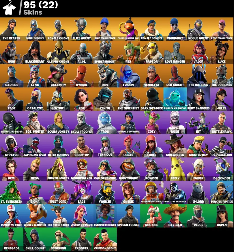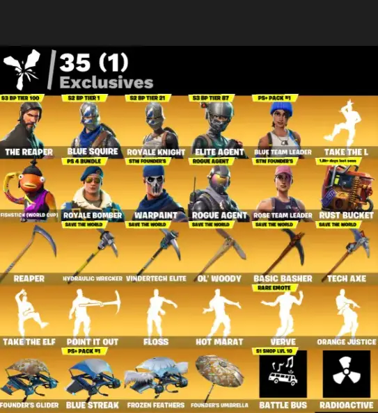 [ PC ] 95 skins | OG STW | The Reaper | Blue Squire | Royale Knight | Elite Agent | Blue Team Leader | Take The L | Fishstick (World Cup) | Royale Bomber | 525 VB
