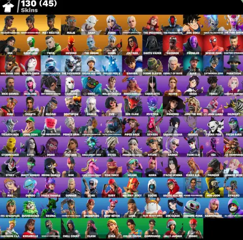 (PC PSN XBOX) 130 SKINS / ITACHI UCHIHA / FA / SAKURA HARUNO / SASUKE UCHIHA / FASHION BANSHEE / BACKLASH / JOLTARA / SURF WITCH / SPIDER-GWEN / SON GOKU / Mat Master | Heron Stance Hero